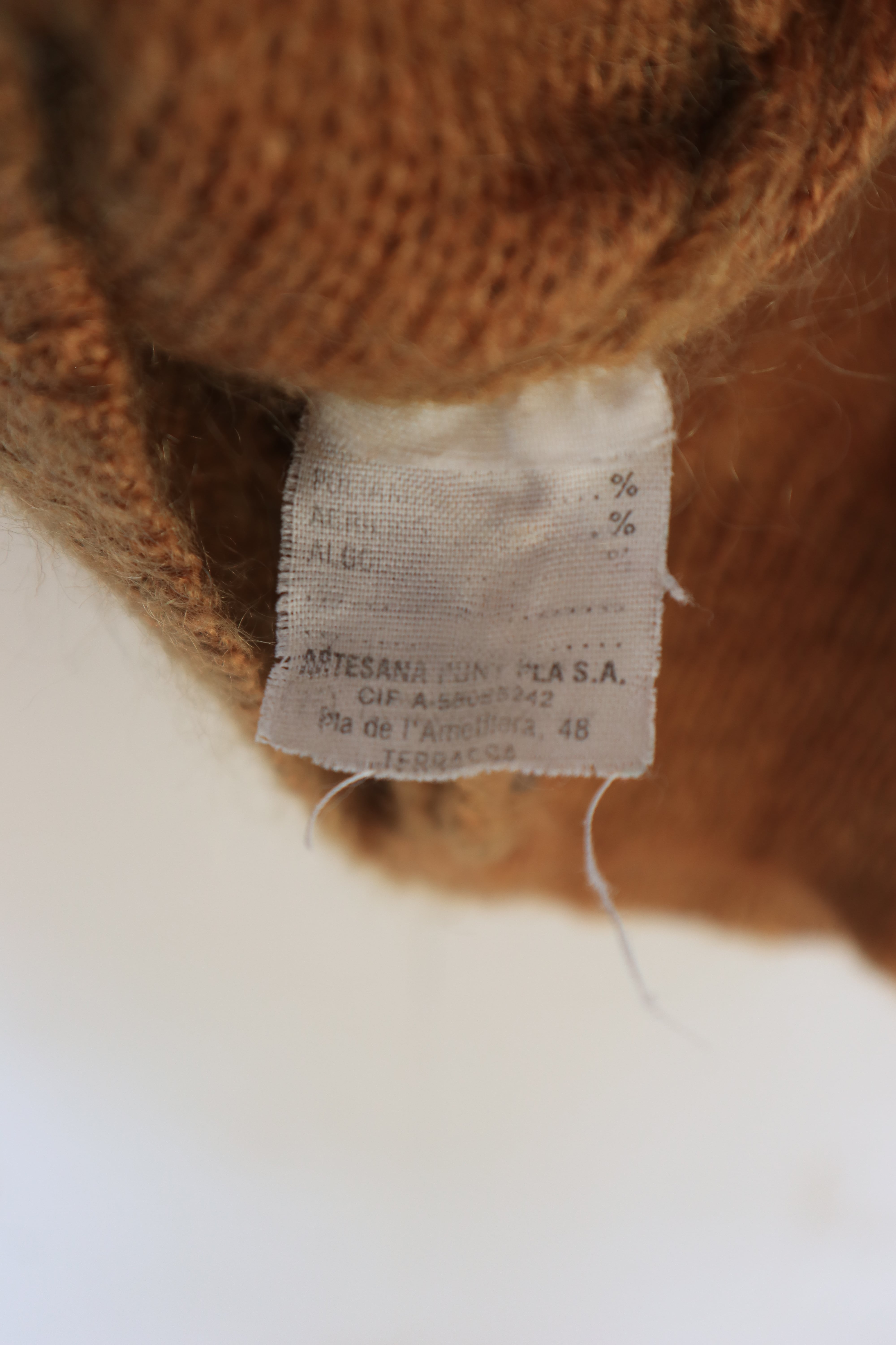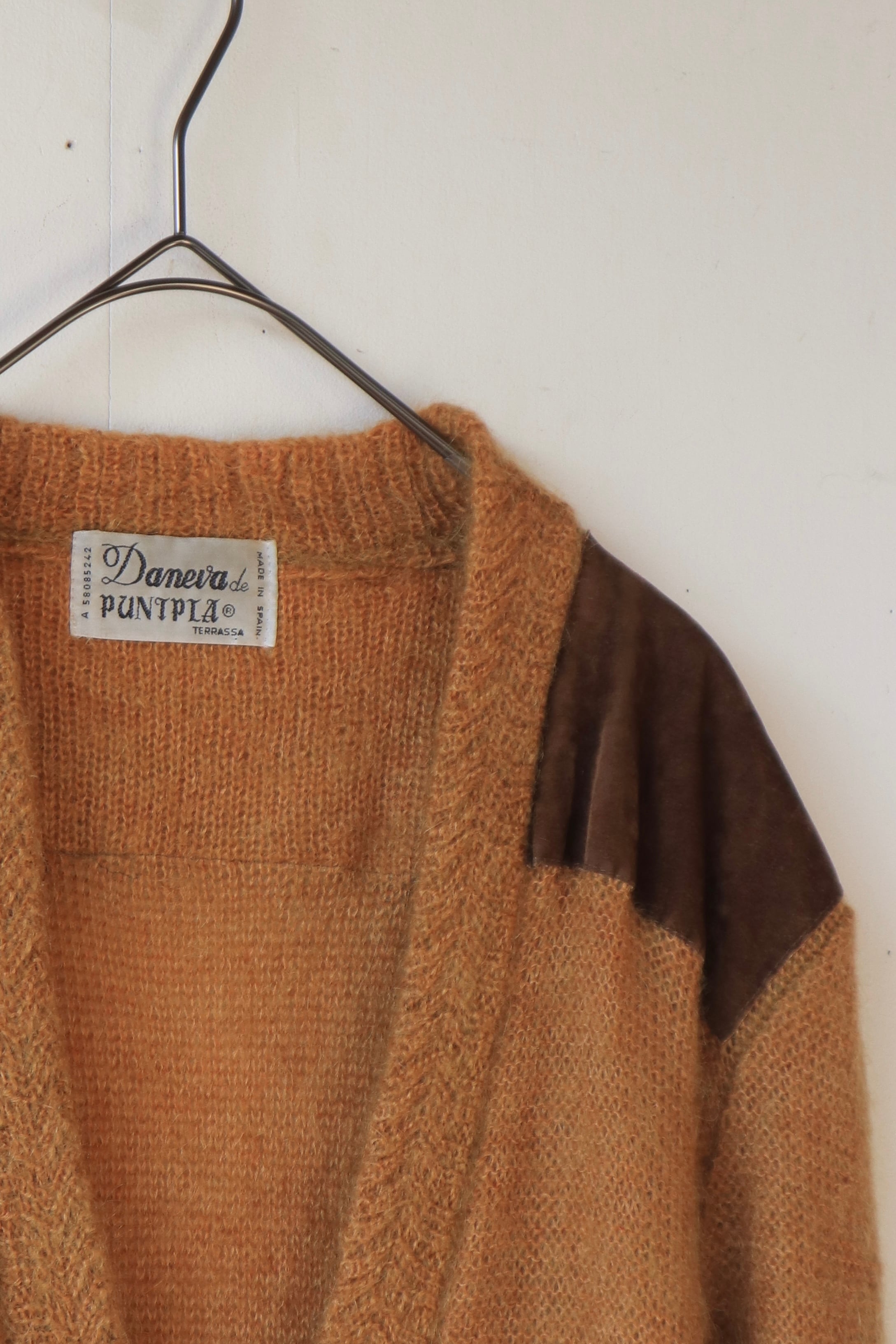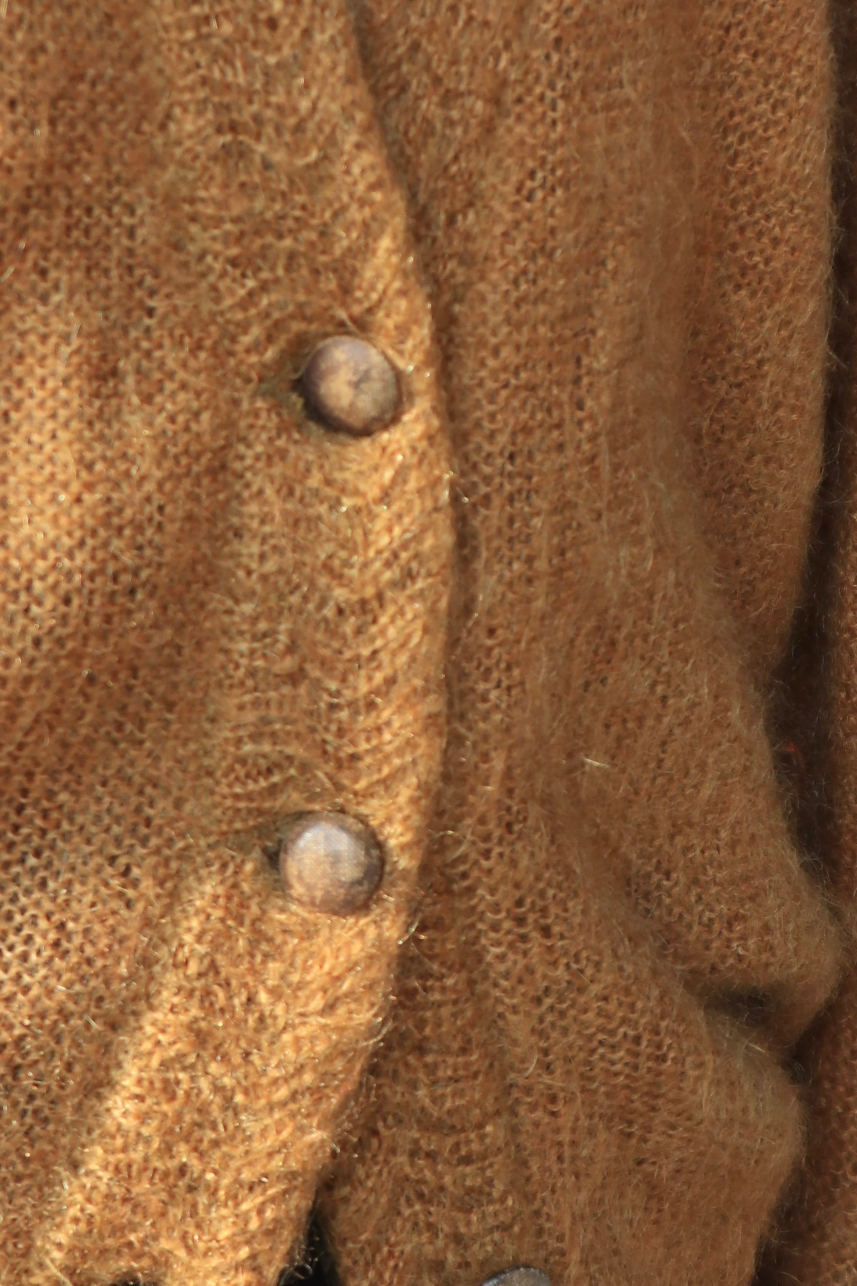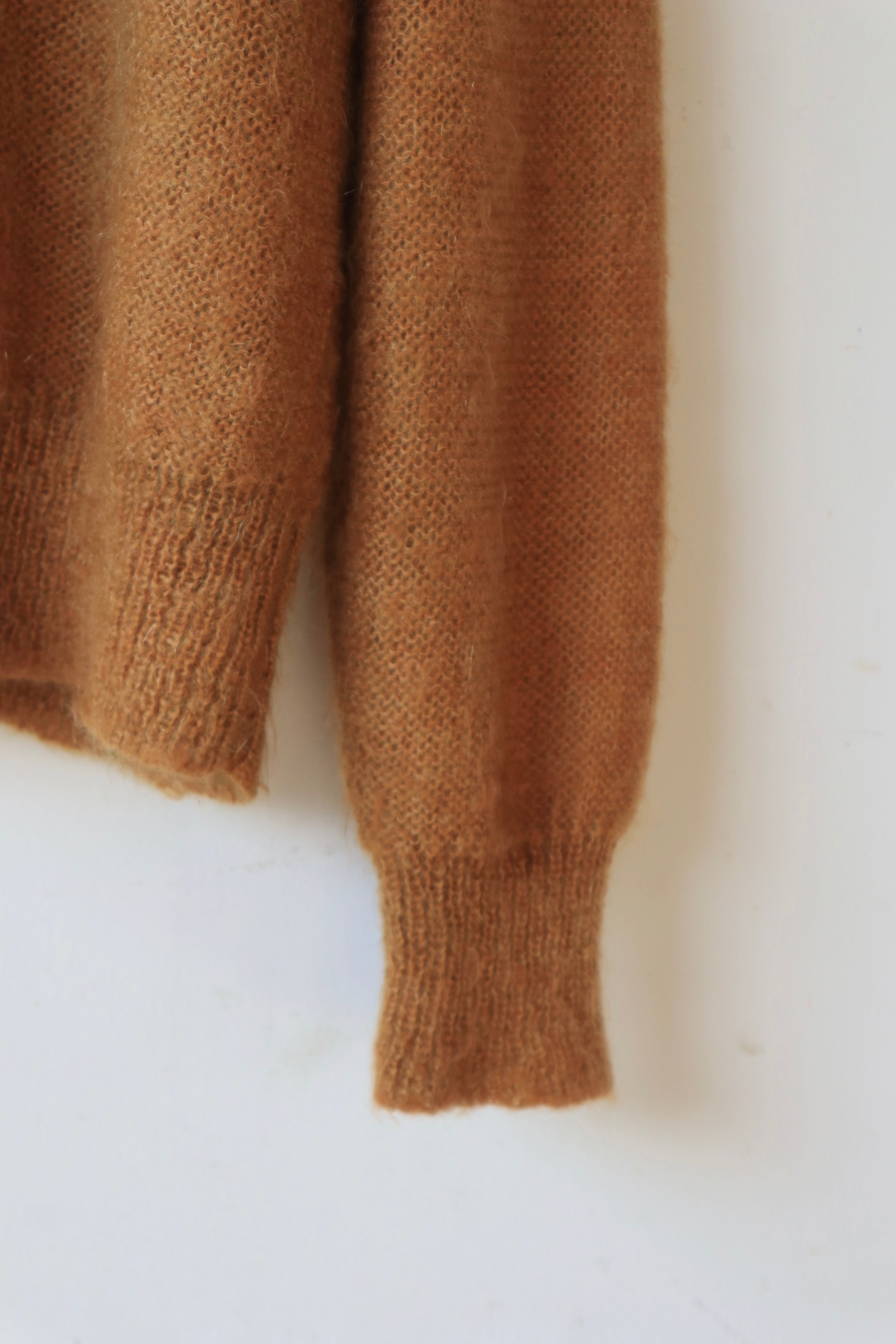 キャメルカラーのモヘア混ニットカーディガン