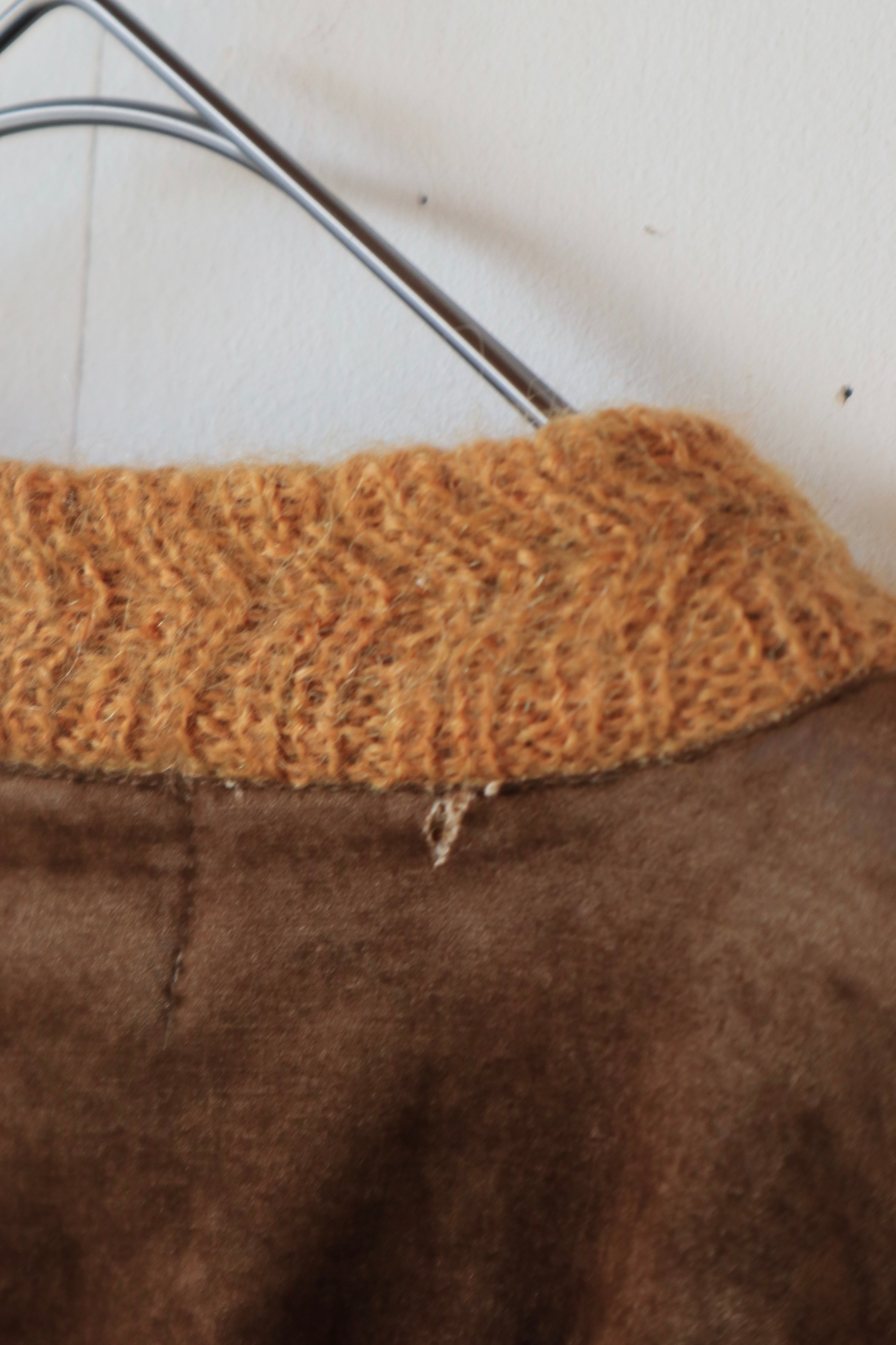 肩部分はブラウンのベロア調生地に切り替えられたデザインで、素材のコントラストが上品なアクセントに