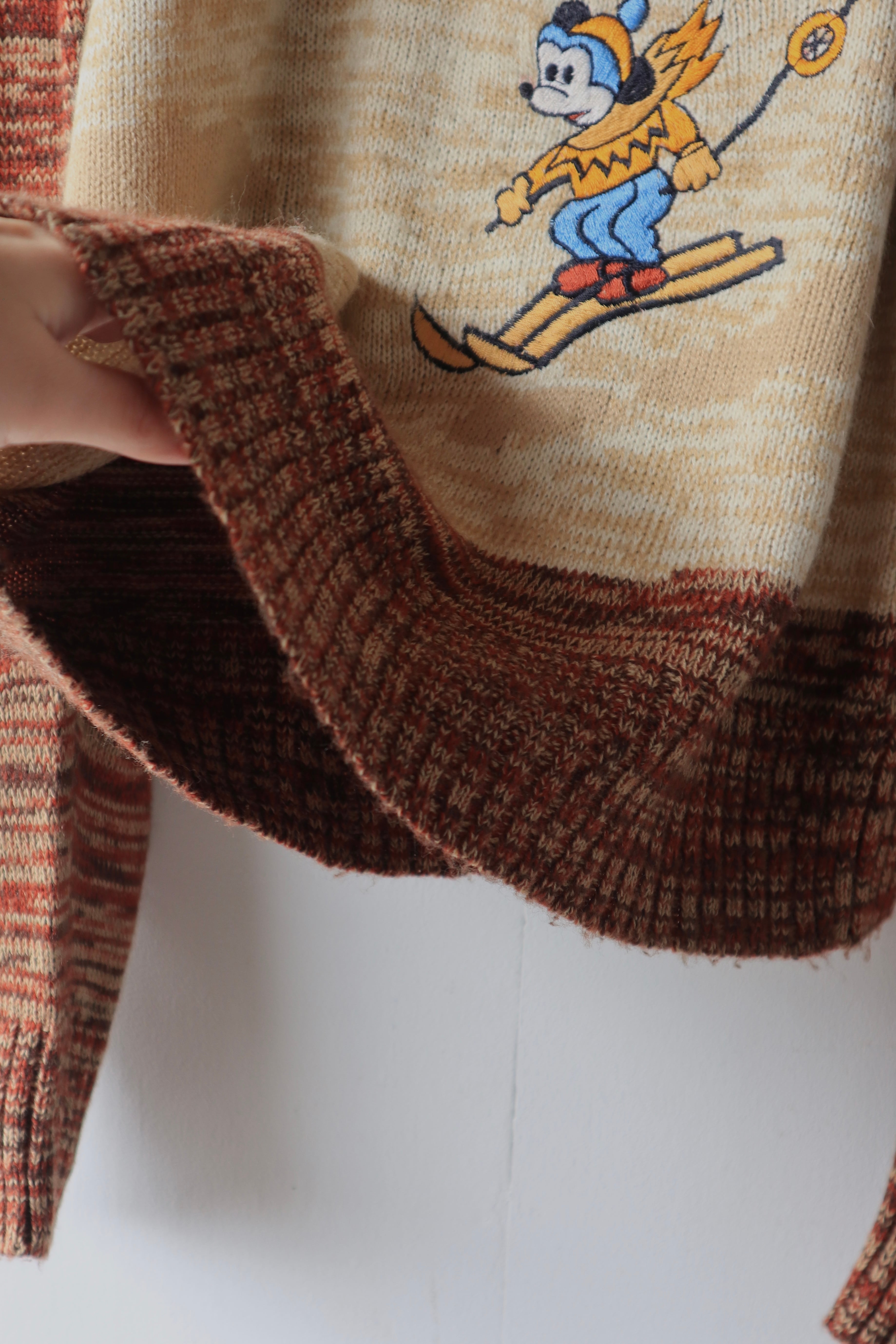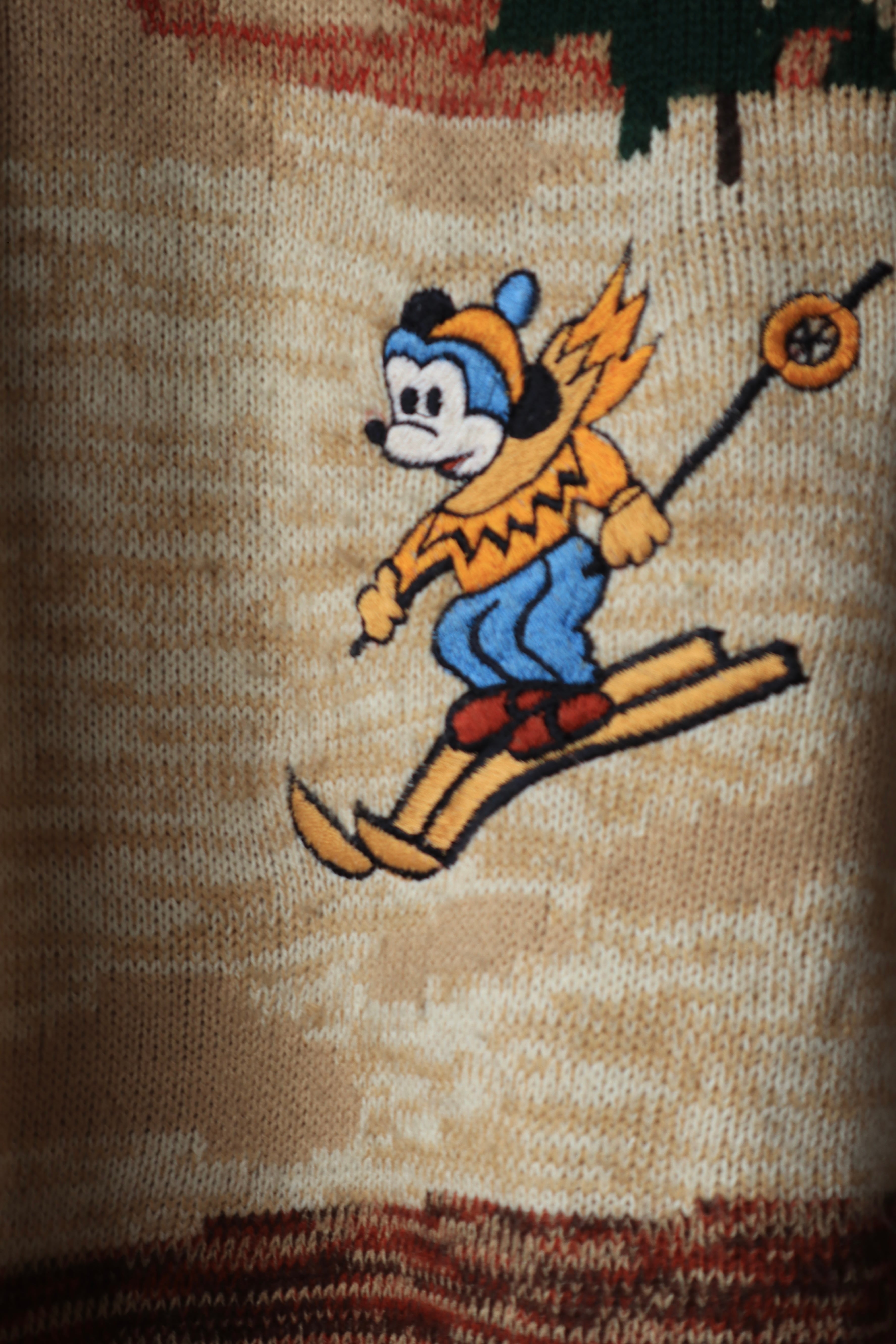 スキーをしているミッキーモチーフの刺繍が可愛らしくポイントになります