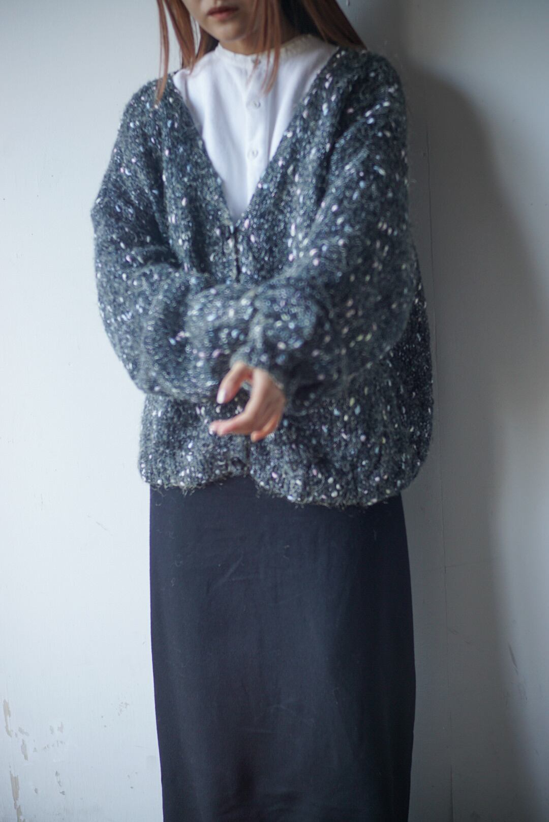ラメ糸やカラフルなネップの混ざるニットカーディガン