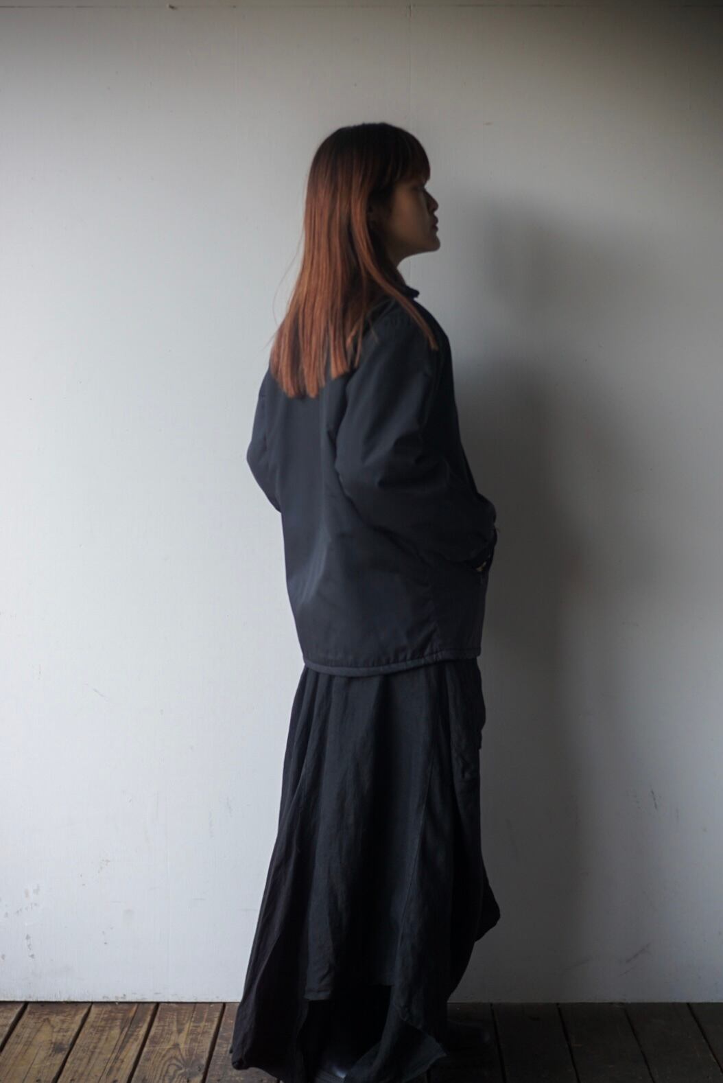 裾は紐で絞ることが可能でシルエットもお好みで変えて着用頂けます