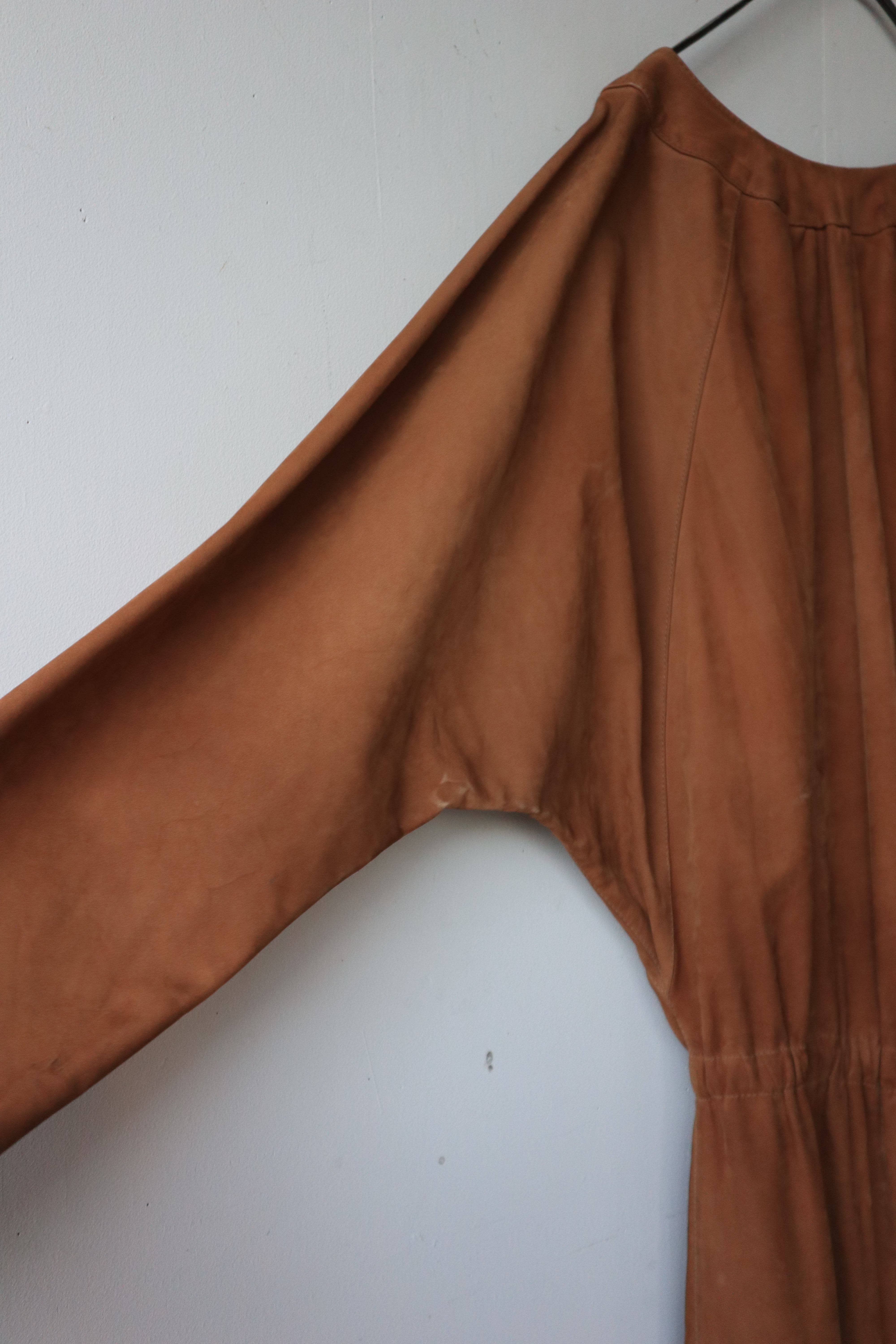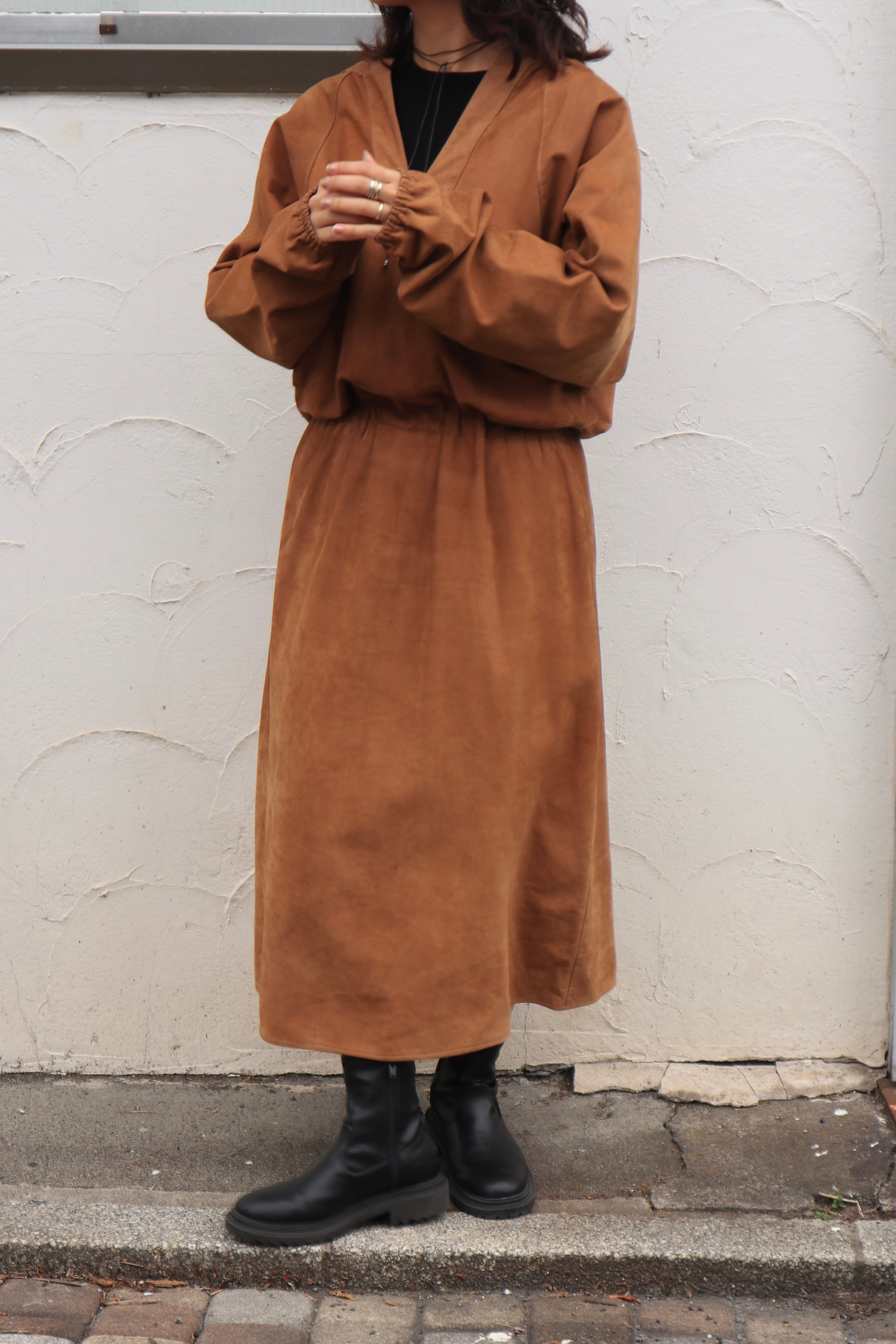深めのVネックとドルマンスリーブが生み出す抜け感のあるシルエットで、ウエストゴムがほどよくメリハリを添えています