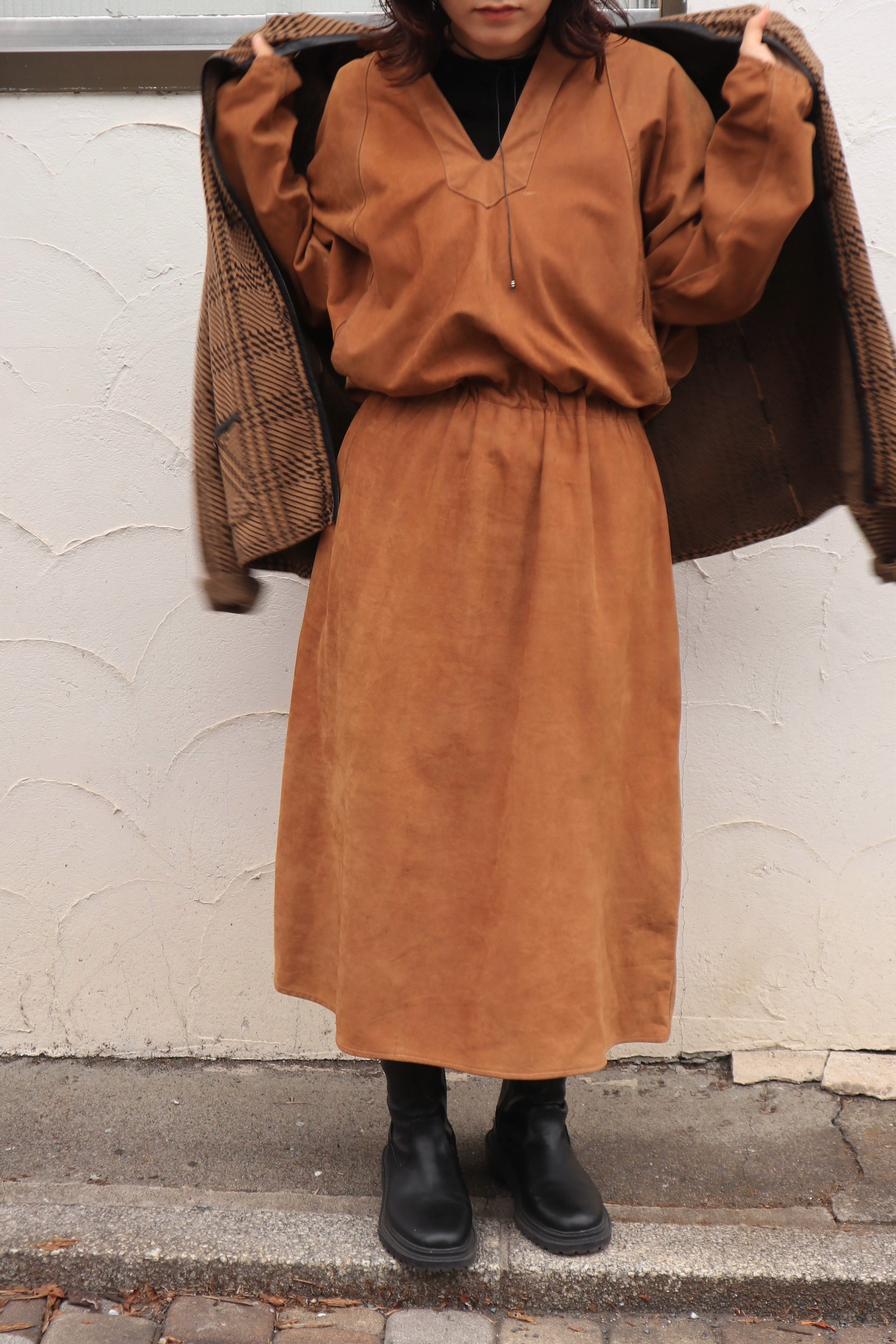 [vneck leather one-piece]