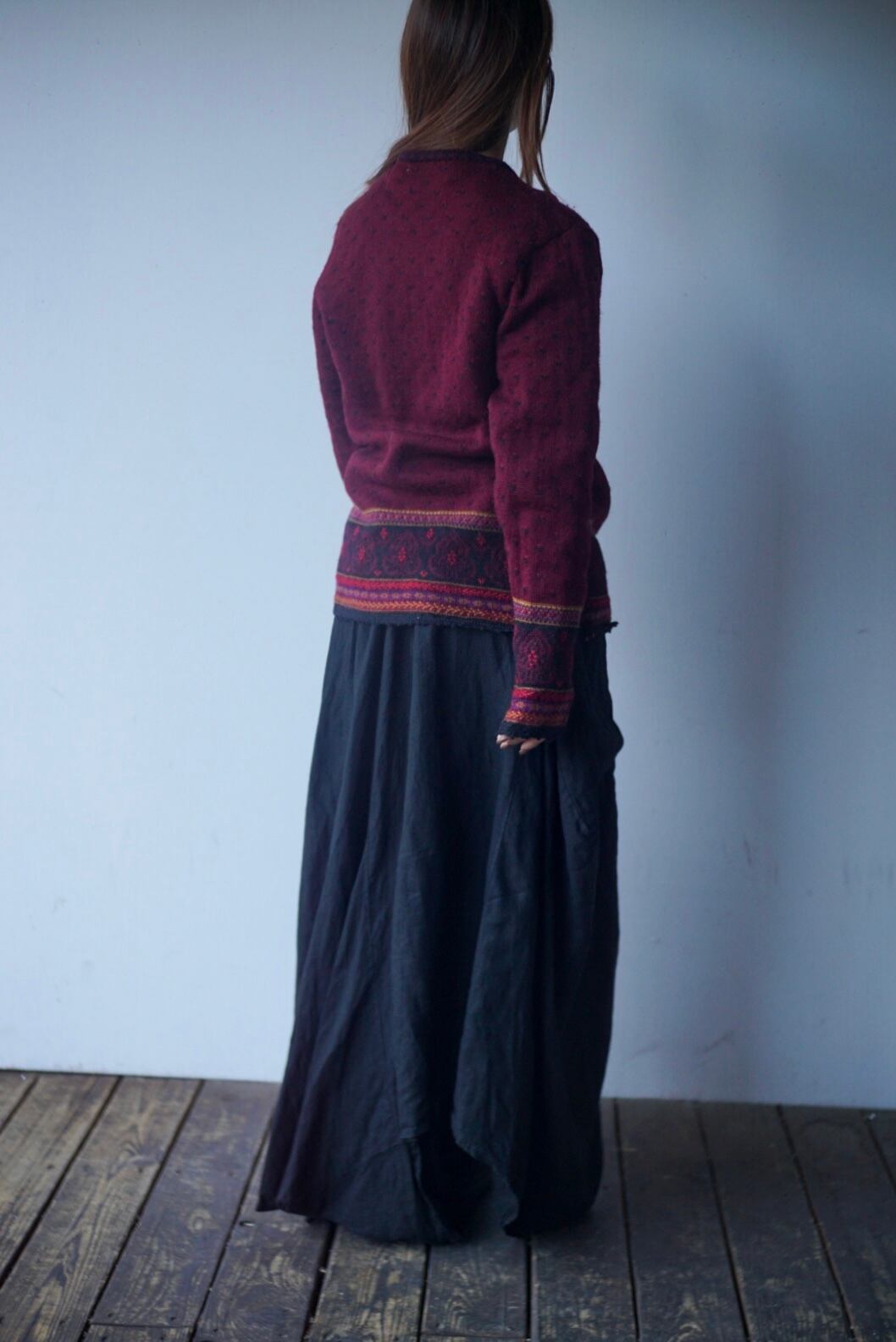 首元がざっくりあき身幅がゆったりサイズでインナーなども着込みやすいニットカーディガン
