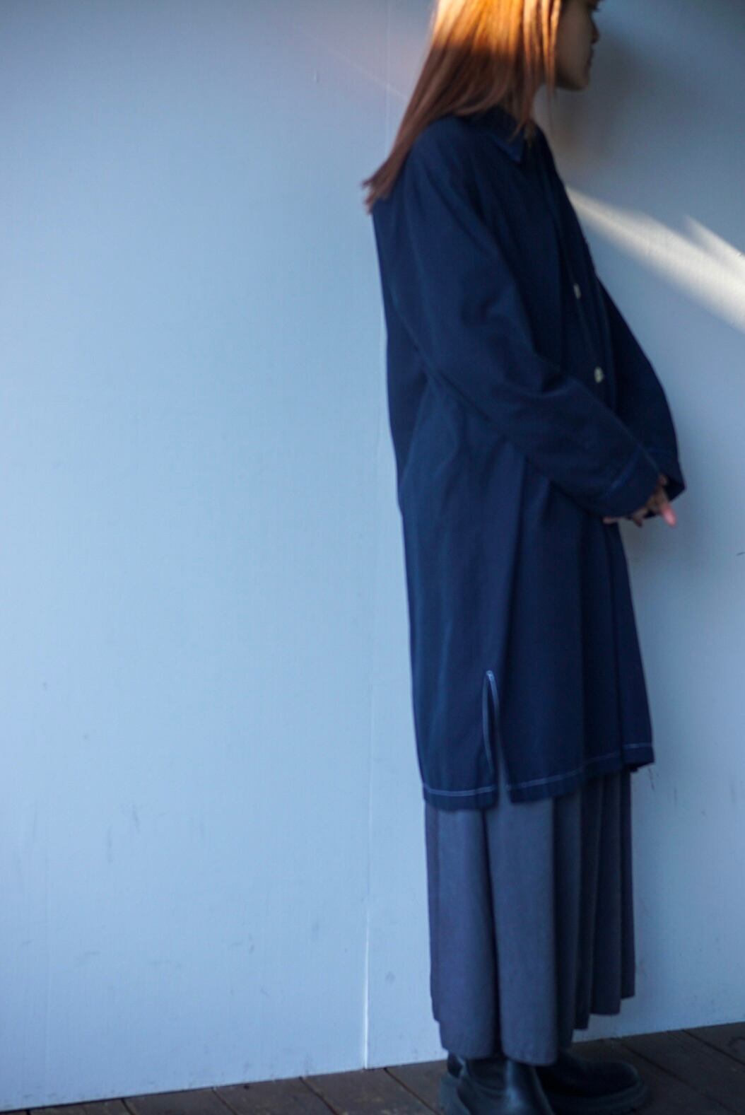 ネイビーカラーに後染めしており、ホワイトカラーのステッチがコントラストの効いたデザイン