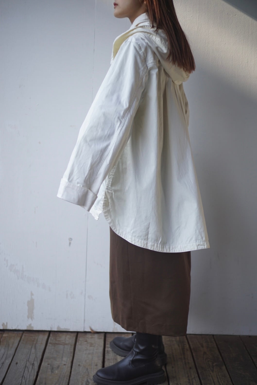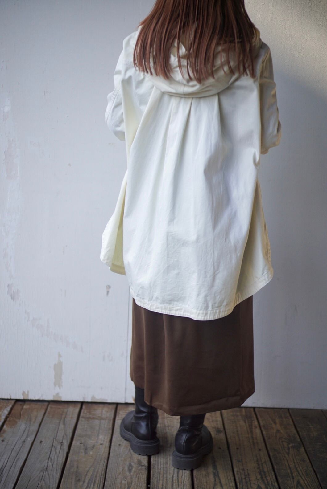 肌馴染みの良いクリーム色のようなカラーが色々なスタイルに合わせやすく、フードが取り外し可能となります
