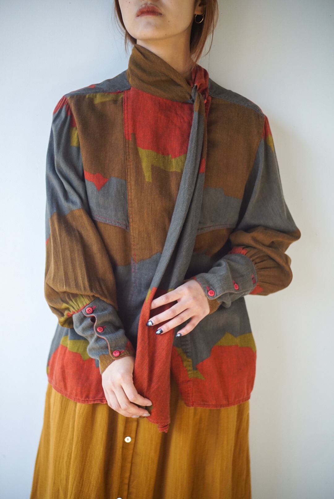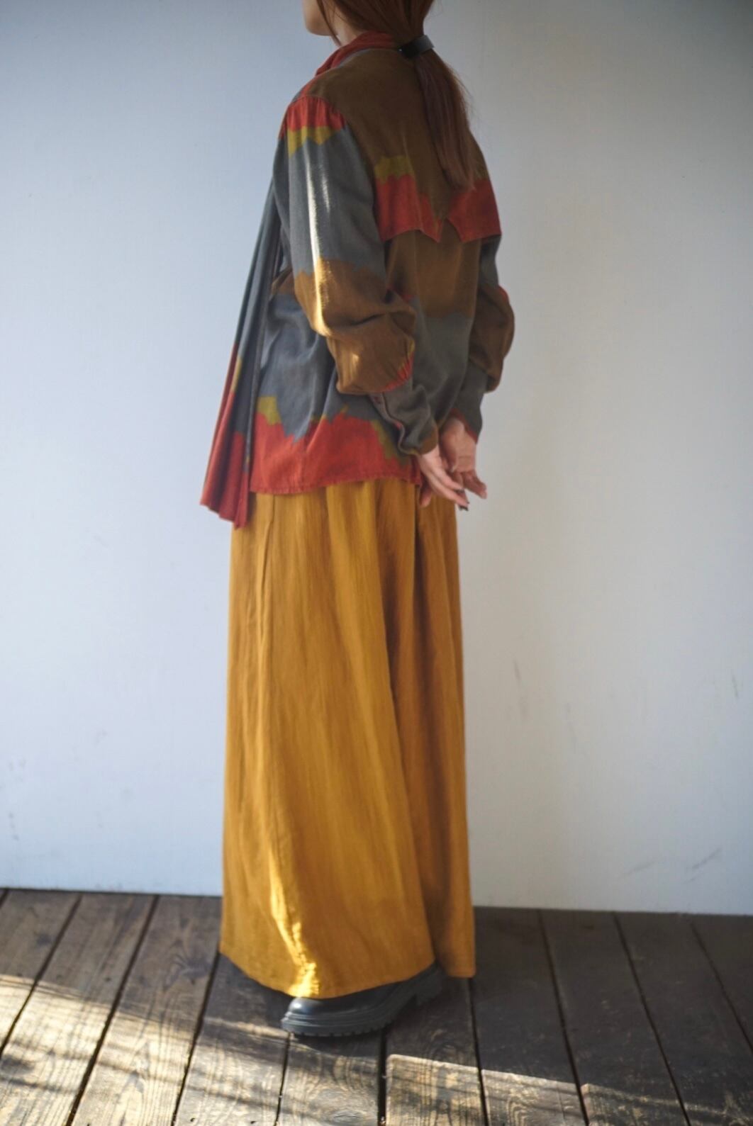 ヨークで切り替えられたデザインやくすみカラーに鮮やかな赤が映えポイントになり