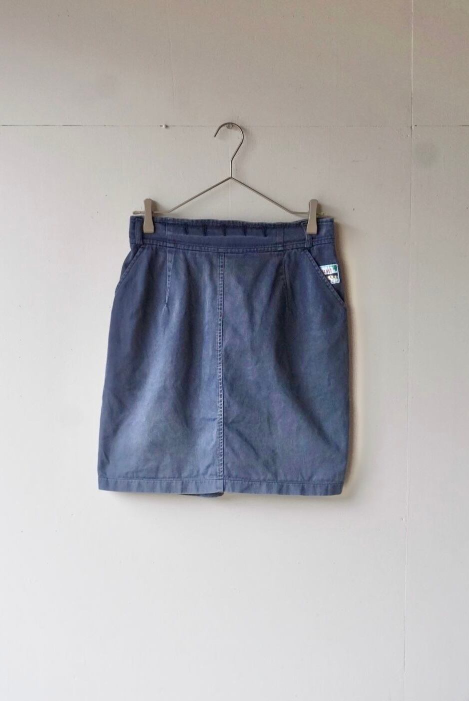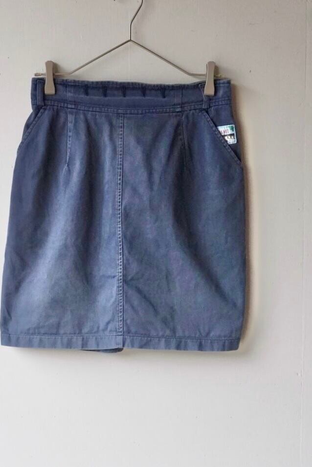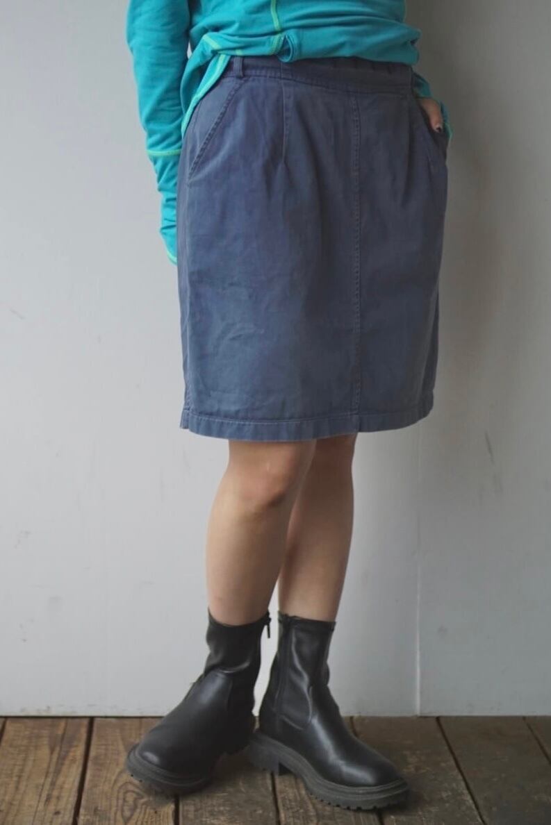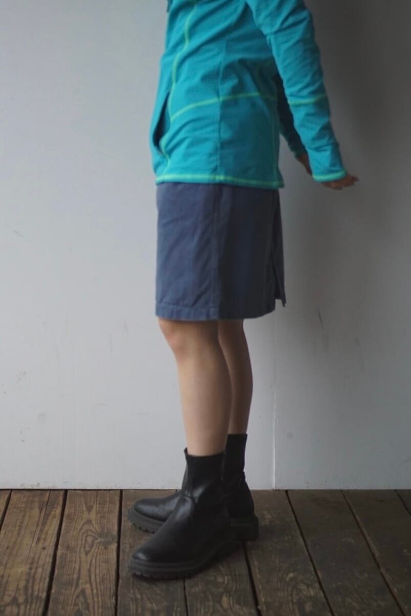 全体的にくたっとした生地で後ろにはスリットが入り履き心地も良く、かすんだブルーカラーやIラインシルエットが上品なスカート