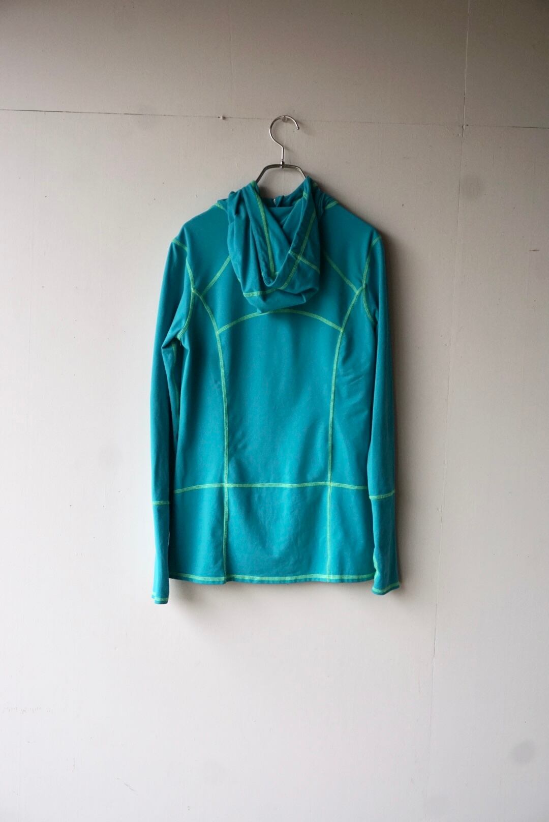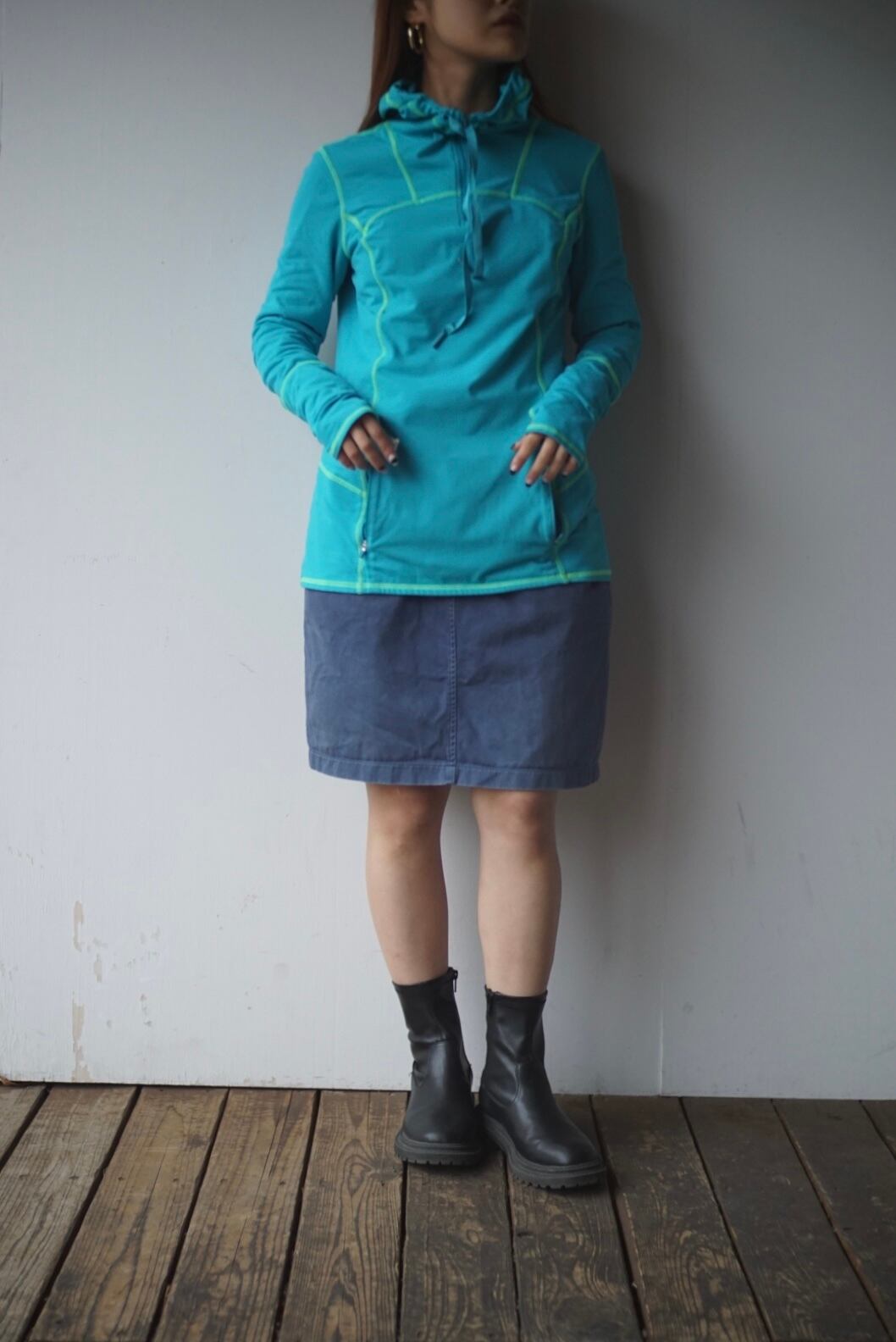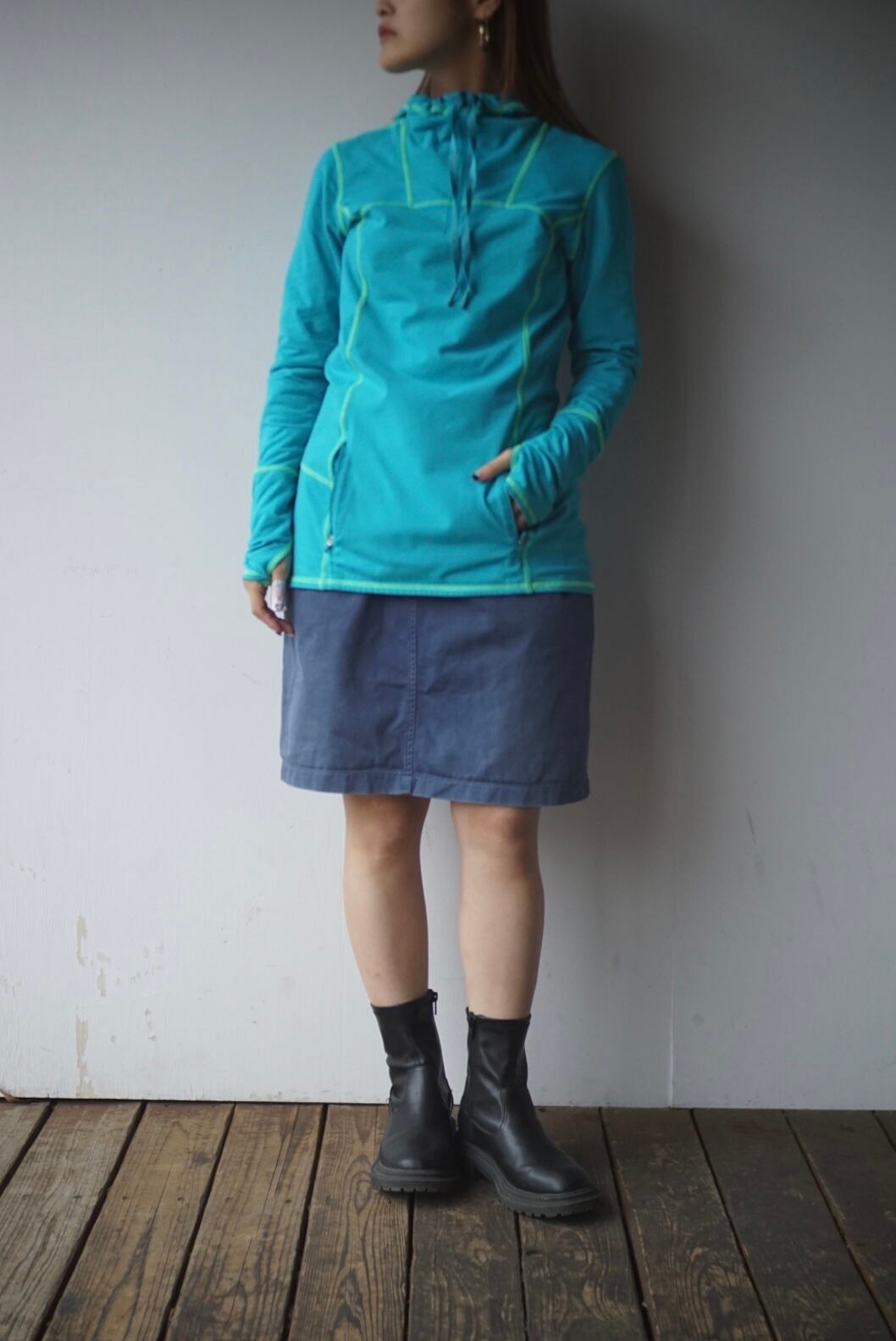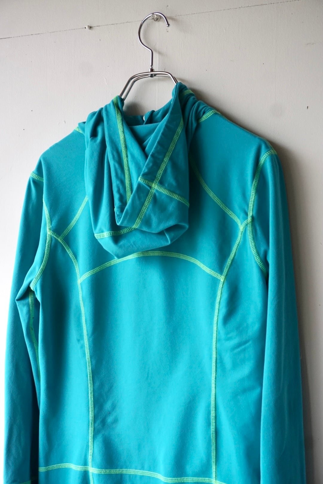 ターコイズブルーにグリーンカラーのステッチが映えるデザイン