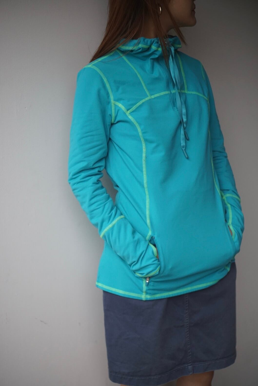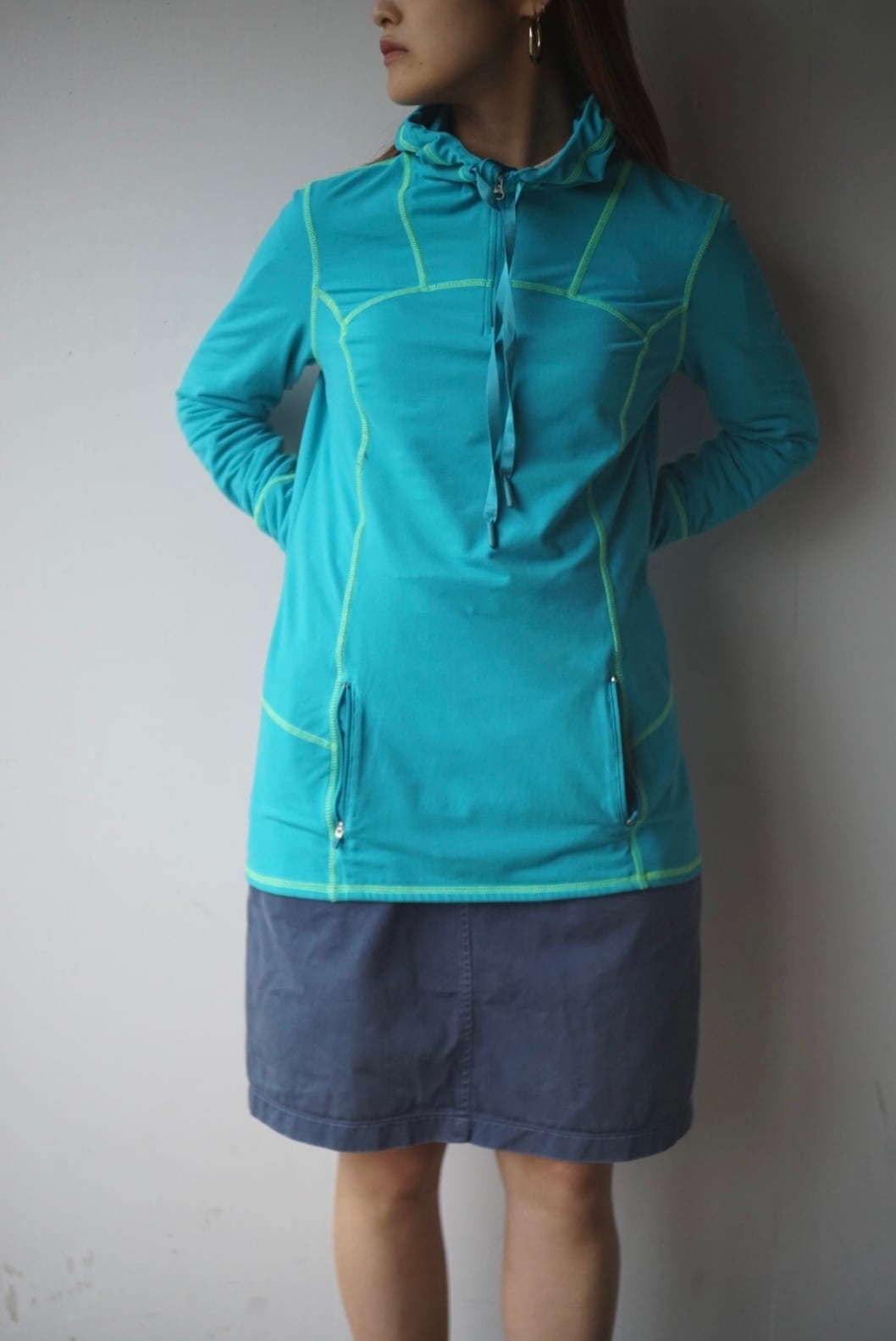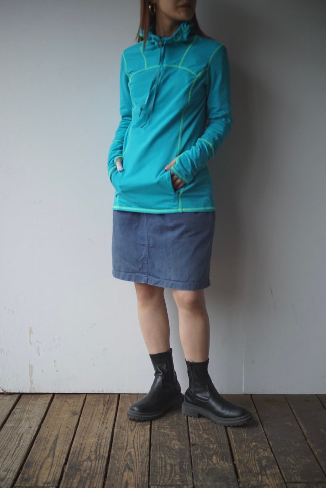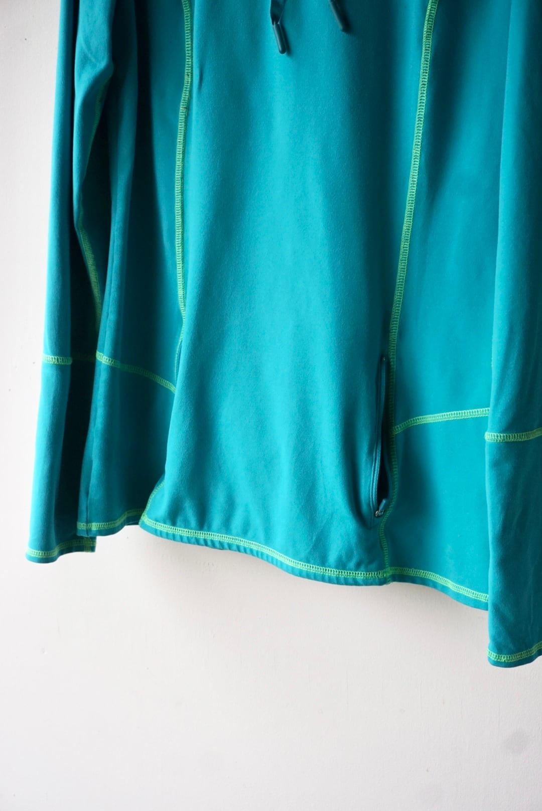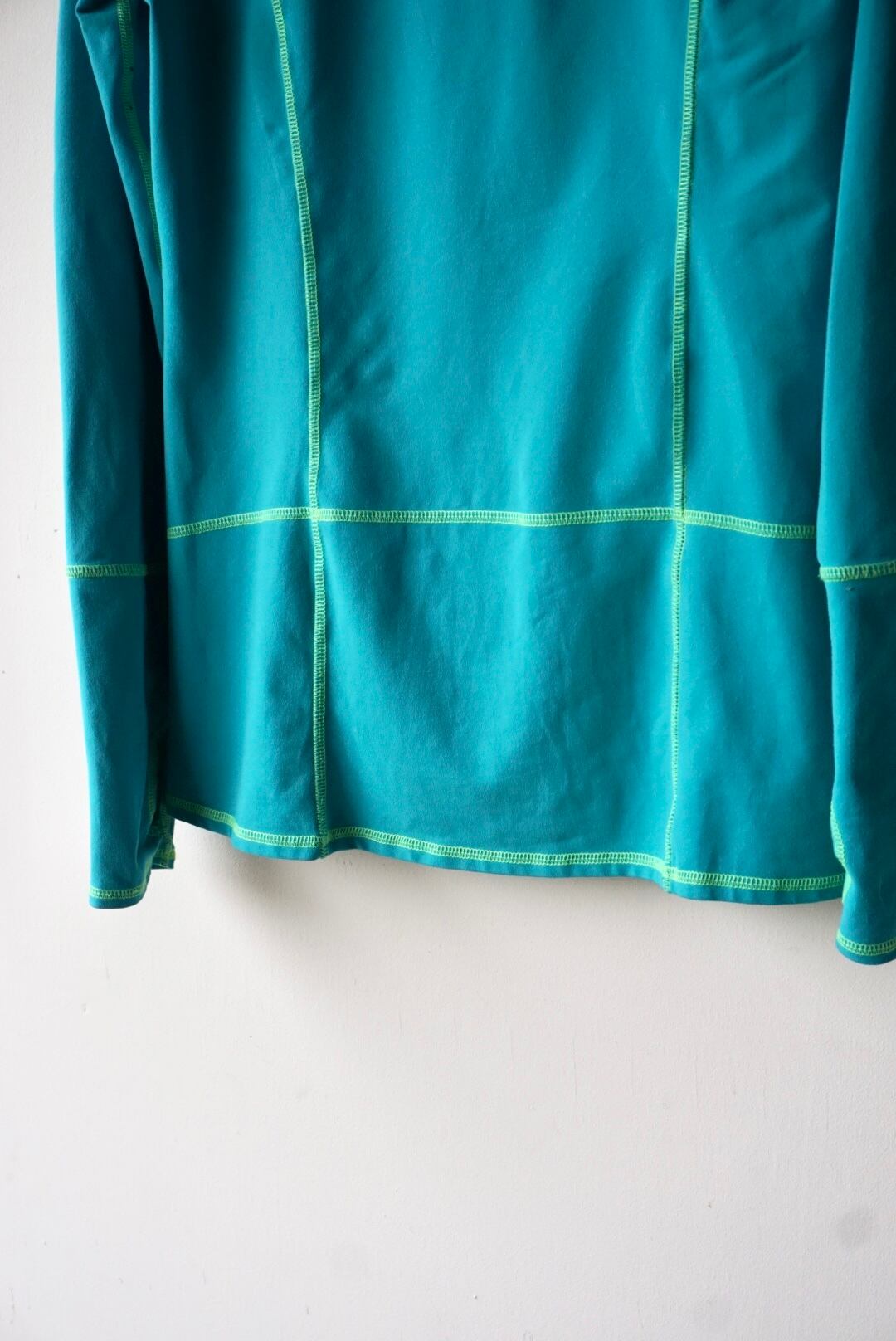 ターコイズブルーにグリーンカラーのステッチが映えるデザイン