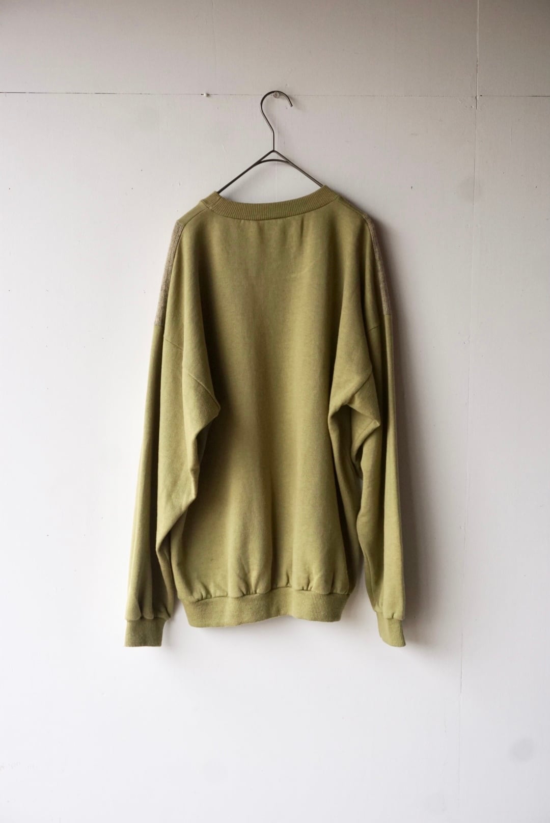 裏地が起毛し暖かく、肩の部分がニット素材の切り替えられたデザインや黄味がかったグリーンカラーが爽やかな一着