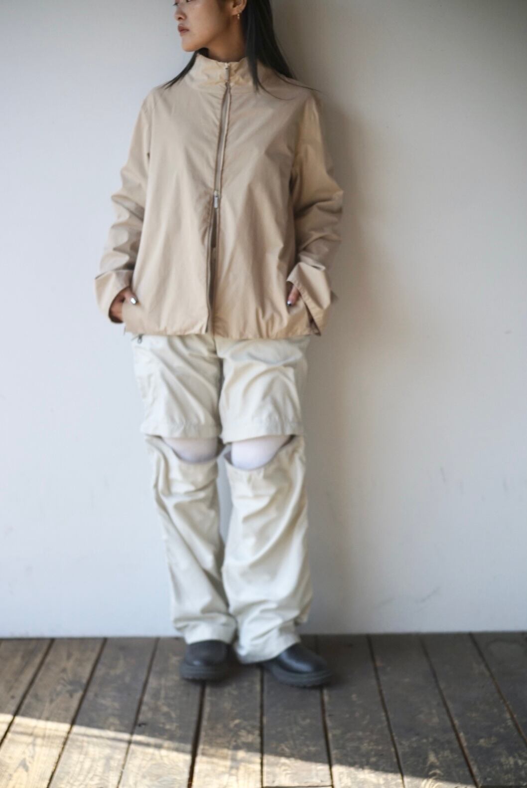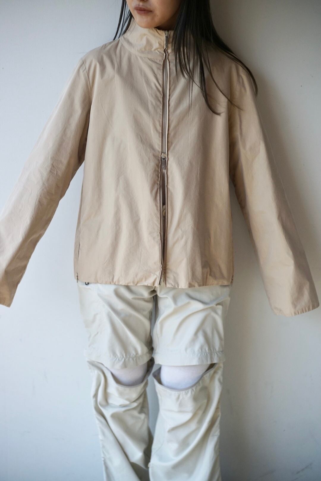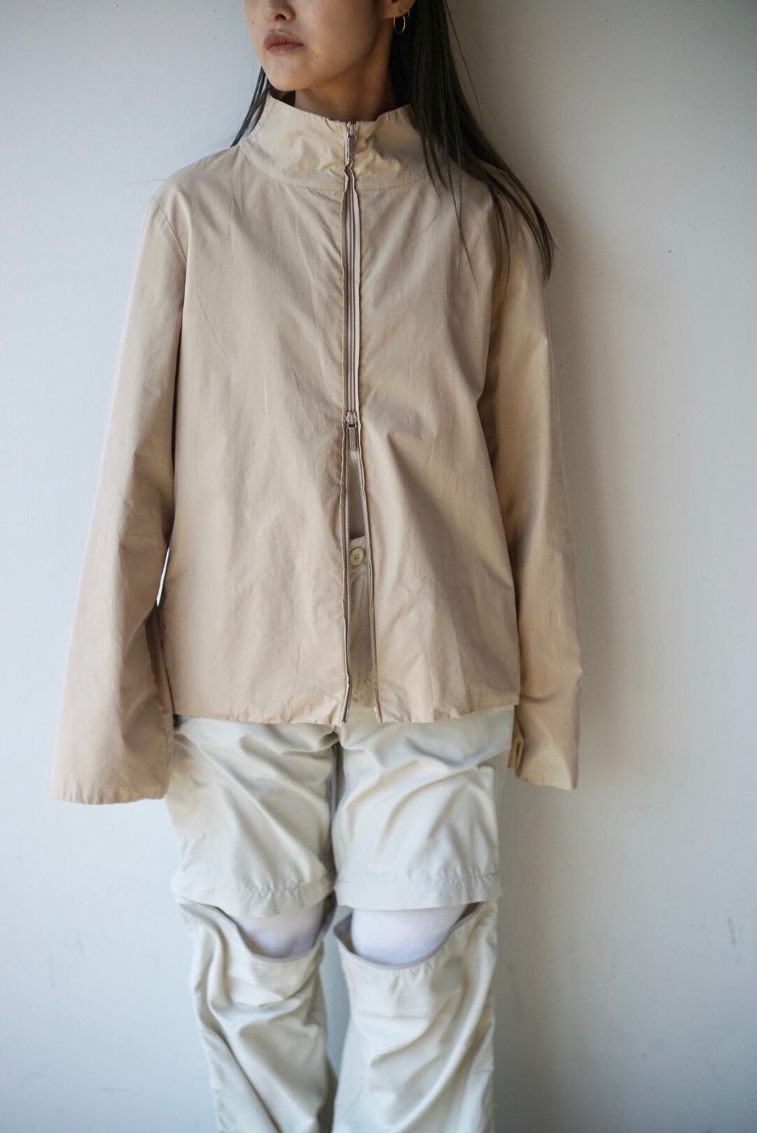 袖口にかけて広がるシルエットでインナーなども重ねやすく、ダブルジップが気分で着方を楽しめるジャケット