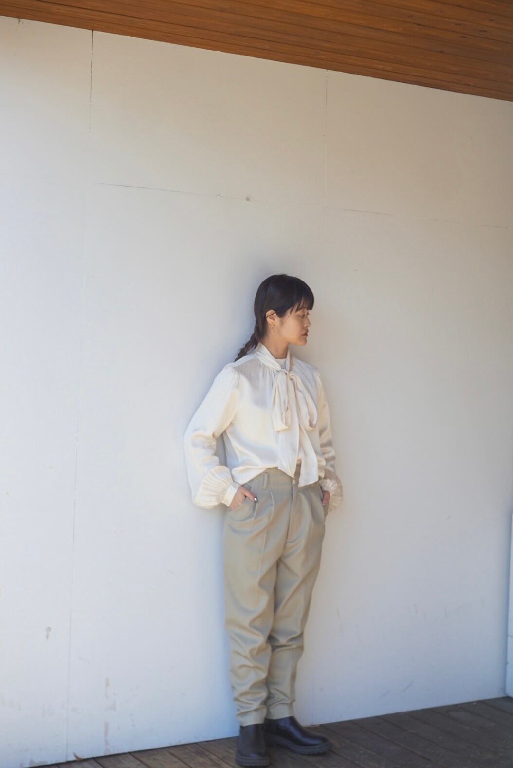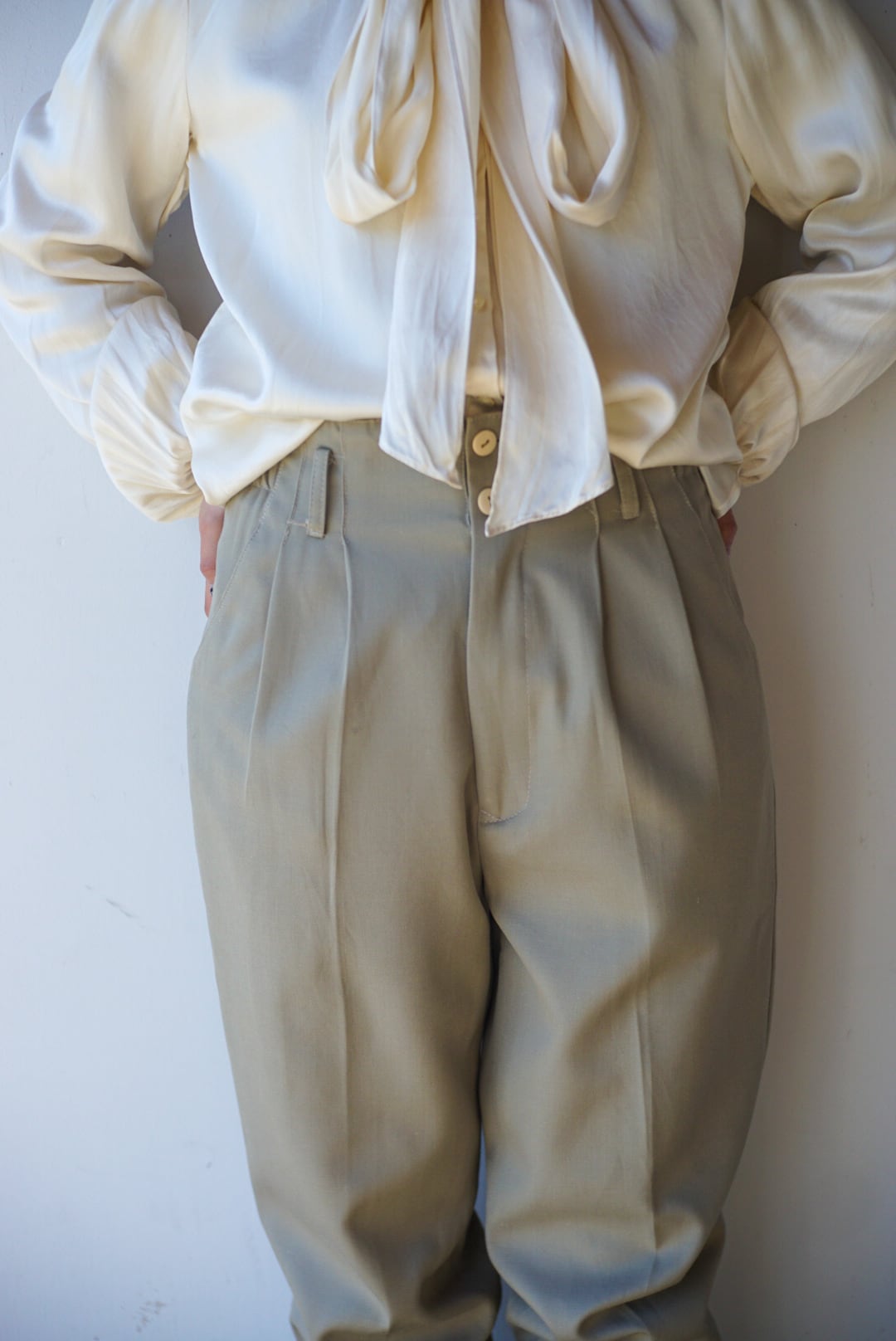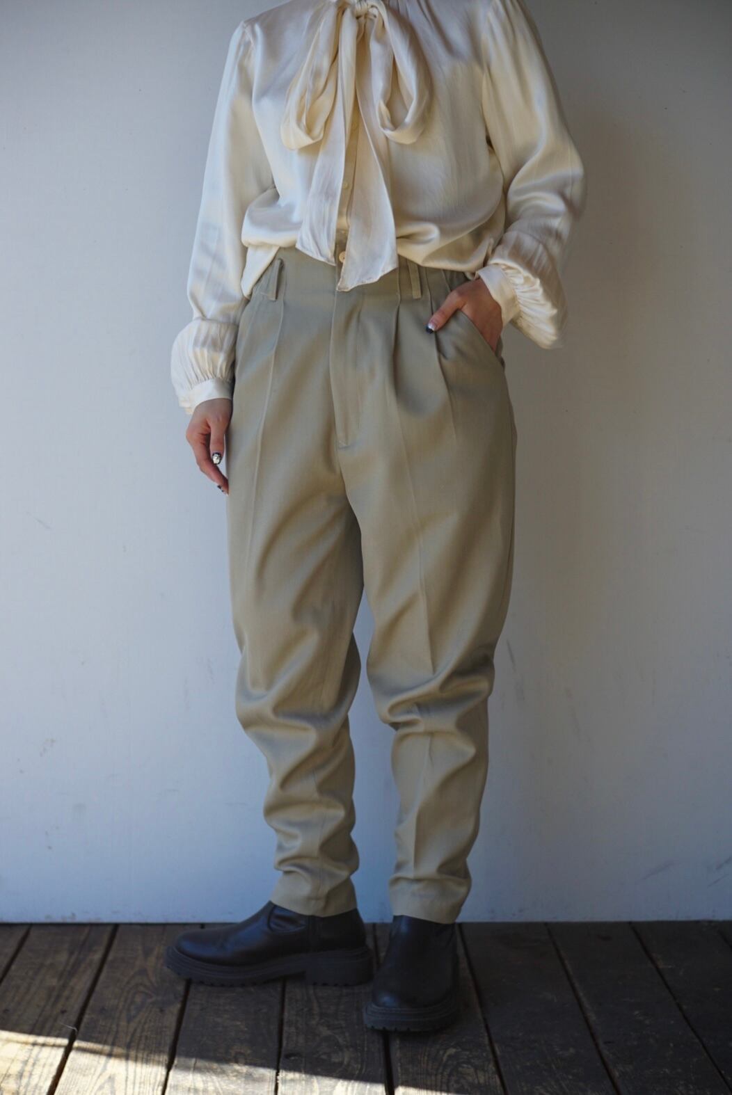 透け感などなくしっかりとした生地で通年着用しやすいパンツ