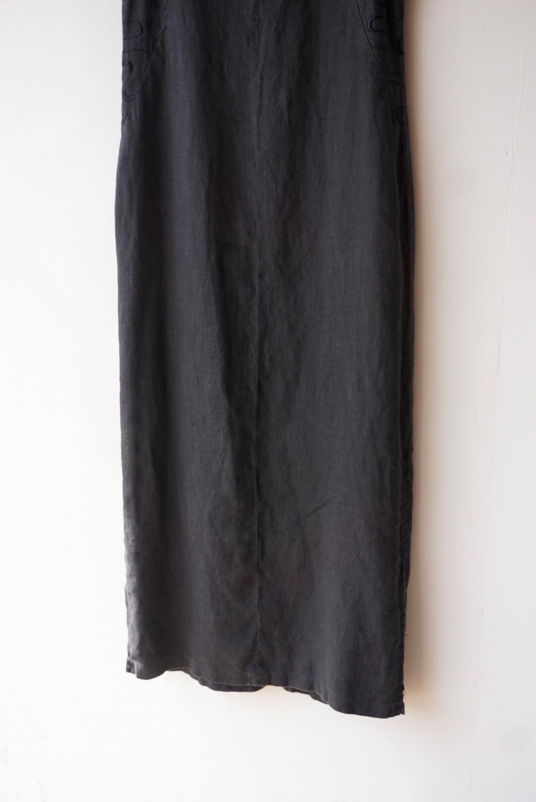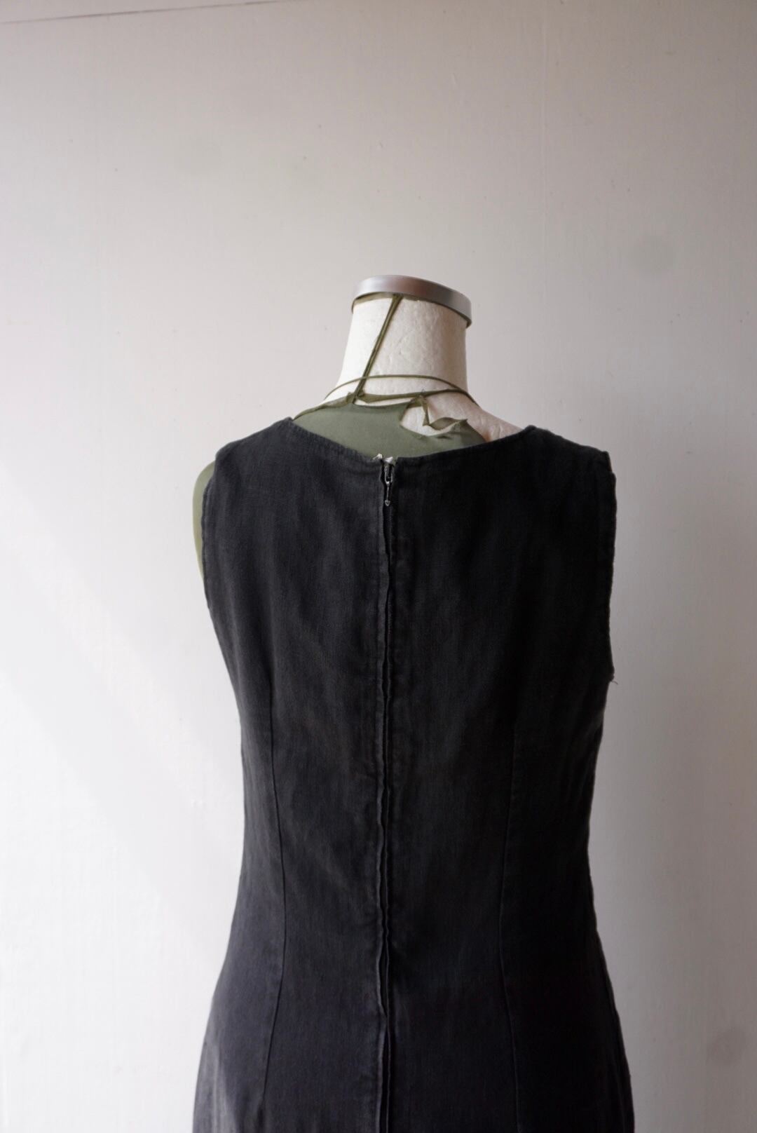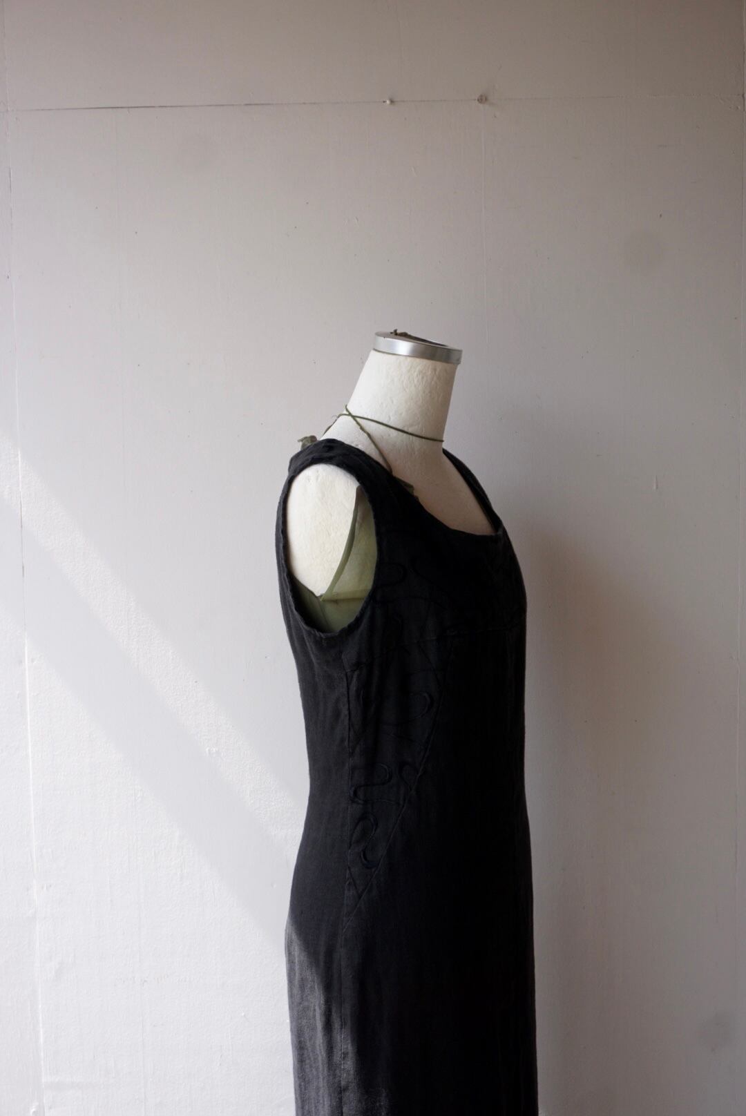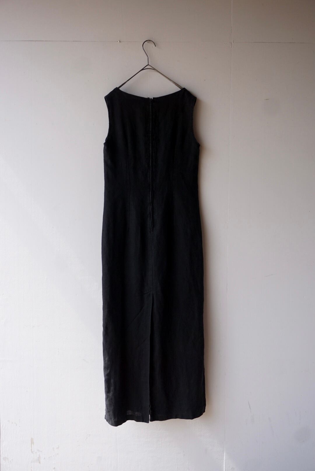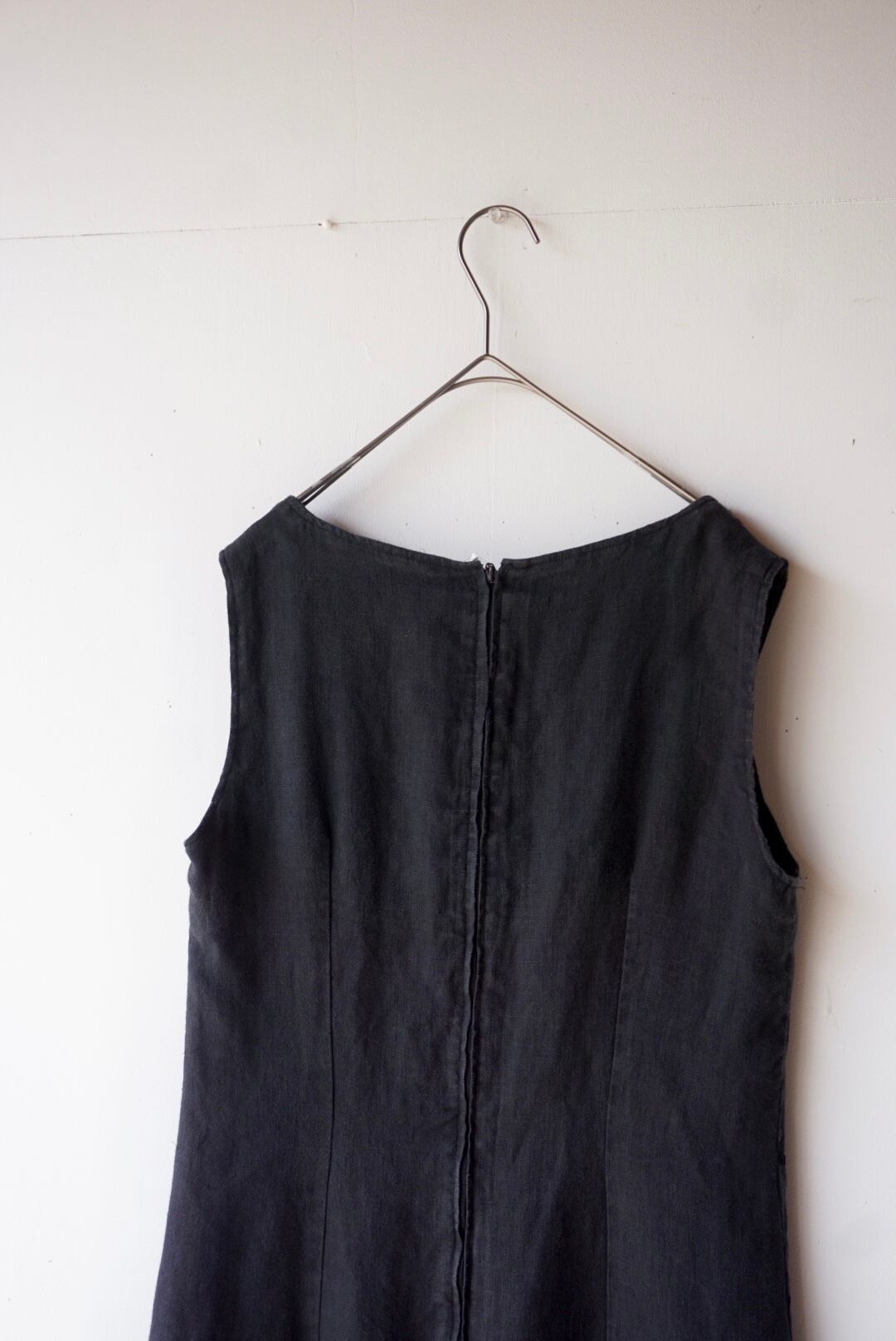 胸元から両脇にかけて黒の刺繍が施されたノースリーブワンピース