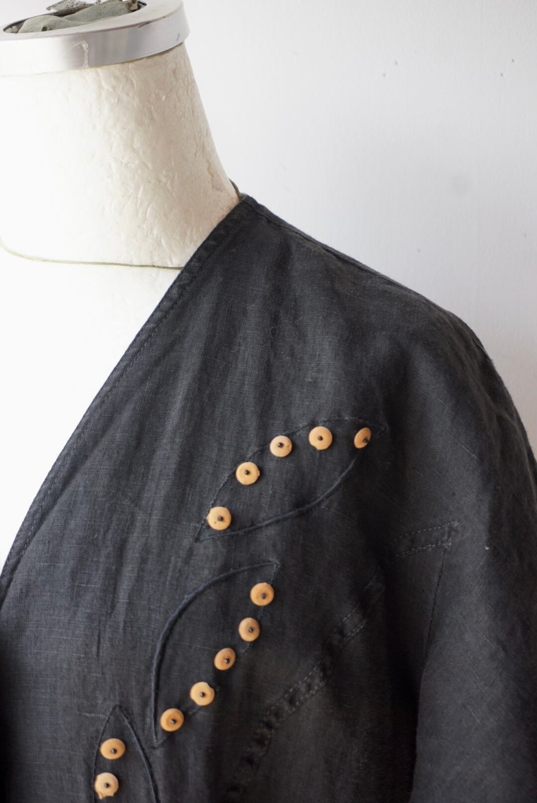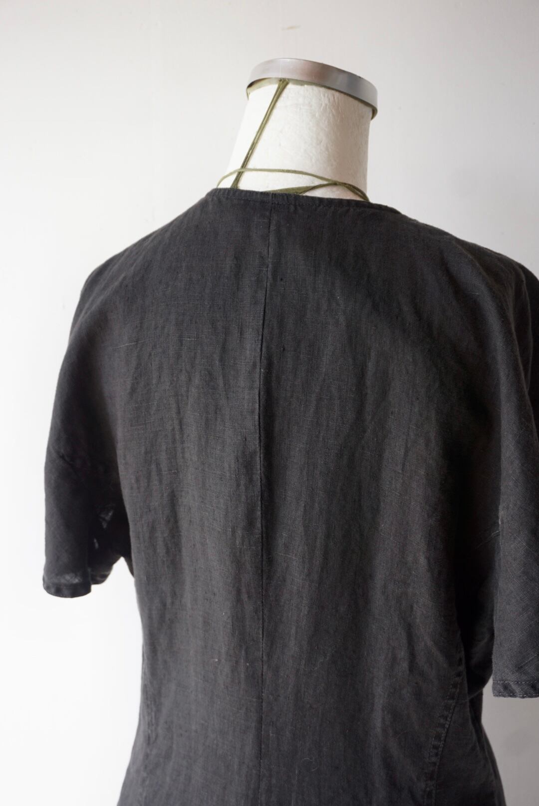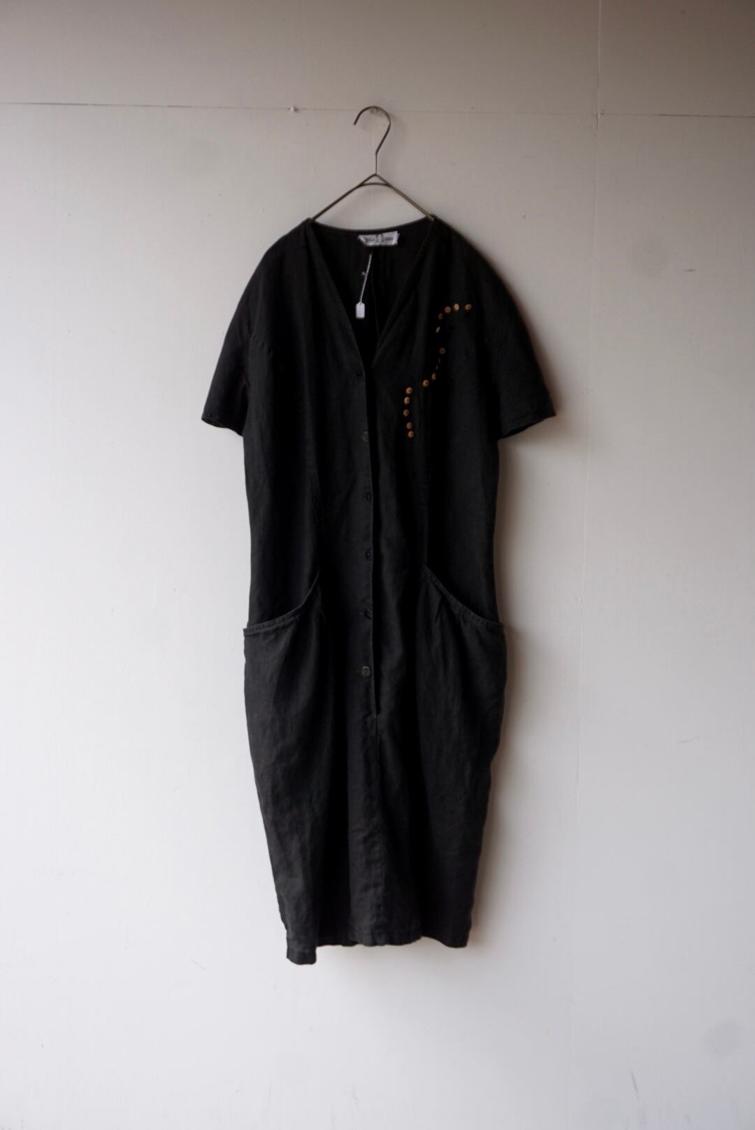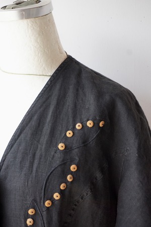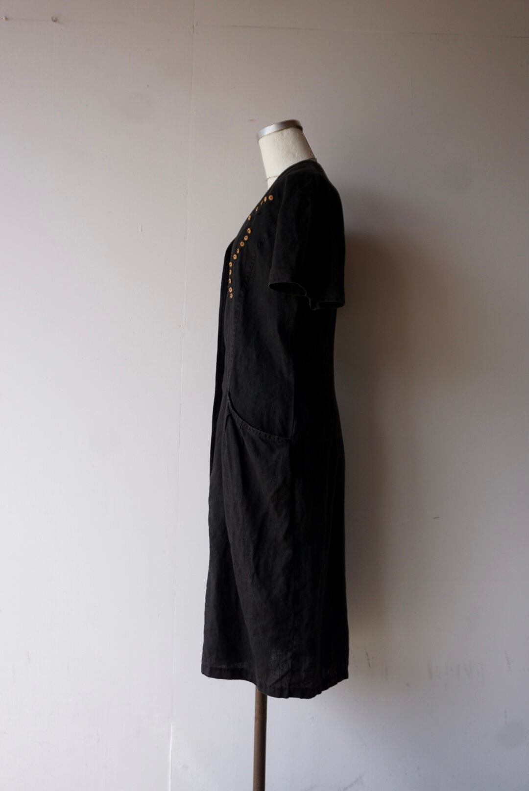 胸元のボタンと刺繍のモチーフや大きめなポケットがポイントになる一枚