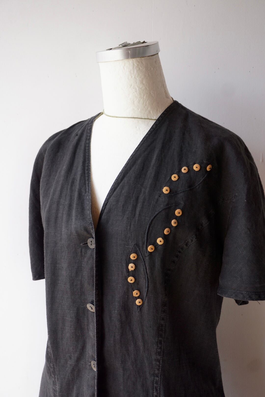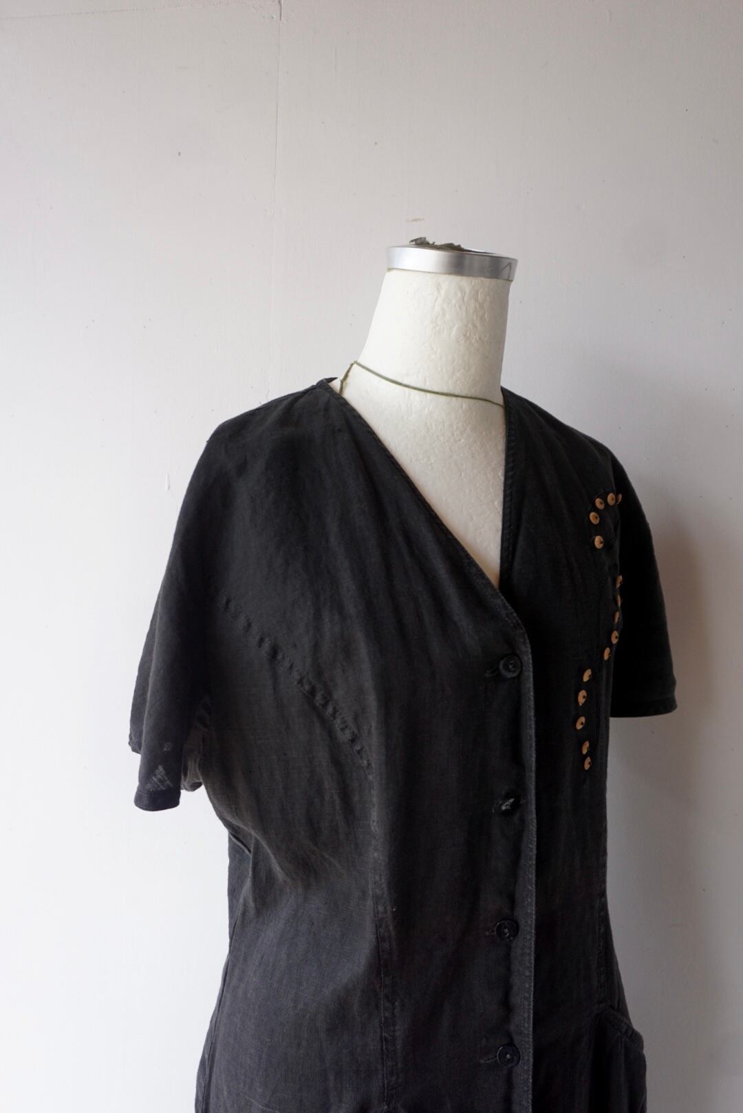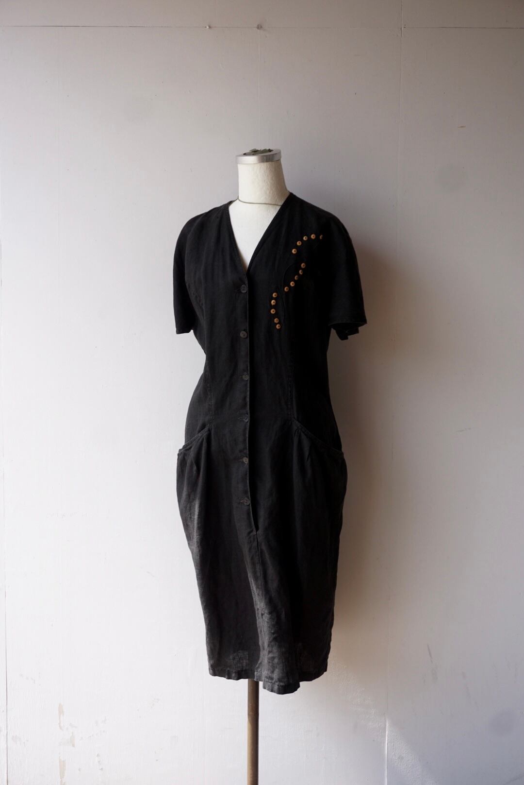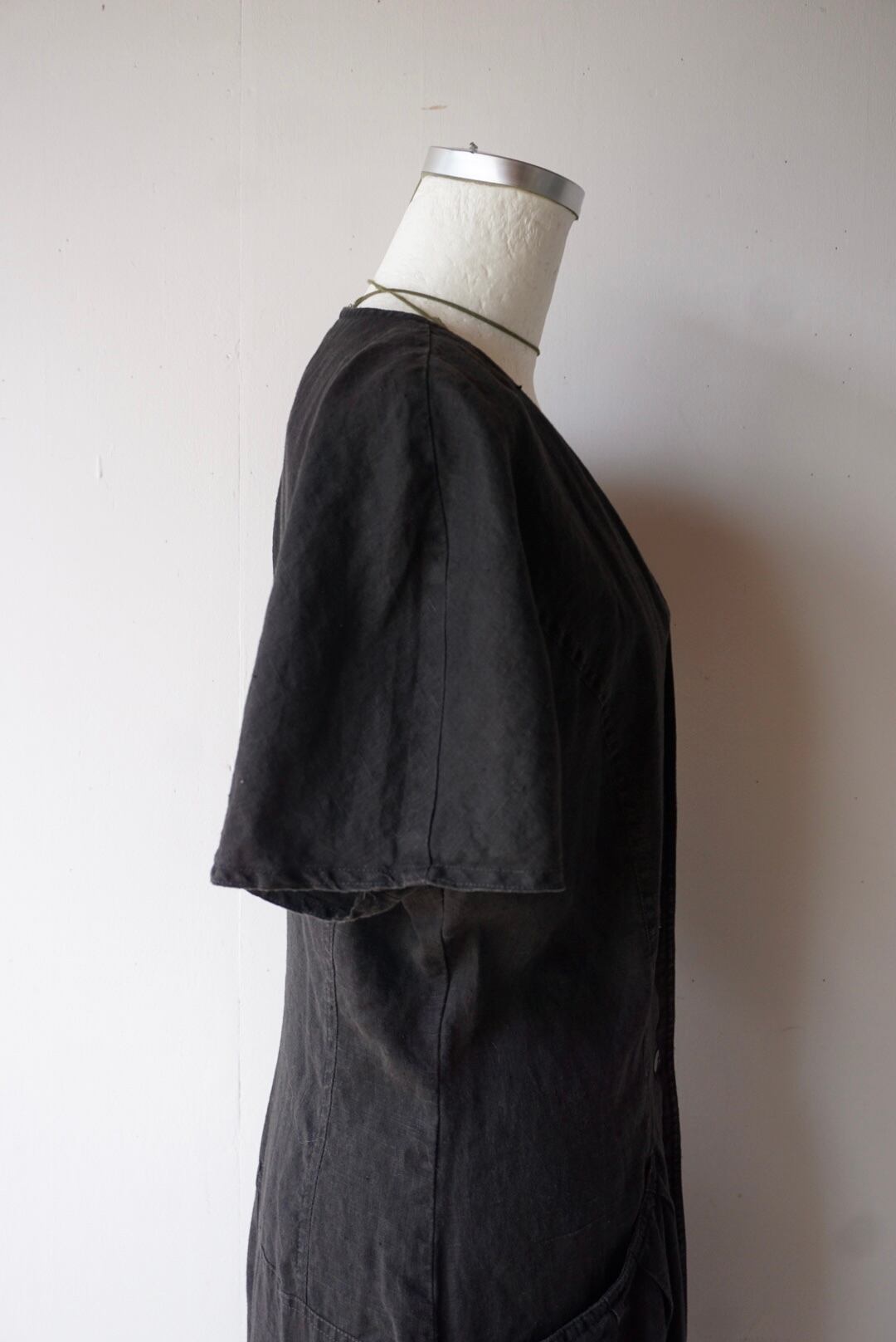 胸元のボタンと刺繍のモチーフや大きめなポケットがポイントになる一枚