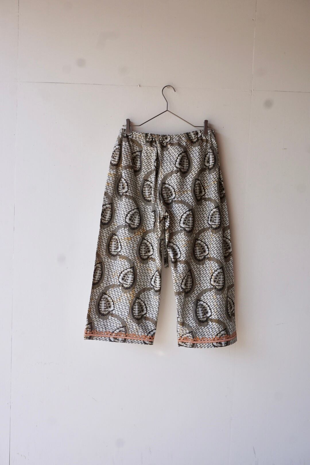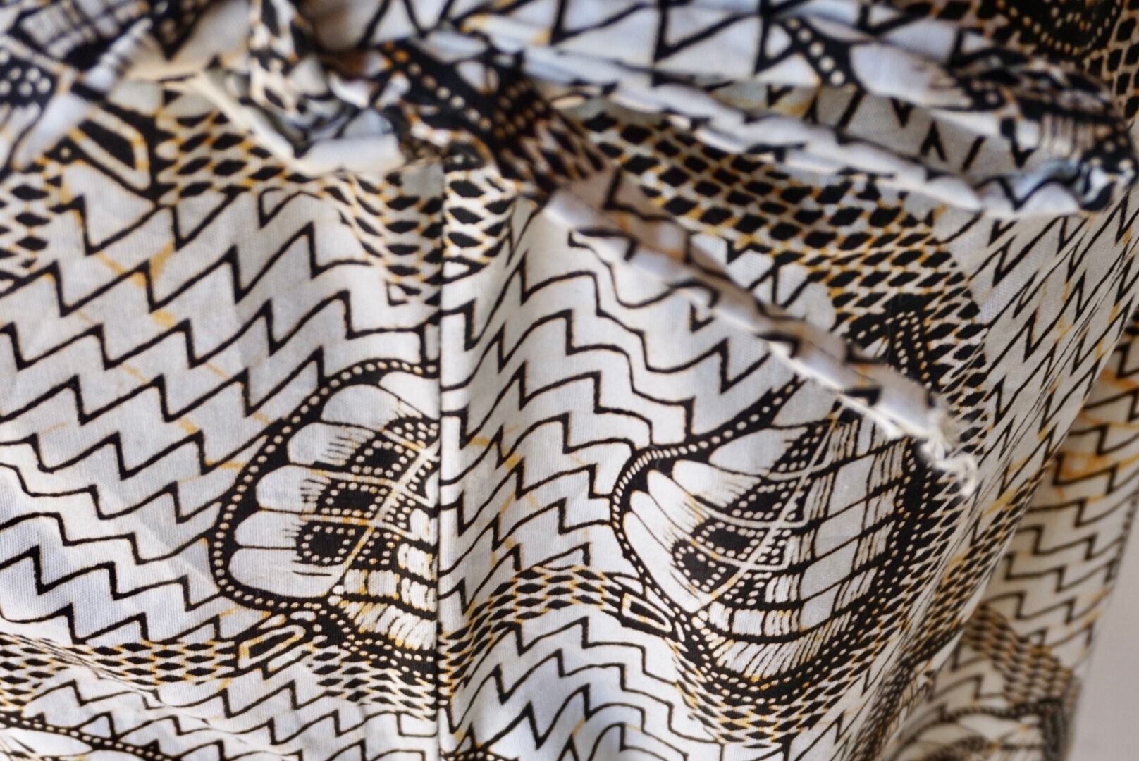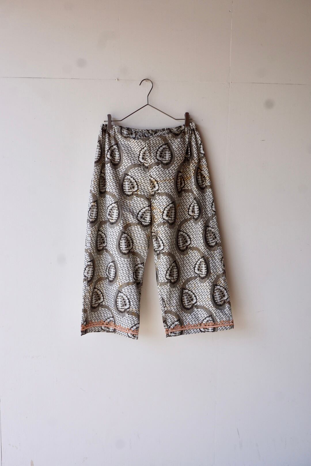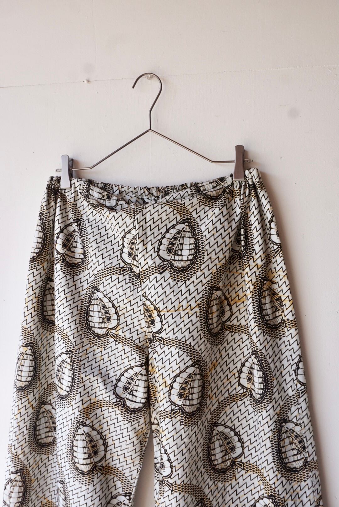 ブラウンカラーをベースとした柄が入っており、色味がナチュラルなアフリカンバティックパンツ