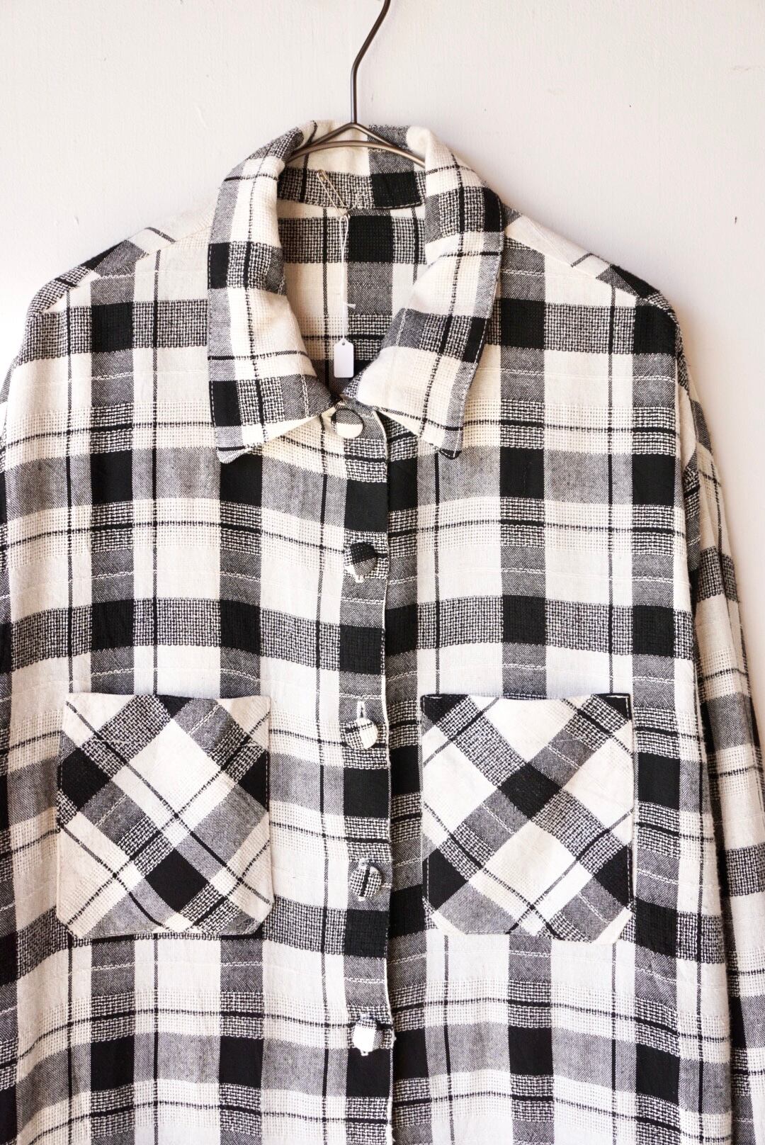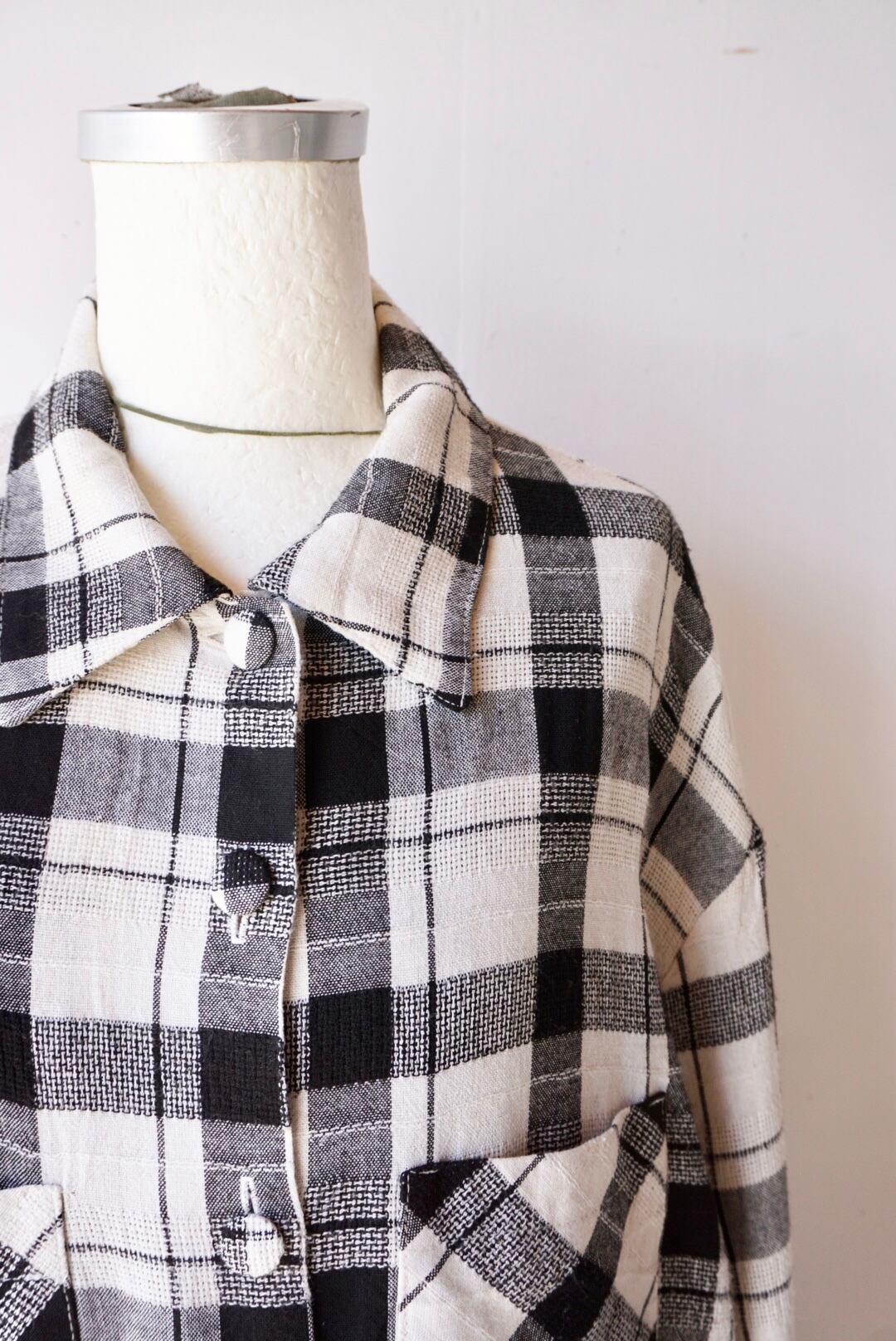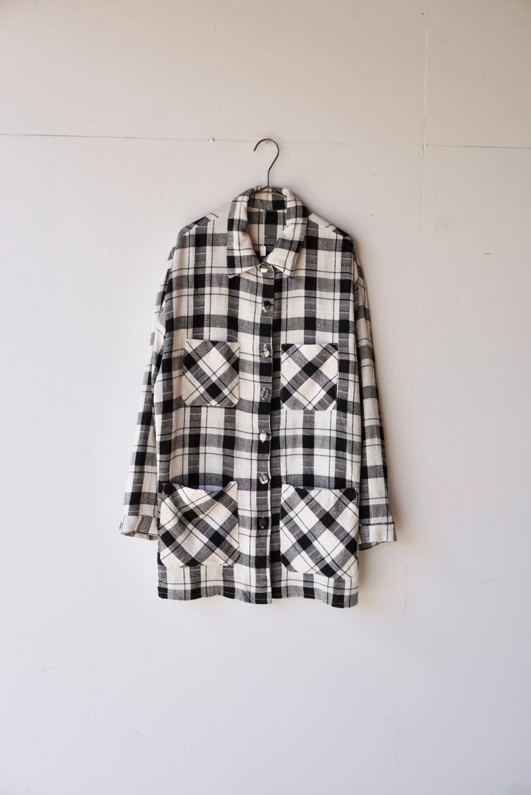 モノトーンの格子柄シャツジャケット