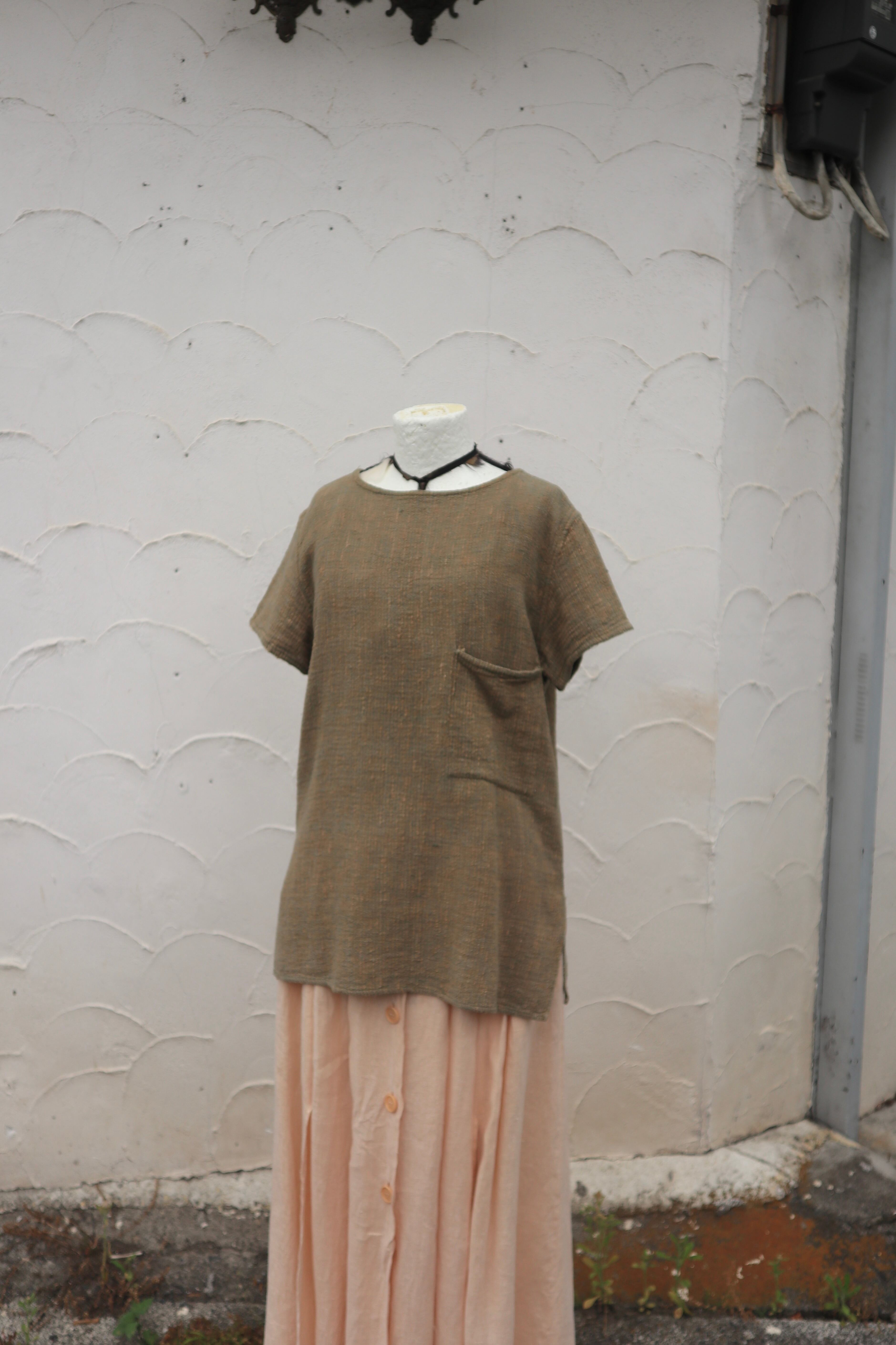 2色の色で織られたネップのような少し凹凸があるコットンプルオーバー