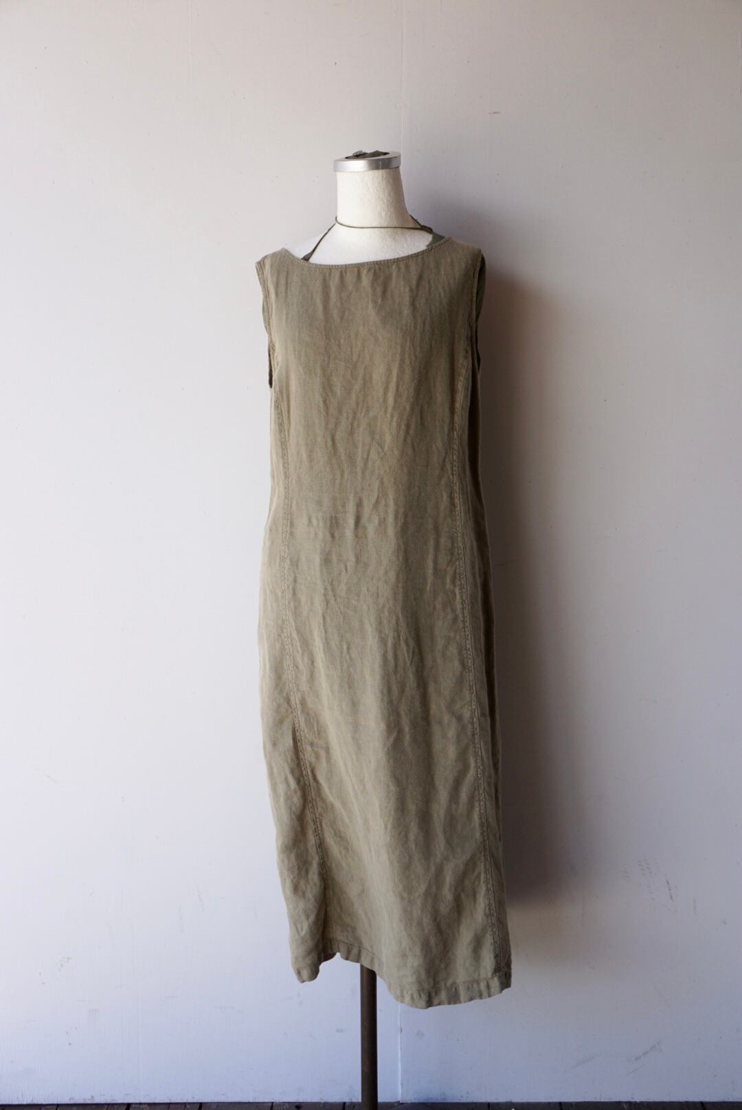 さらりとしたリネンの生地が涼しげなスリーブレスワンピース