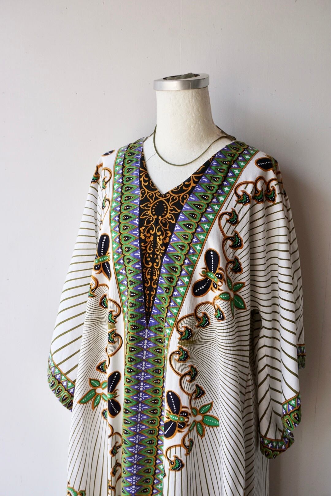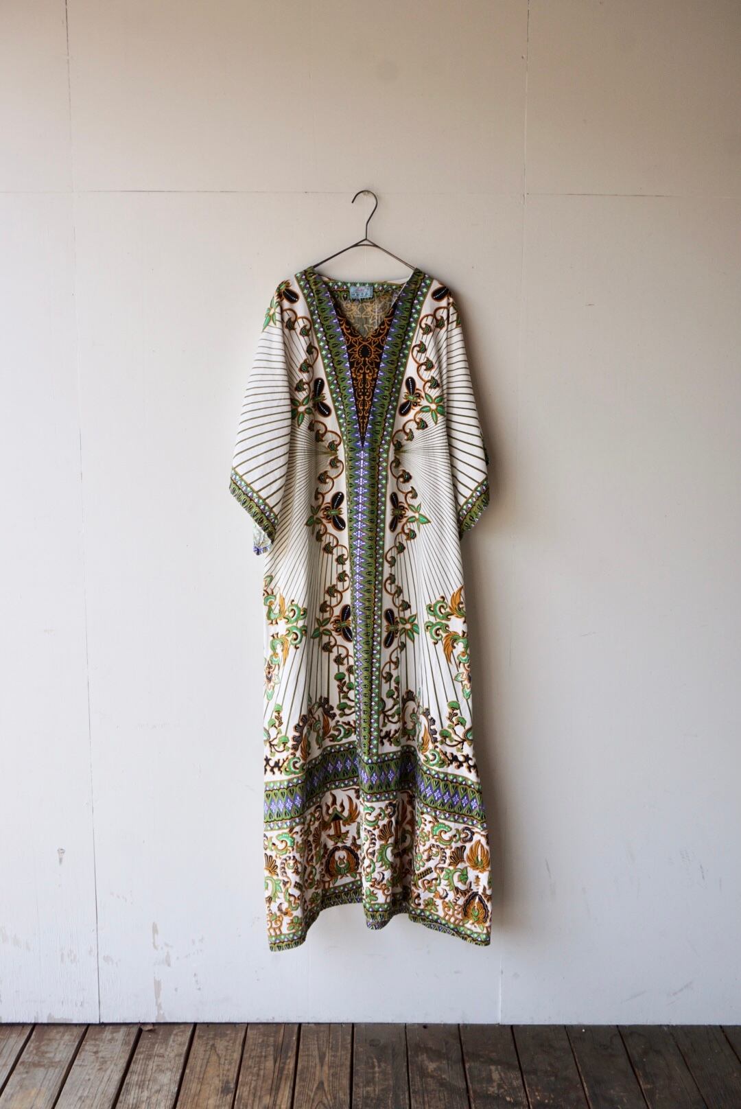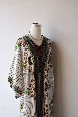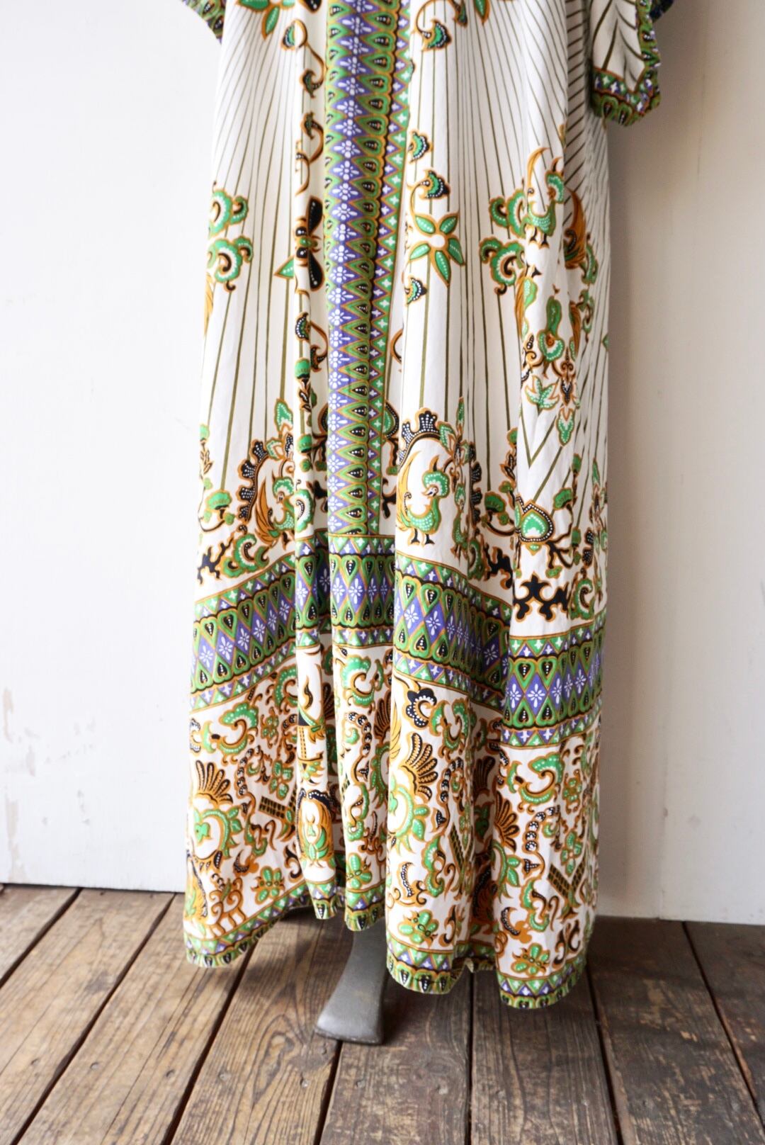 グリーンやブルーの色味が爽やかなエスニックワンピース