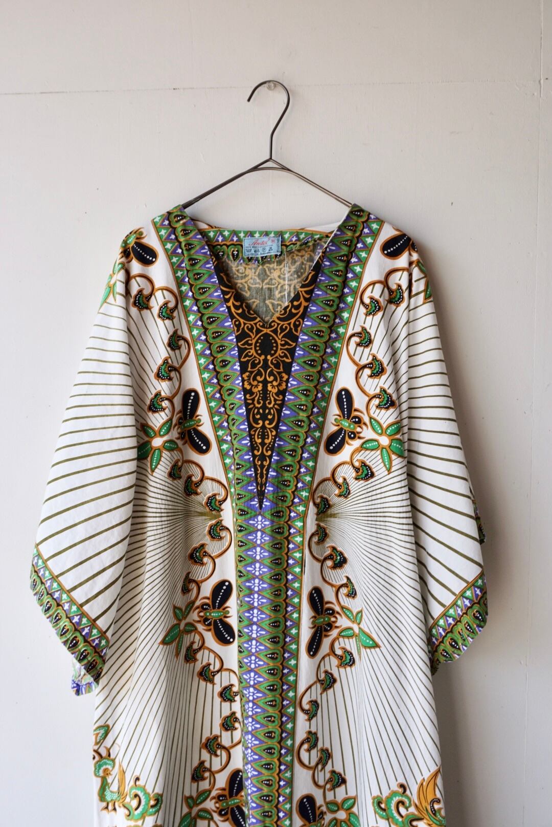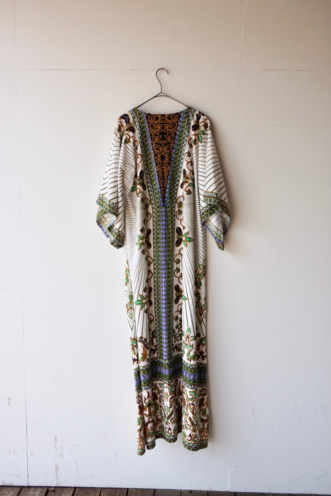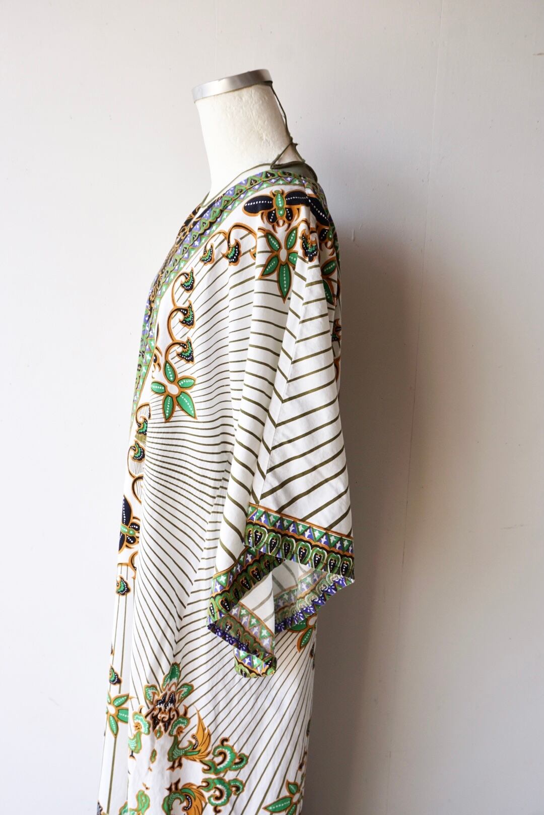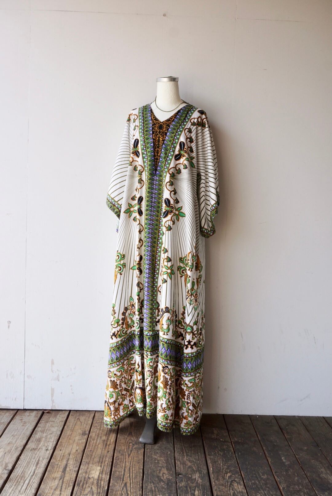 グリーンやブルーの色味が爽やかなエスニックワンピース