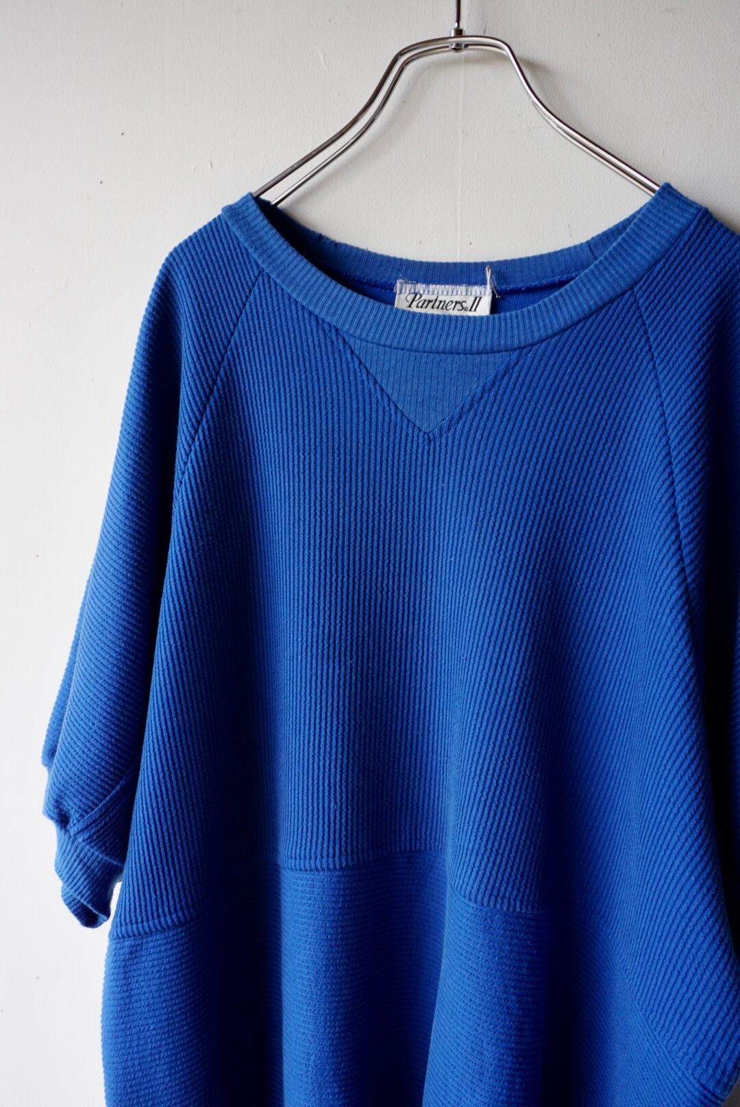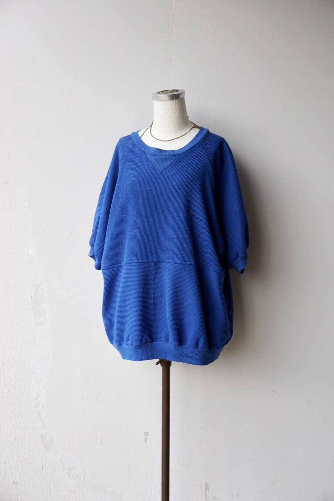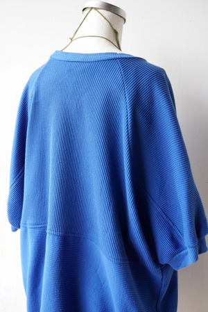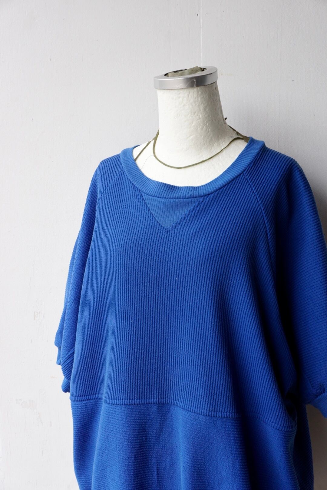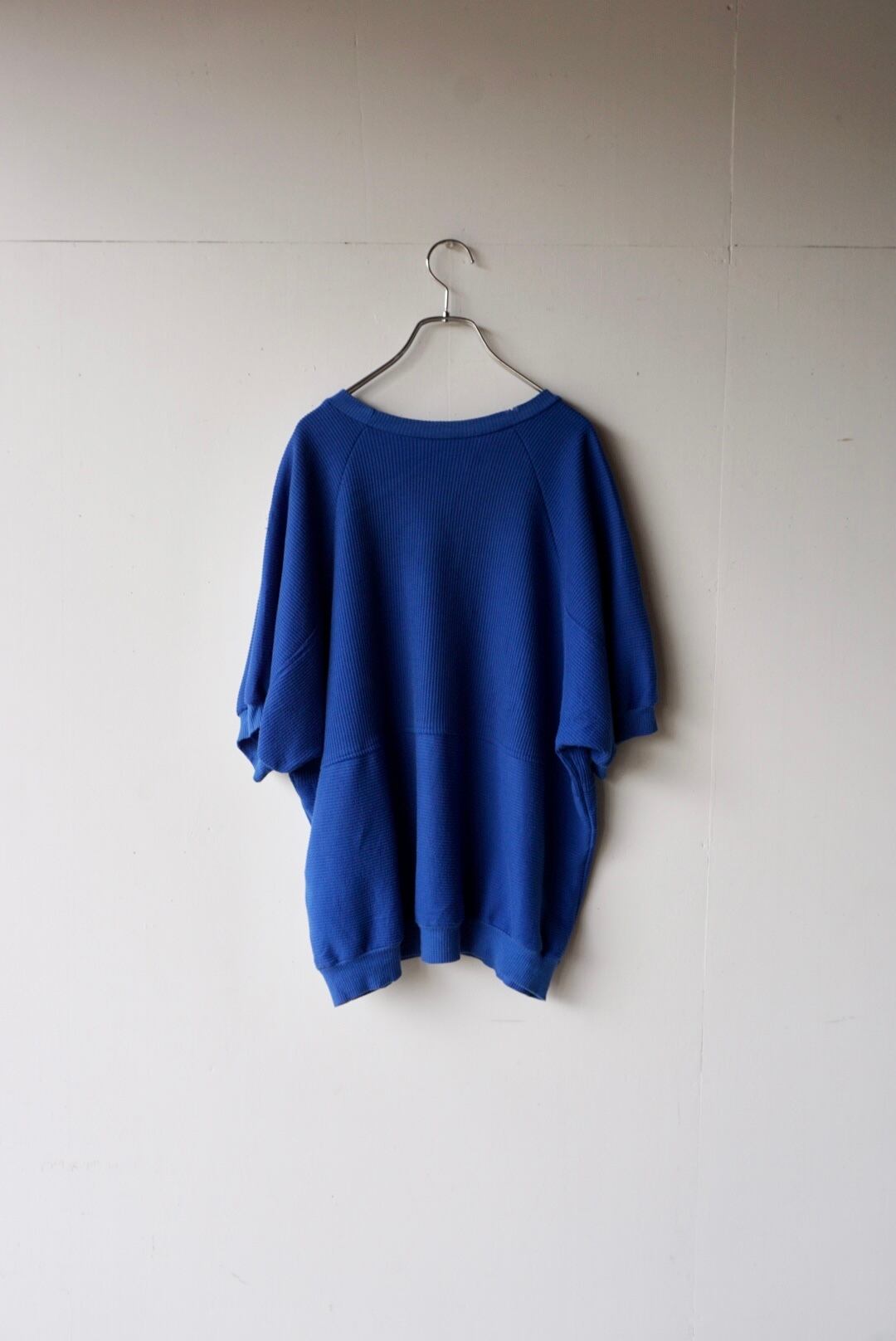 濃いブルーカラーが目を惹く一枚で無地ながらデザイン性が高く、ラグランスリーブで体型問わず着ていただけます。