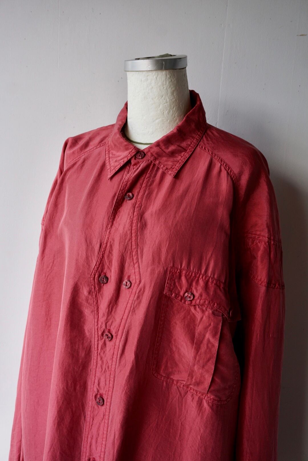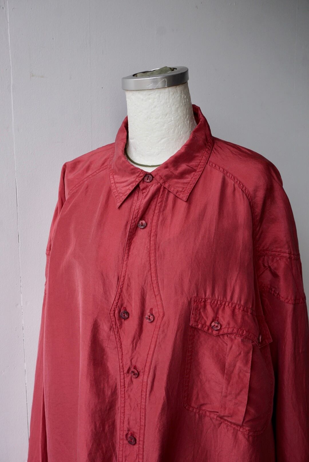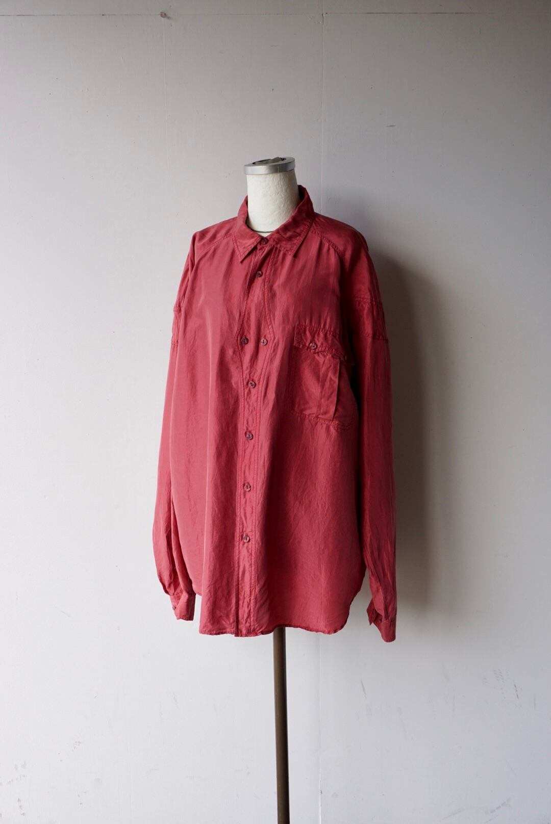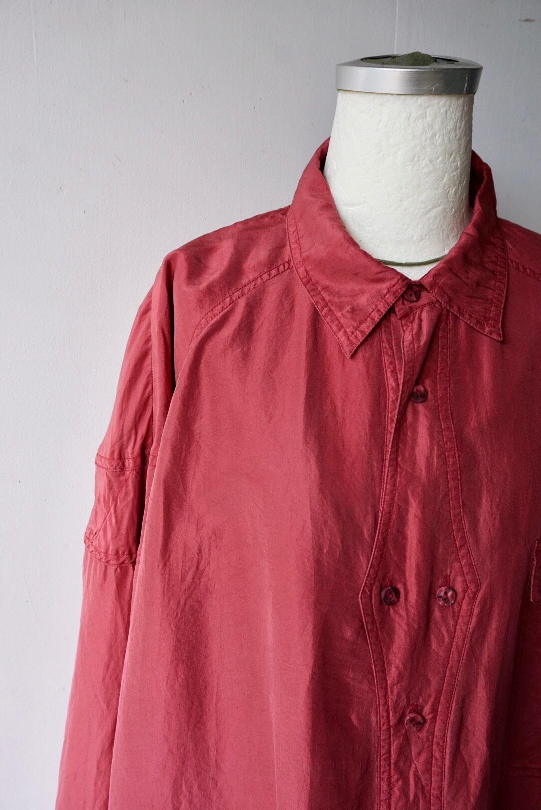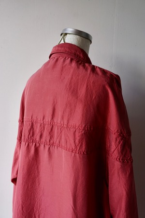 ボタンの配置や肩部分から背面に入ったデザインがシンプルなワンカラーのシャツを引き立たせる一枚