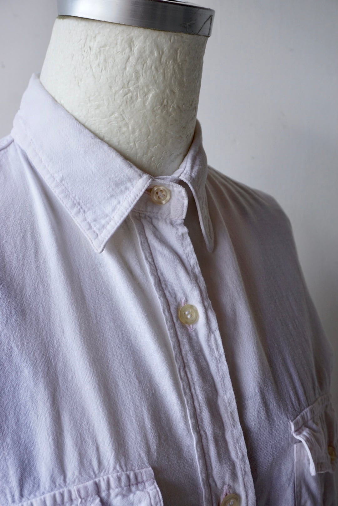 淡いピンクのステッチと、コットンならではの風合いが可愛らしい一着