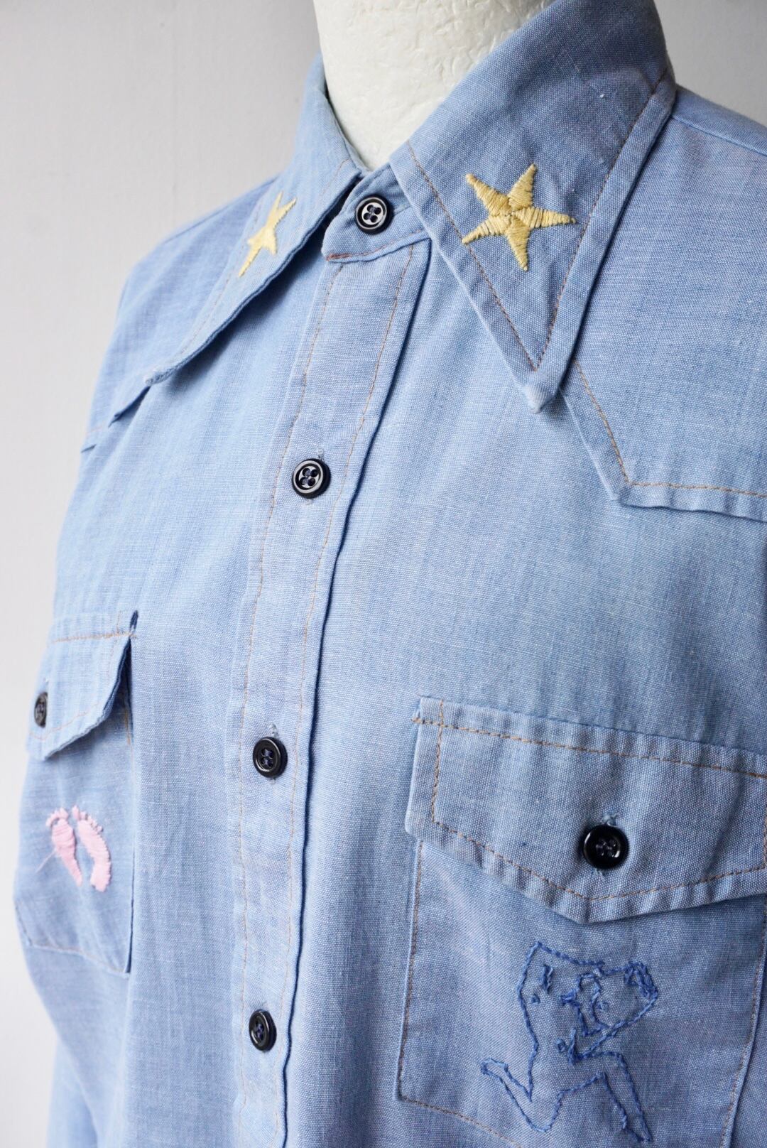 アメリカのカルチャーを感じさせてくれる70年代頃の刺繍シャツ