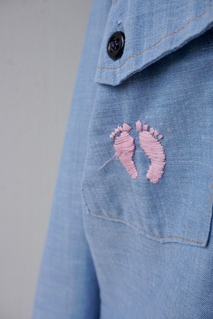 もともとは無地のシャツだったものに、個人が刺繍したものだと思います。