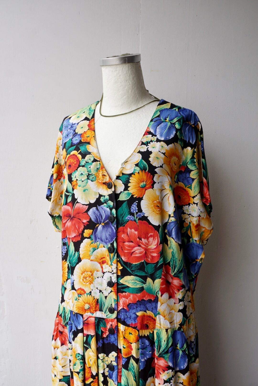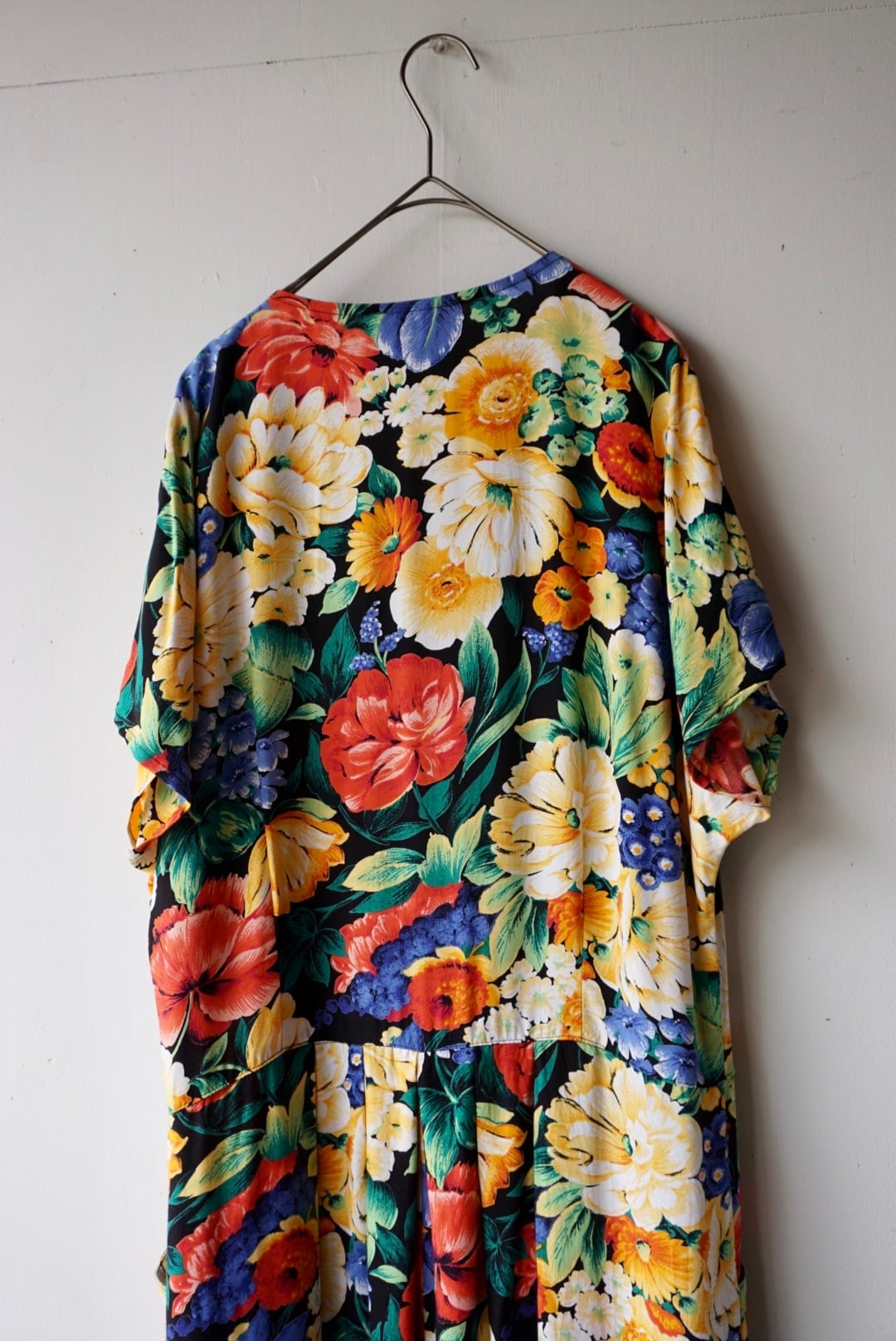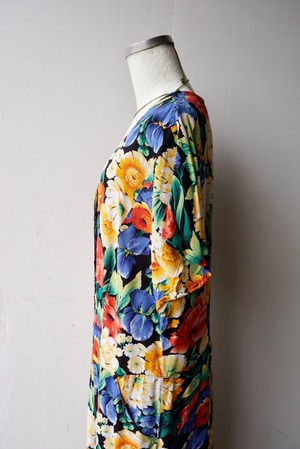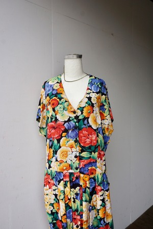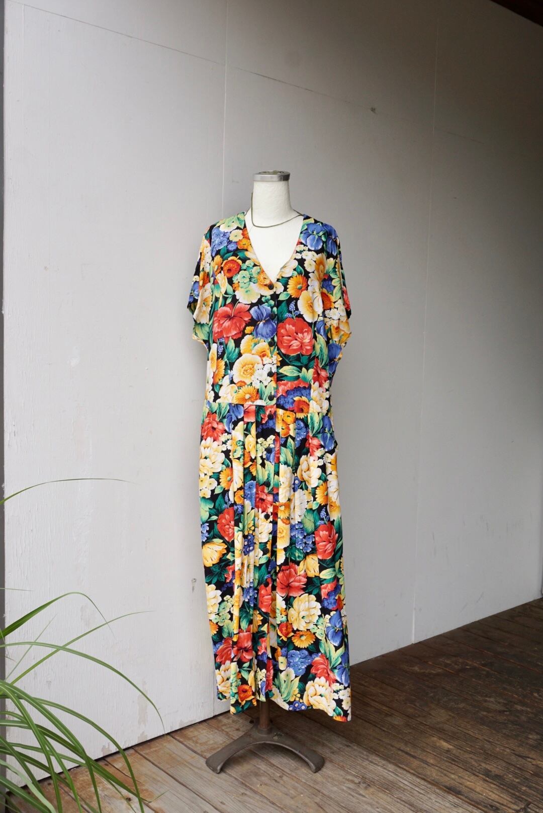 大きな花柄が全体にプリントされたワンピース