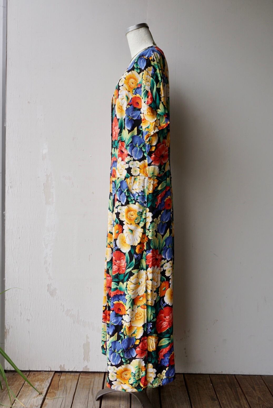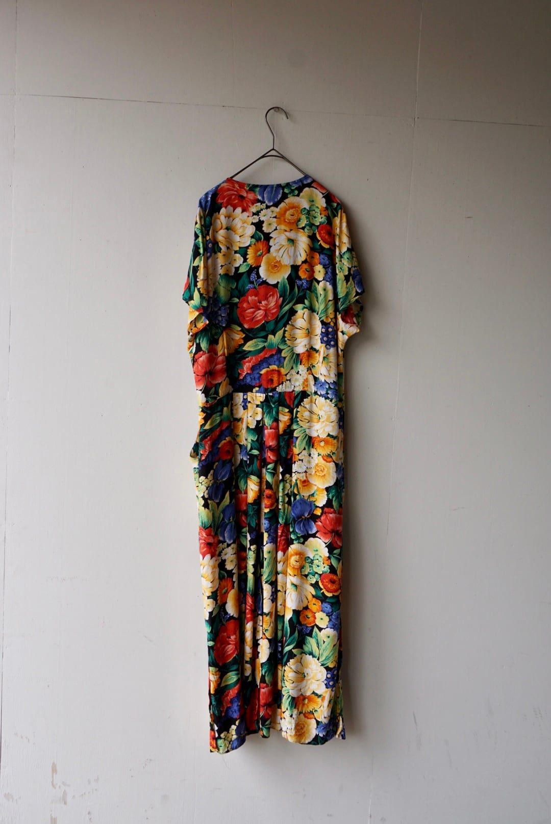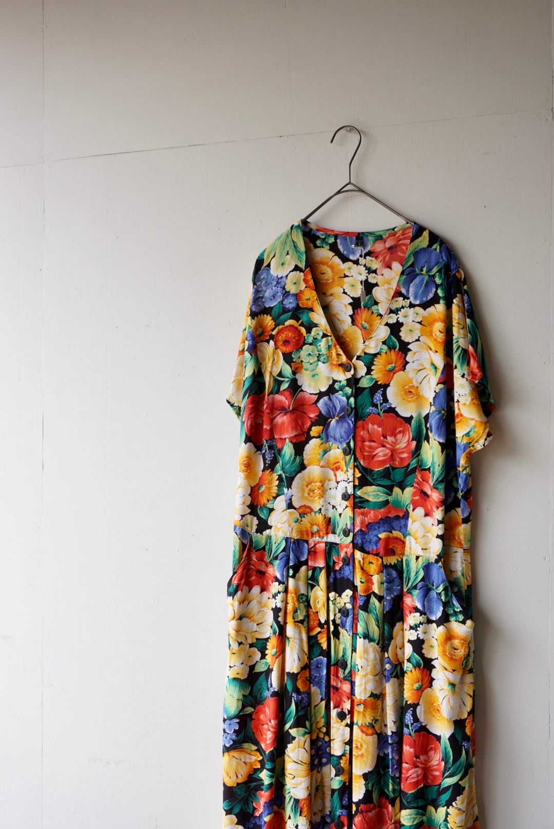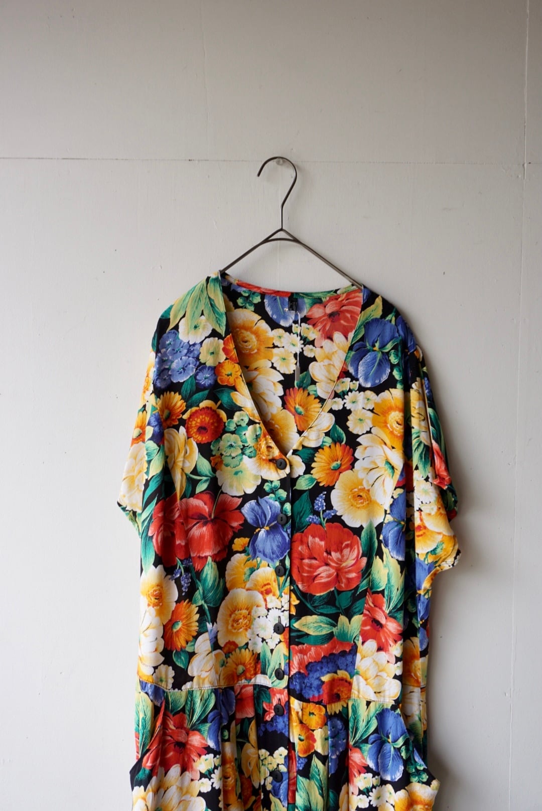 大きな花柄が全体にプリントされたワンピース