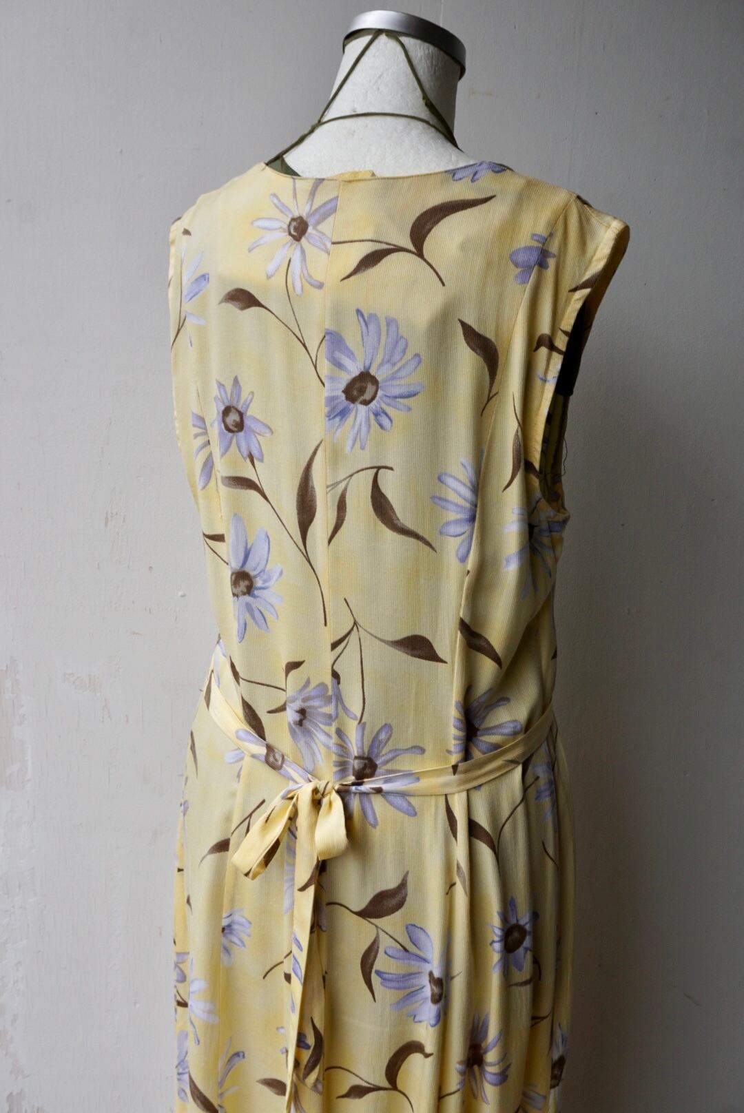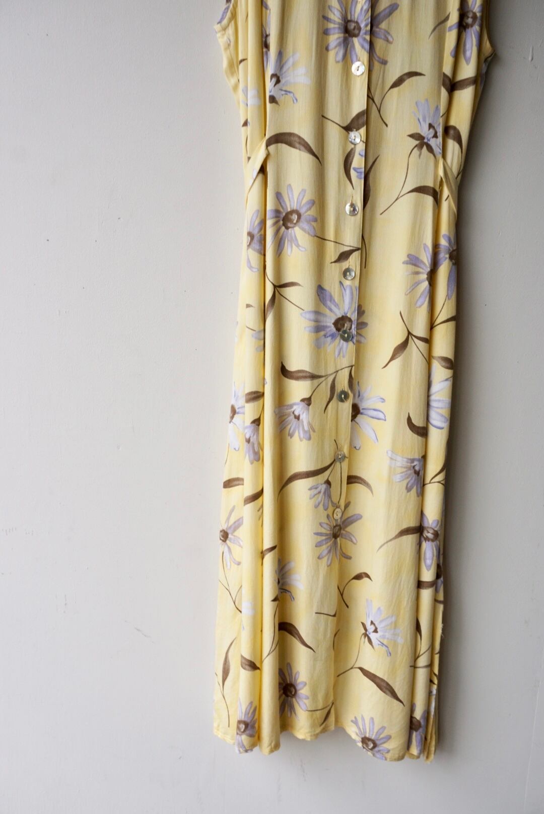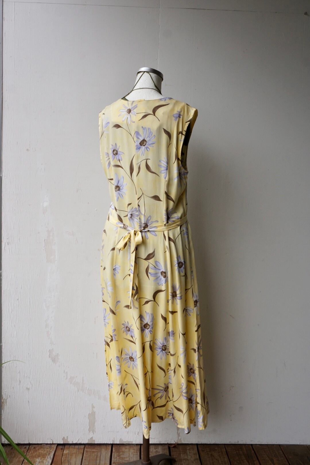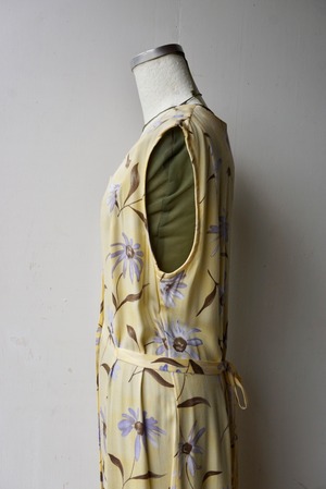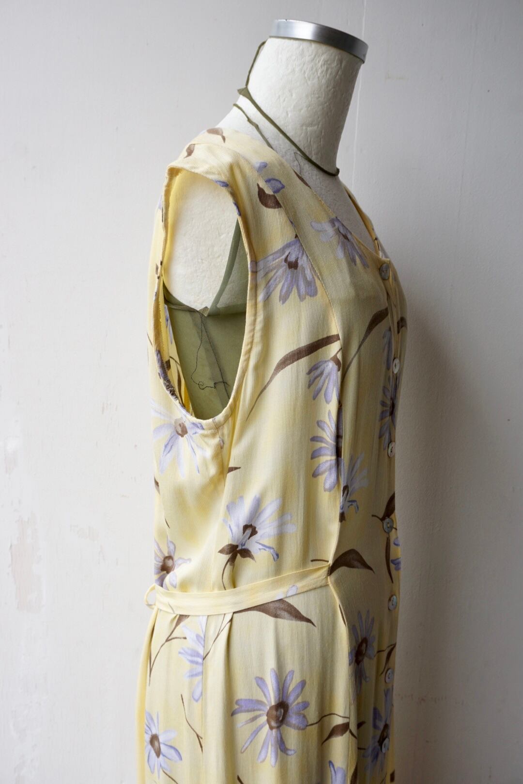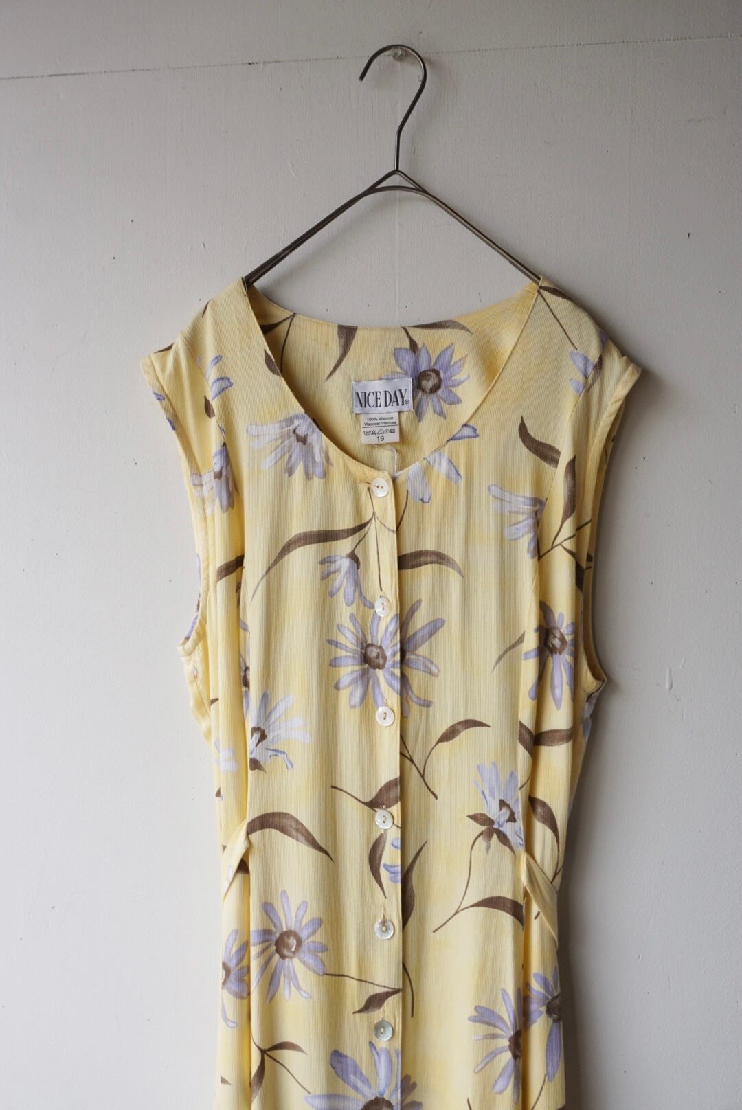 淡いレモンイエローの色味が可愛いらしいノースリーブワンピース