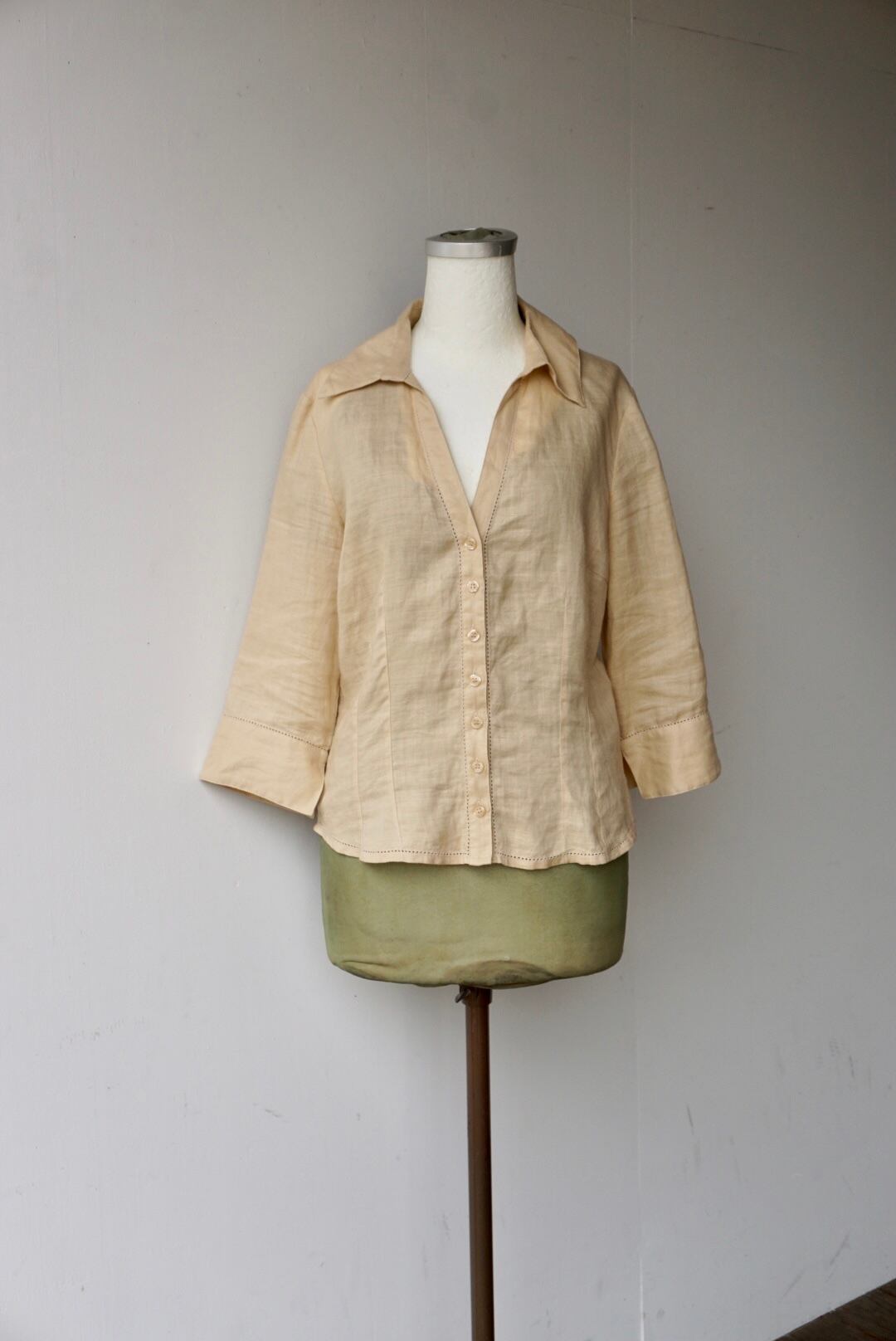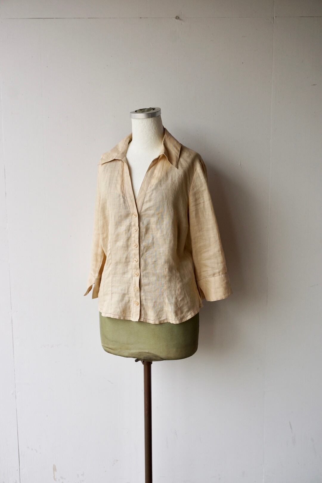 リネンのような軽く薄手の生地でサラリと着れるスキッパーシャツ