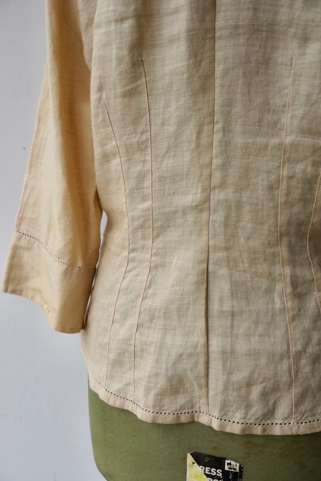 ウエストにはダーツが入っており立体的なシルエットになり女性らしく着れる一着