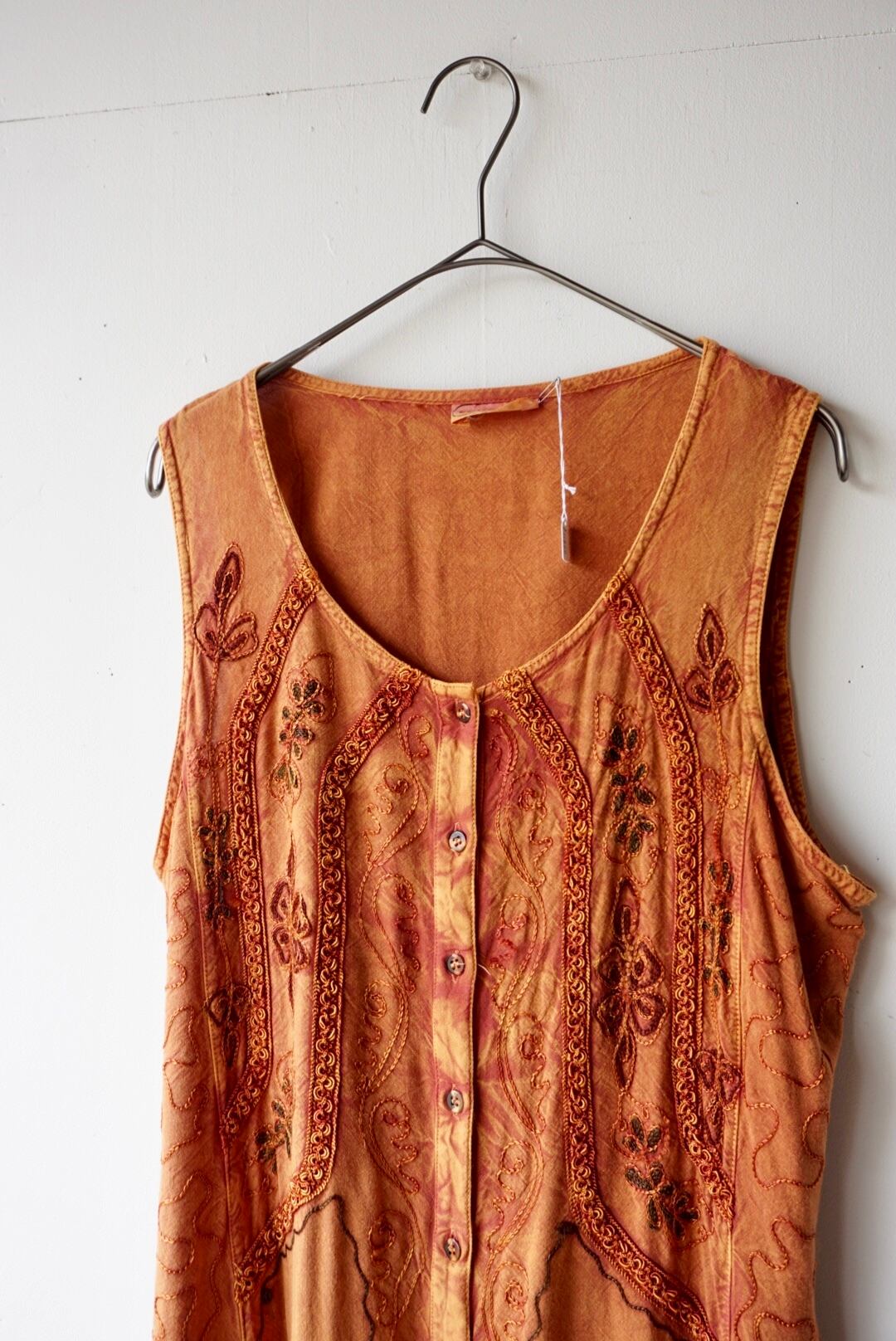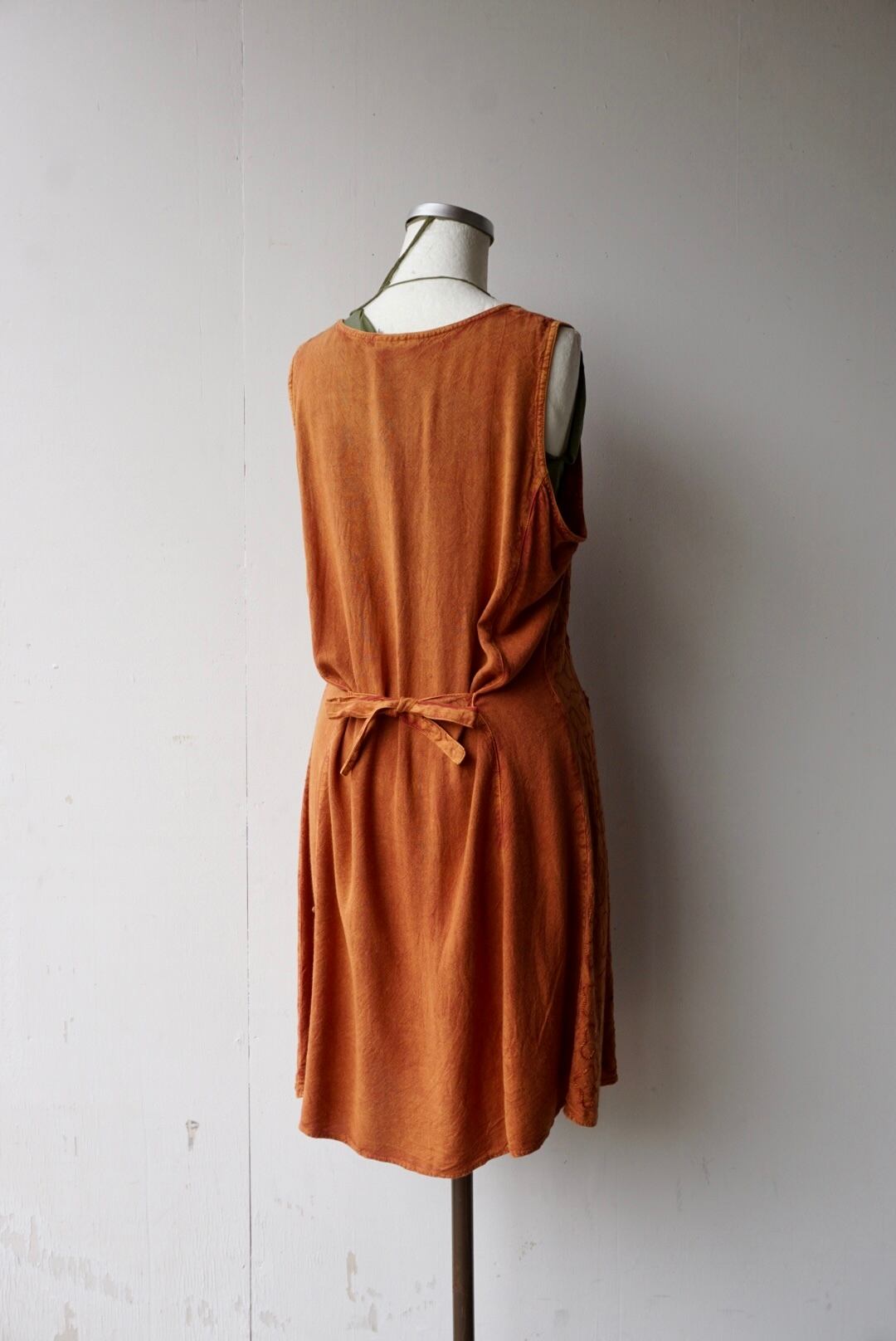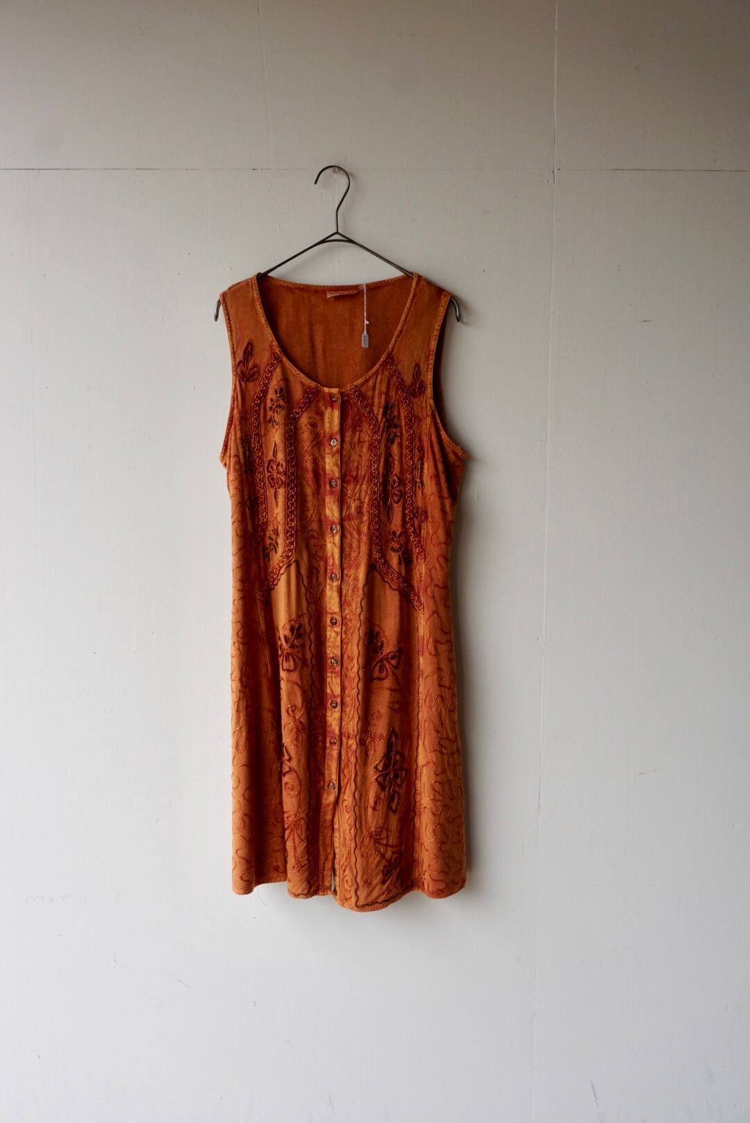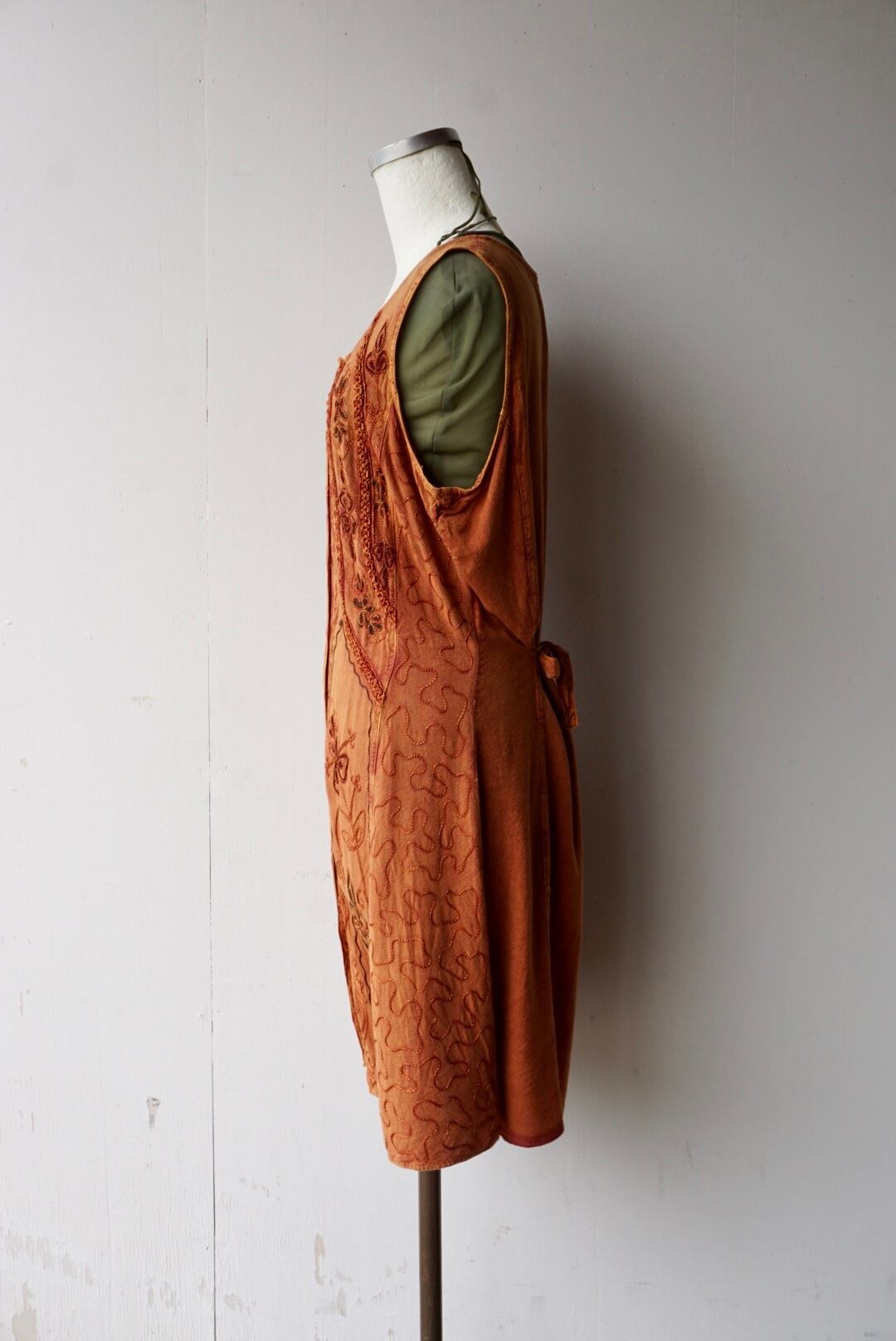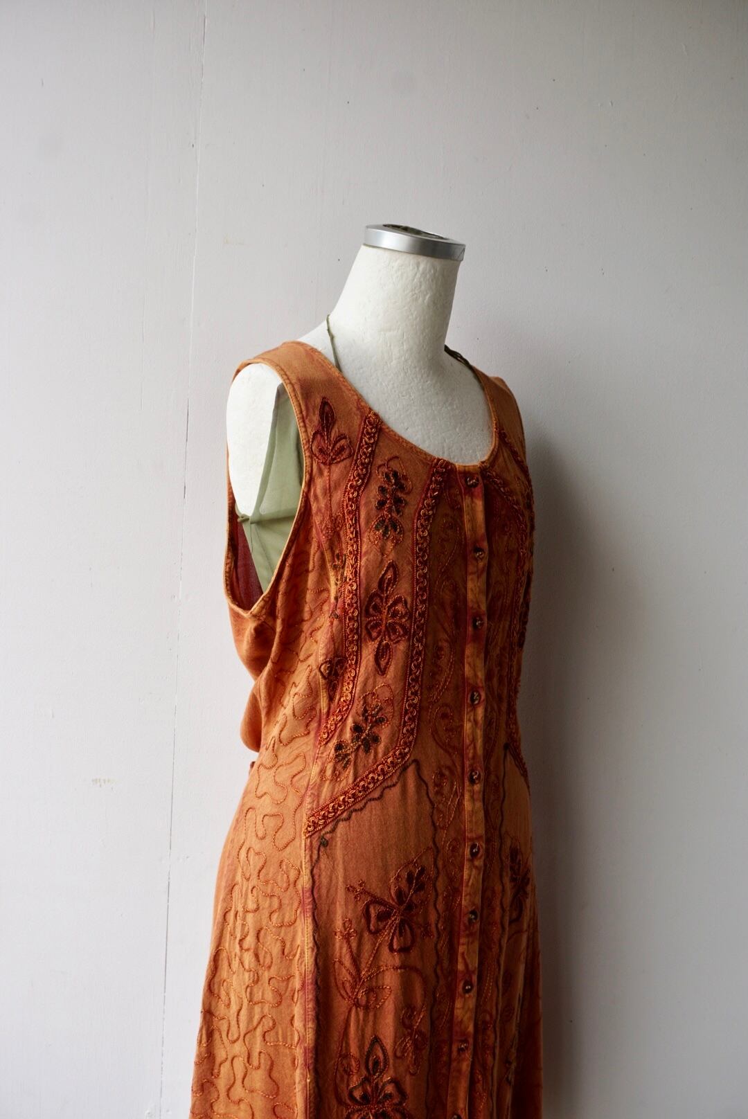 前面に立体的な刺繍が施されたノースリーブワンピース