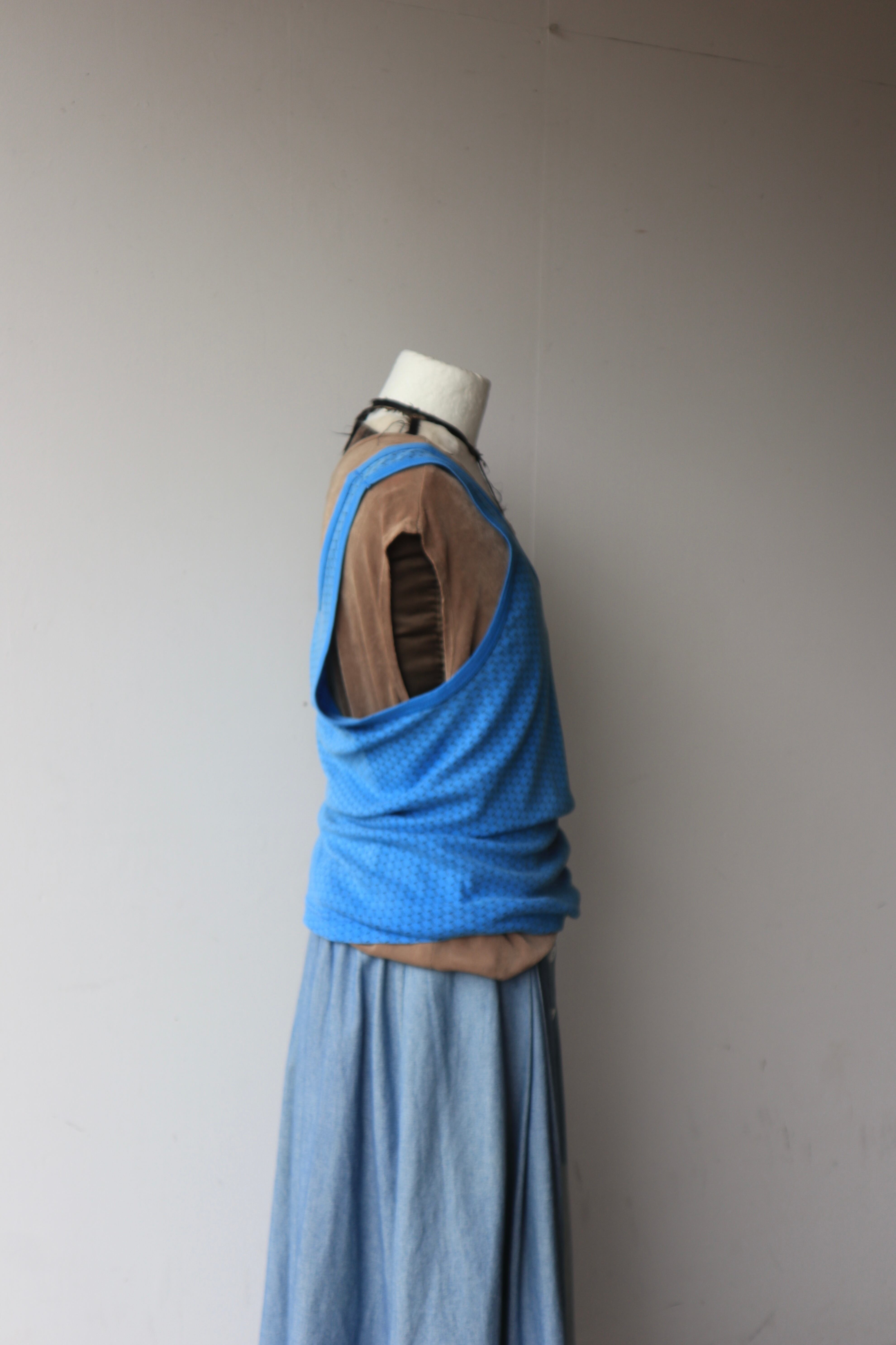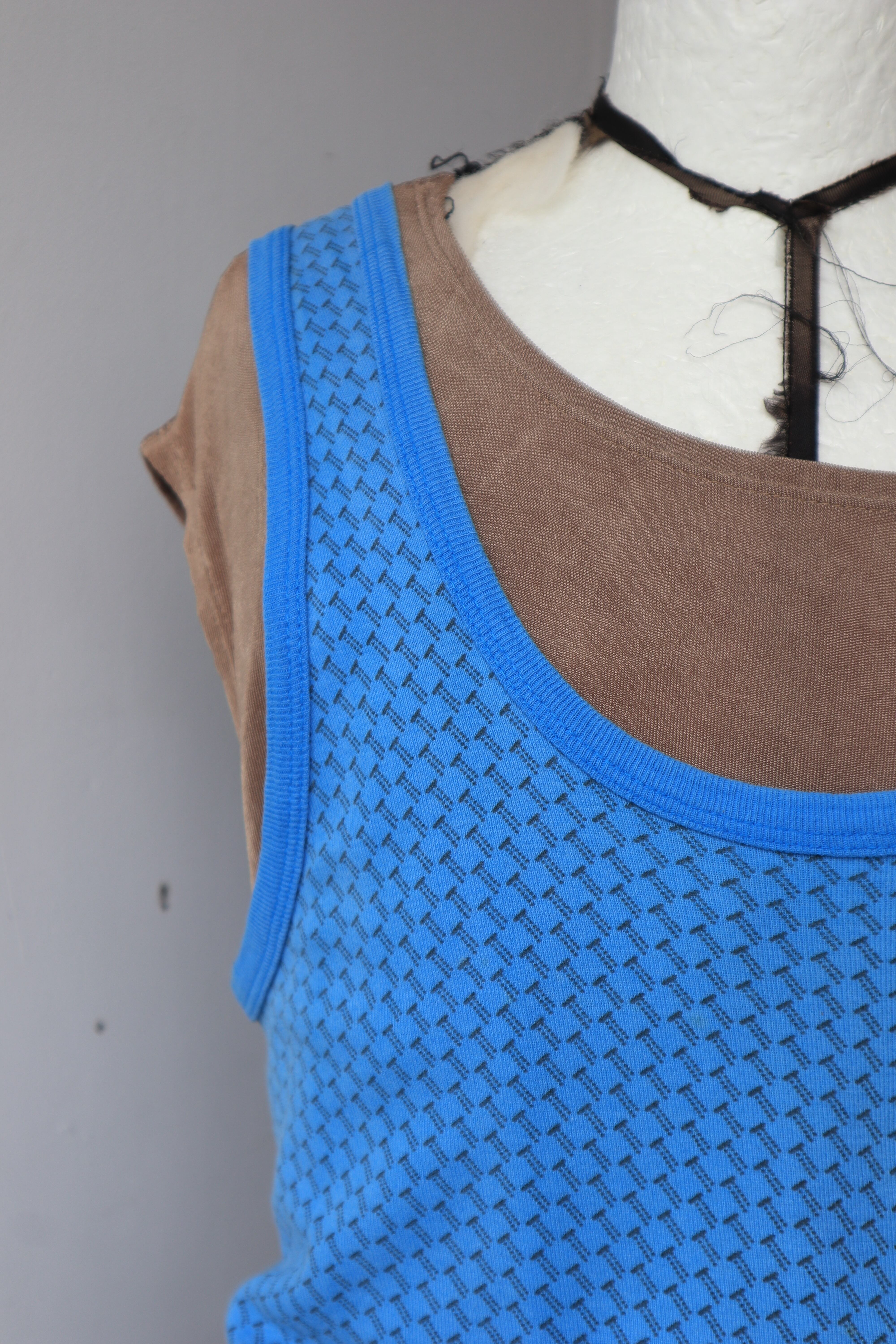 水色に細かな柄がお洒落なタンクトップ