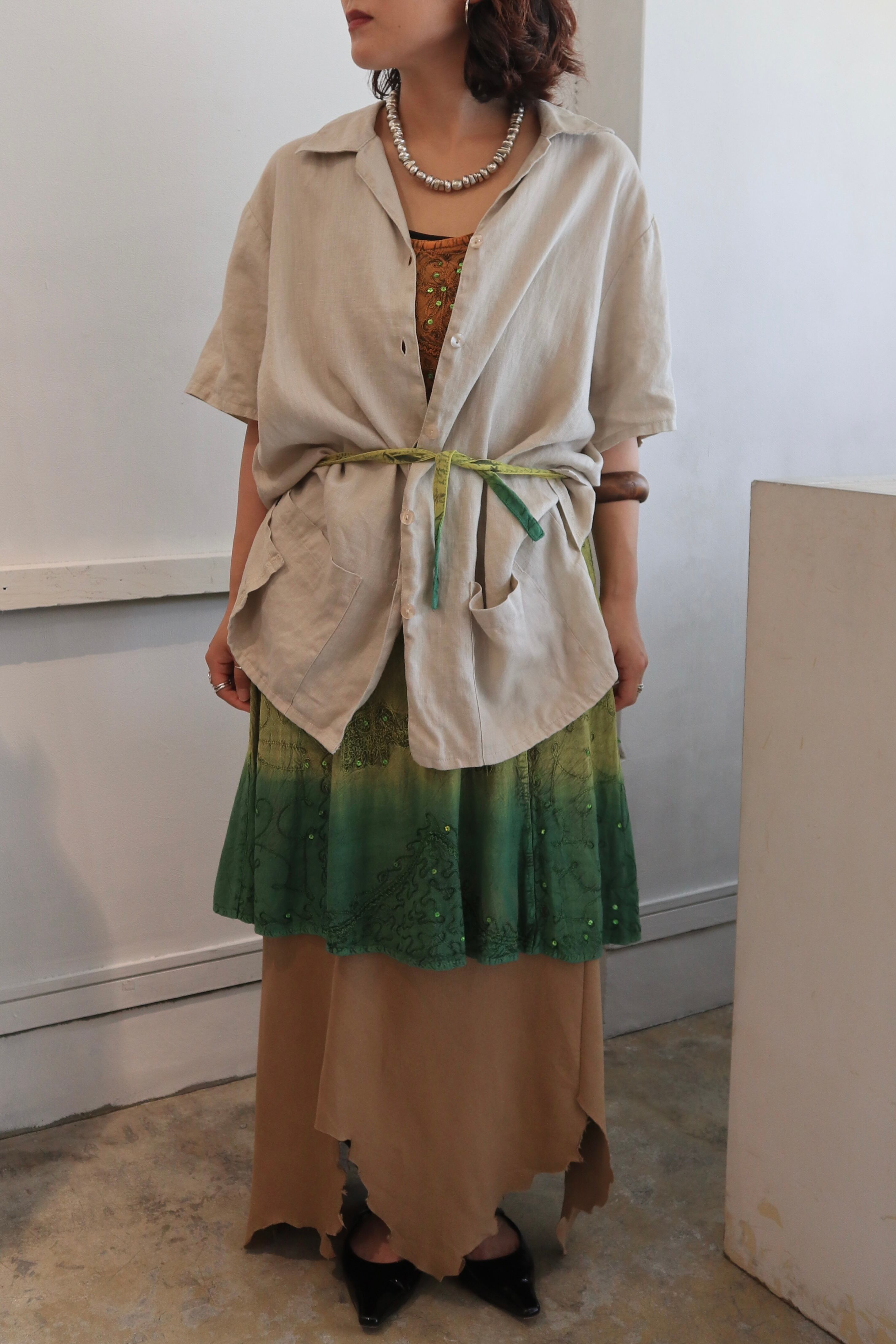 おそらくレーヨンのてろんとした素材に刺繍やスパンコールが散りばめられたキャミソールワンピース