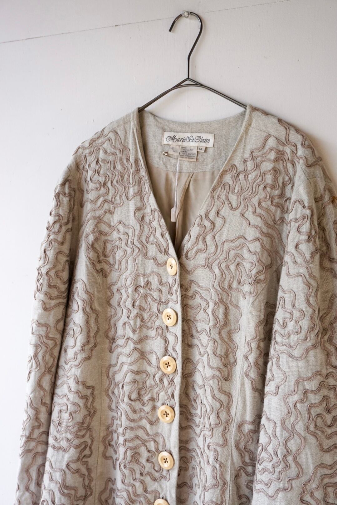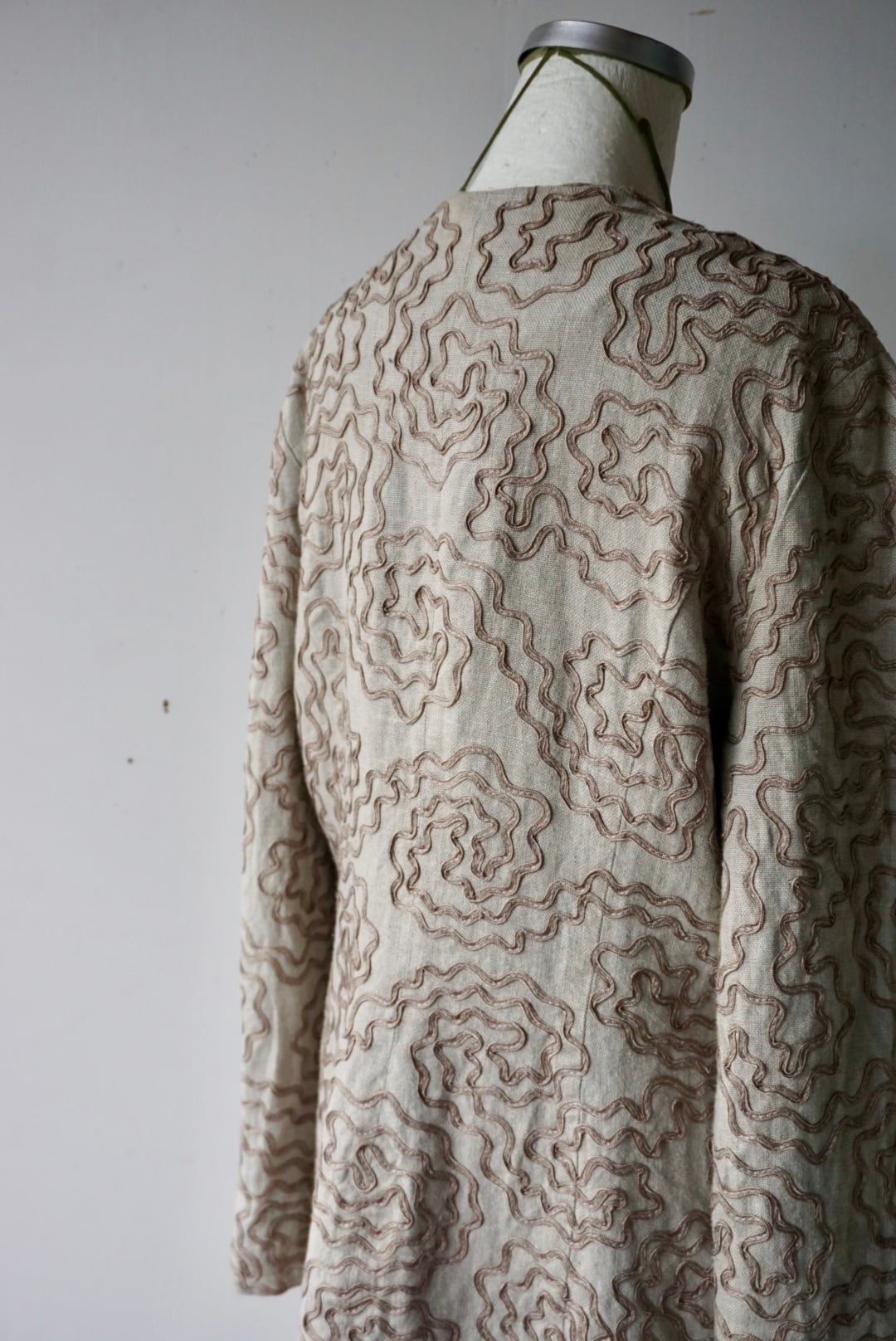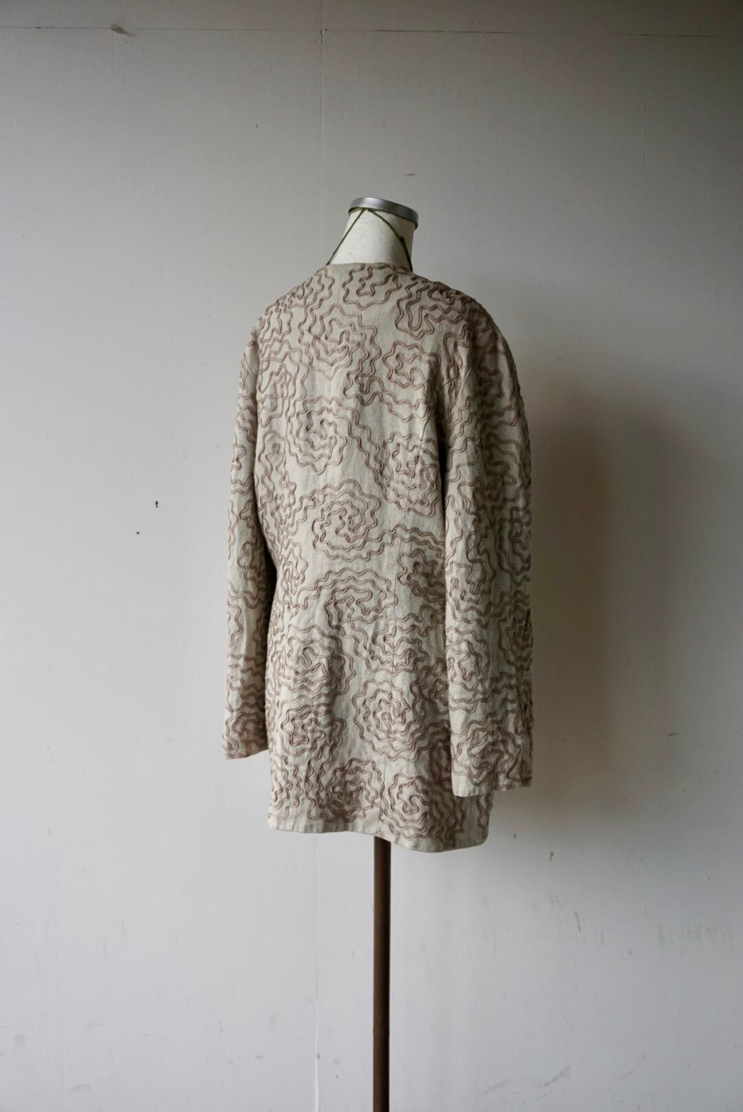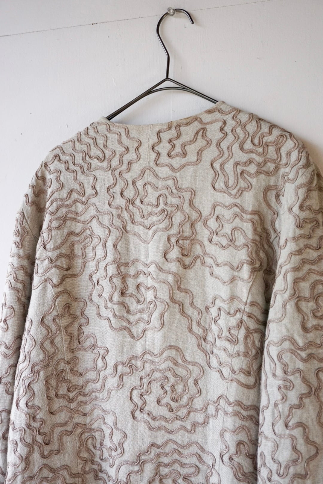 ウネウネしたデザインが特徴的なベージュカラーのリネンジャケット