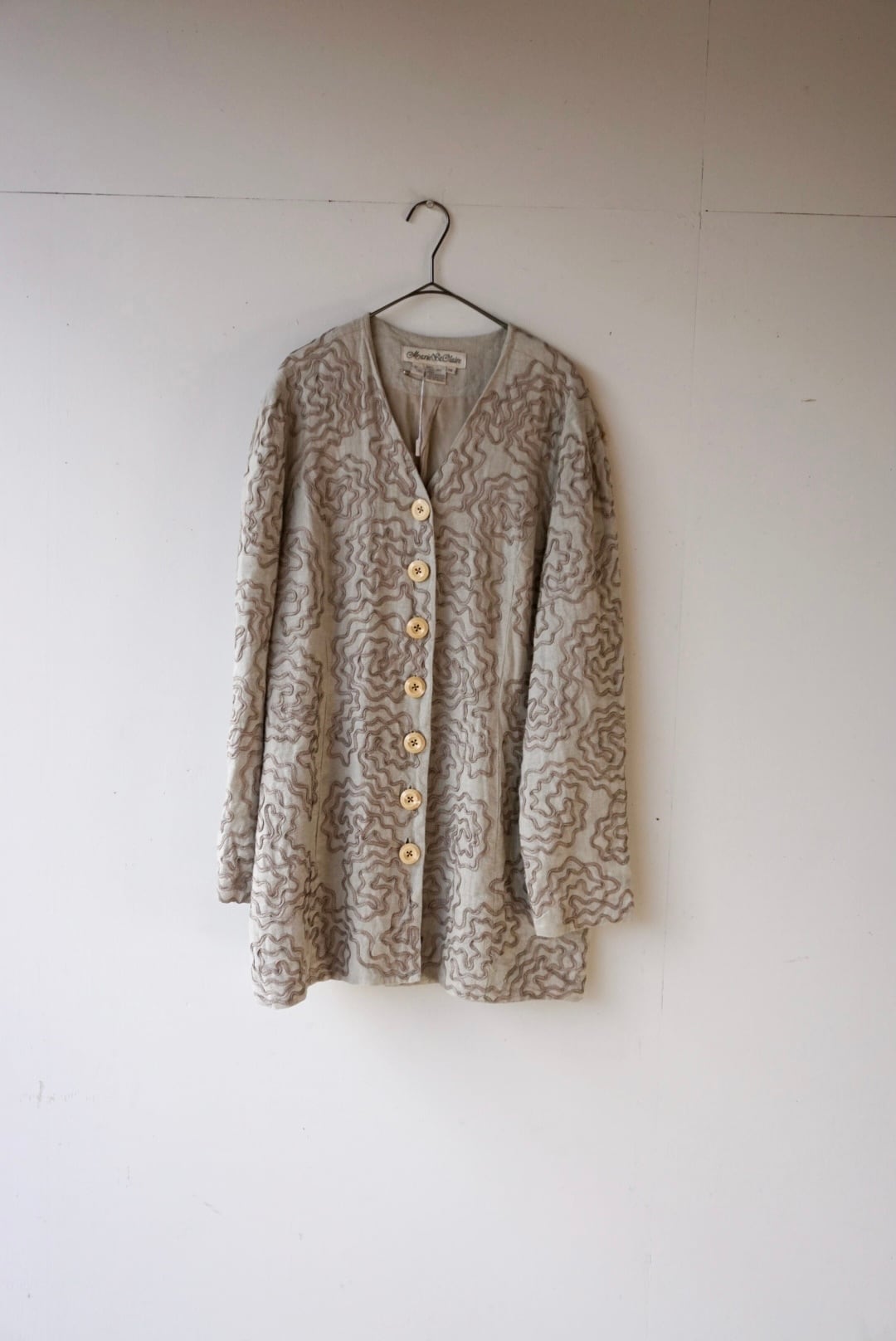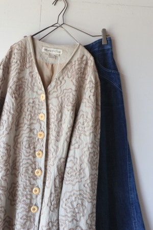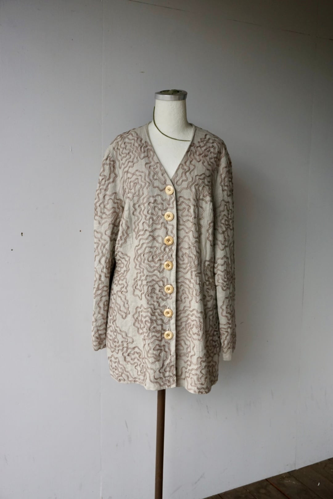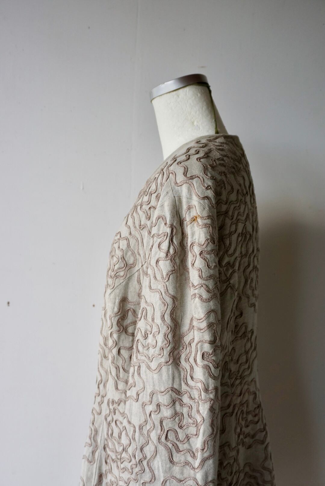 ウネウネしたデザインが特徴的なベージュカラーのリネンジャケット