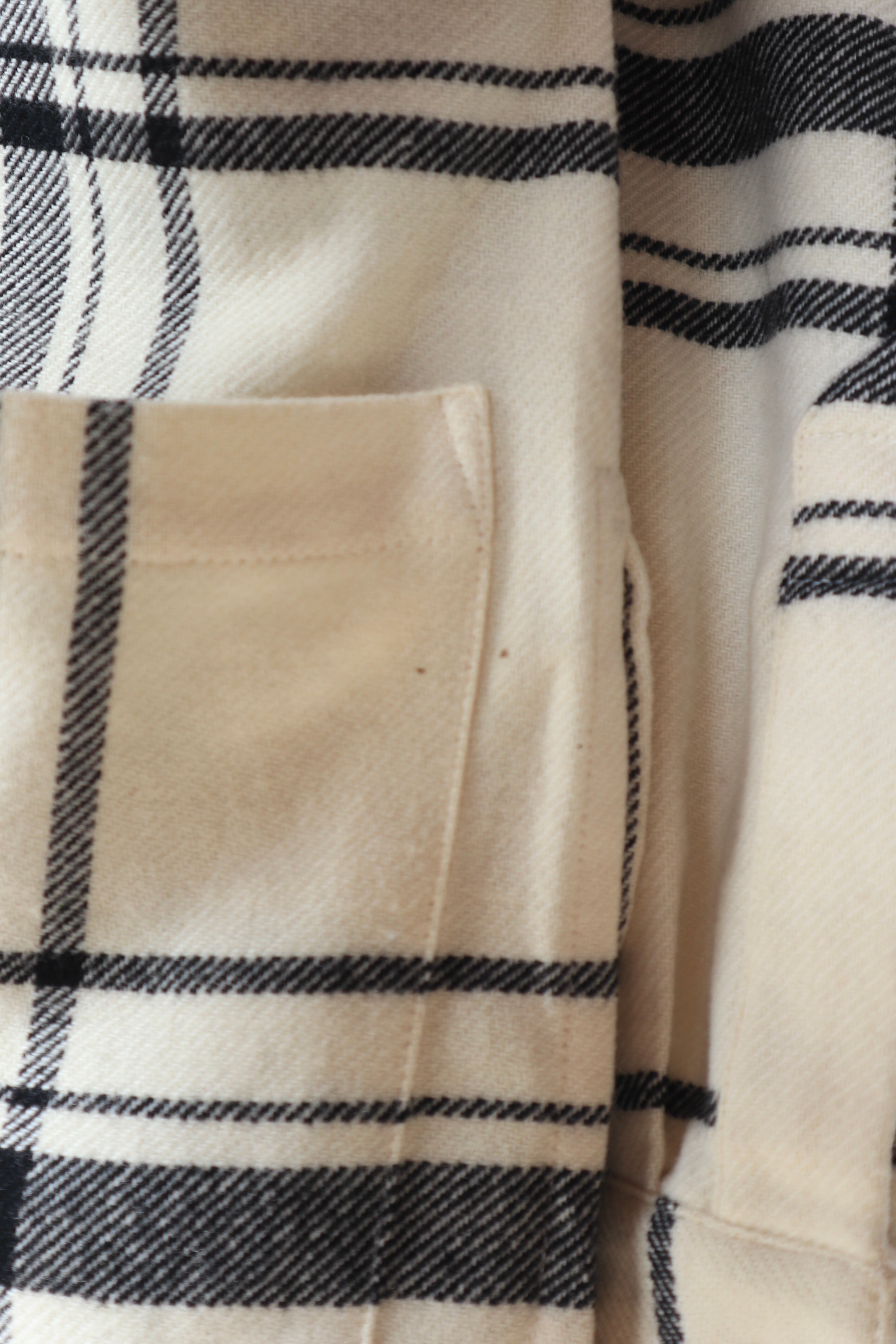 アイボリーのような優しい色味とデザインで幅広いボトムスと合わせやすく、使い勝手の良いアイテム