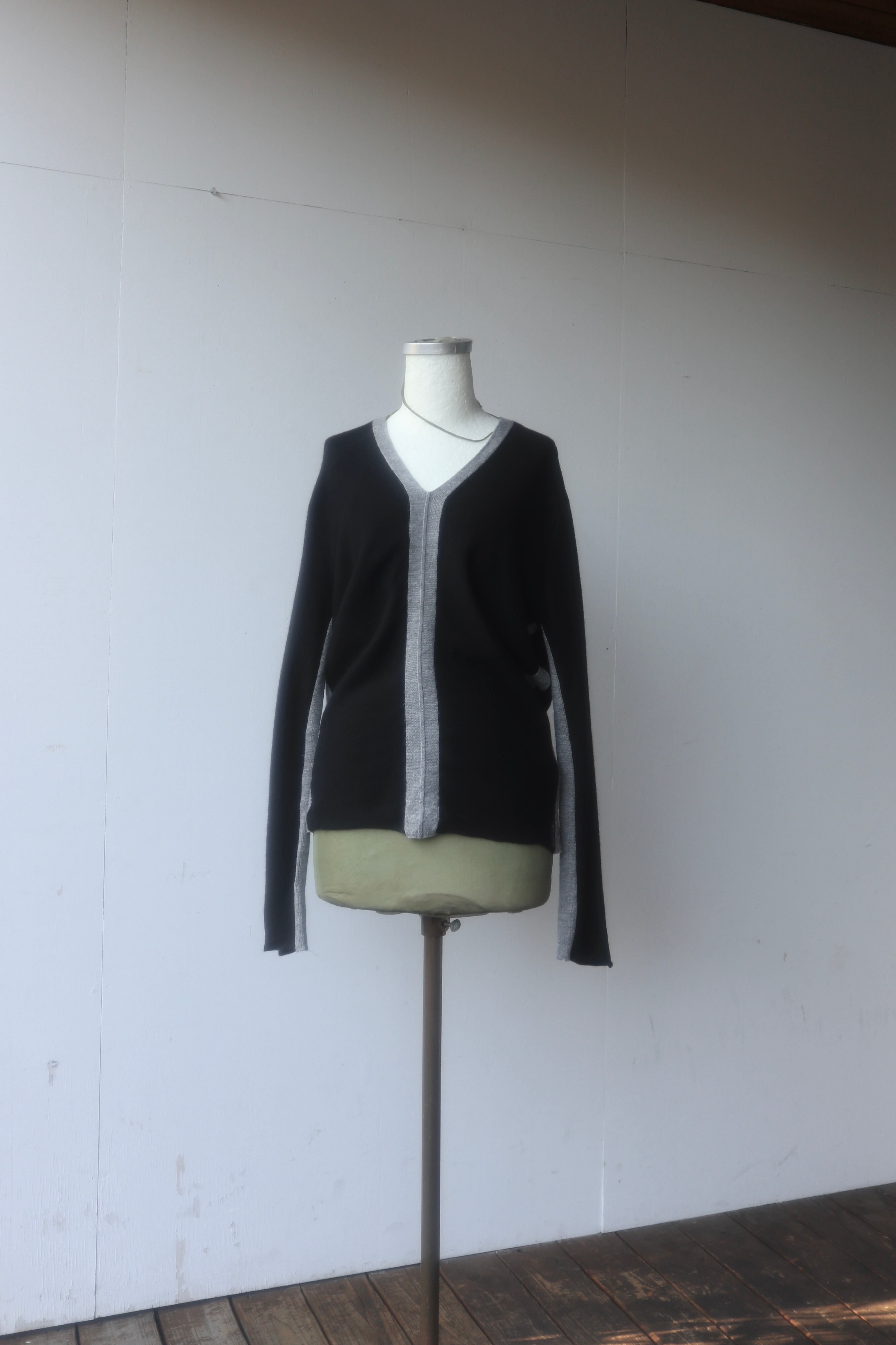 Vネックとグレーのラインがスタイリッシュですっきりとした印象を与えます