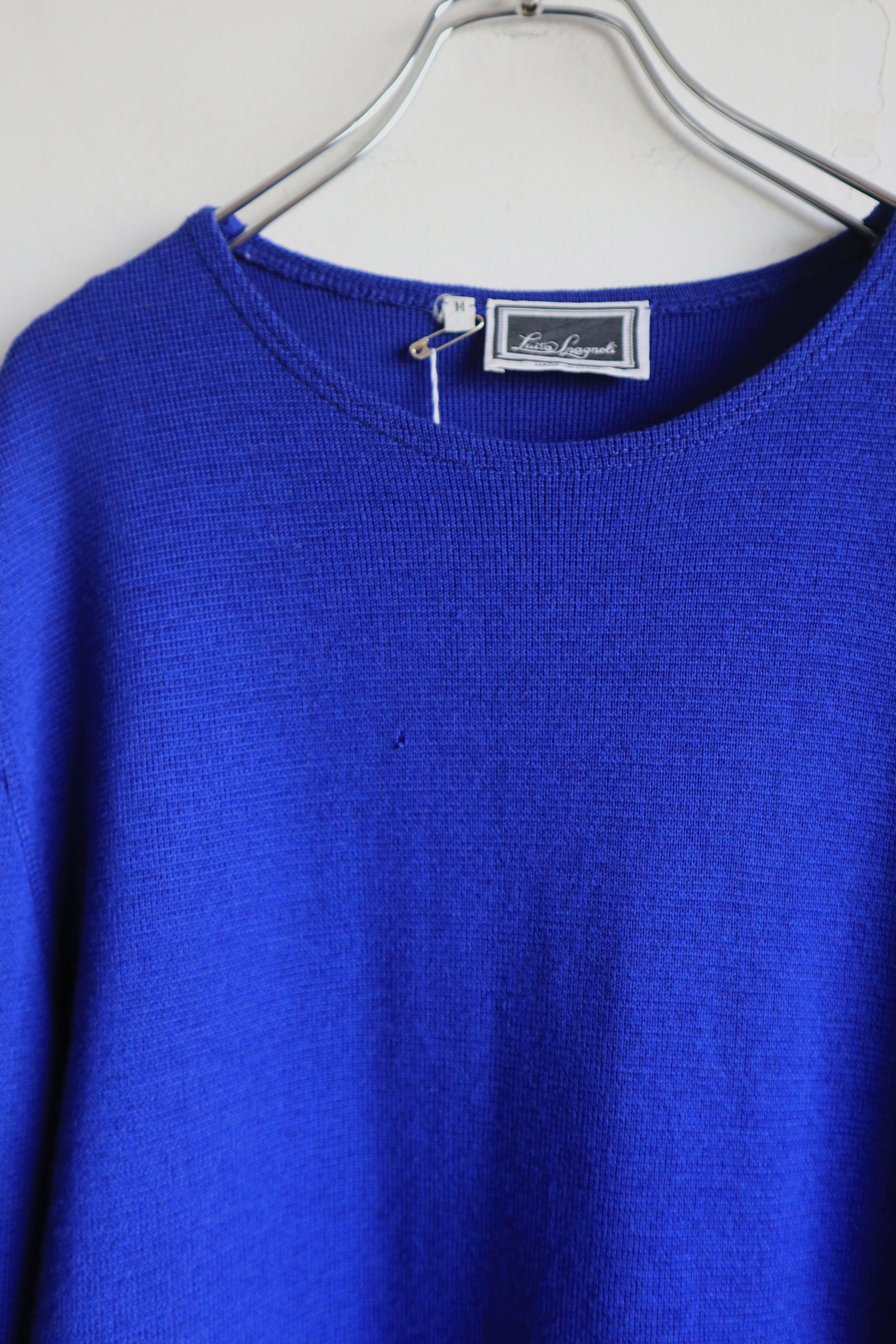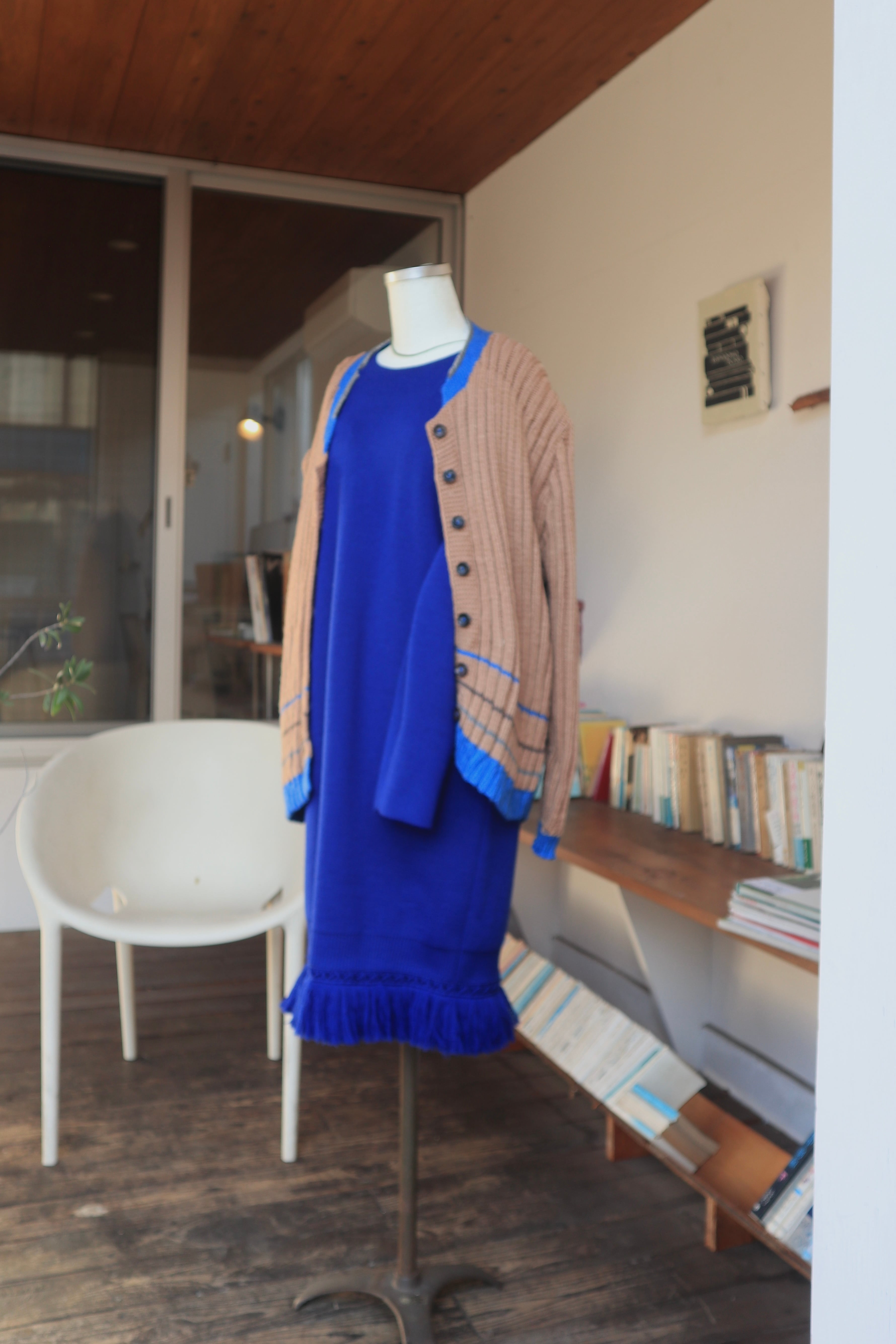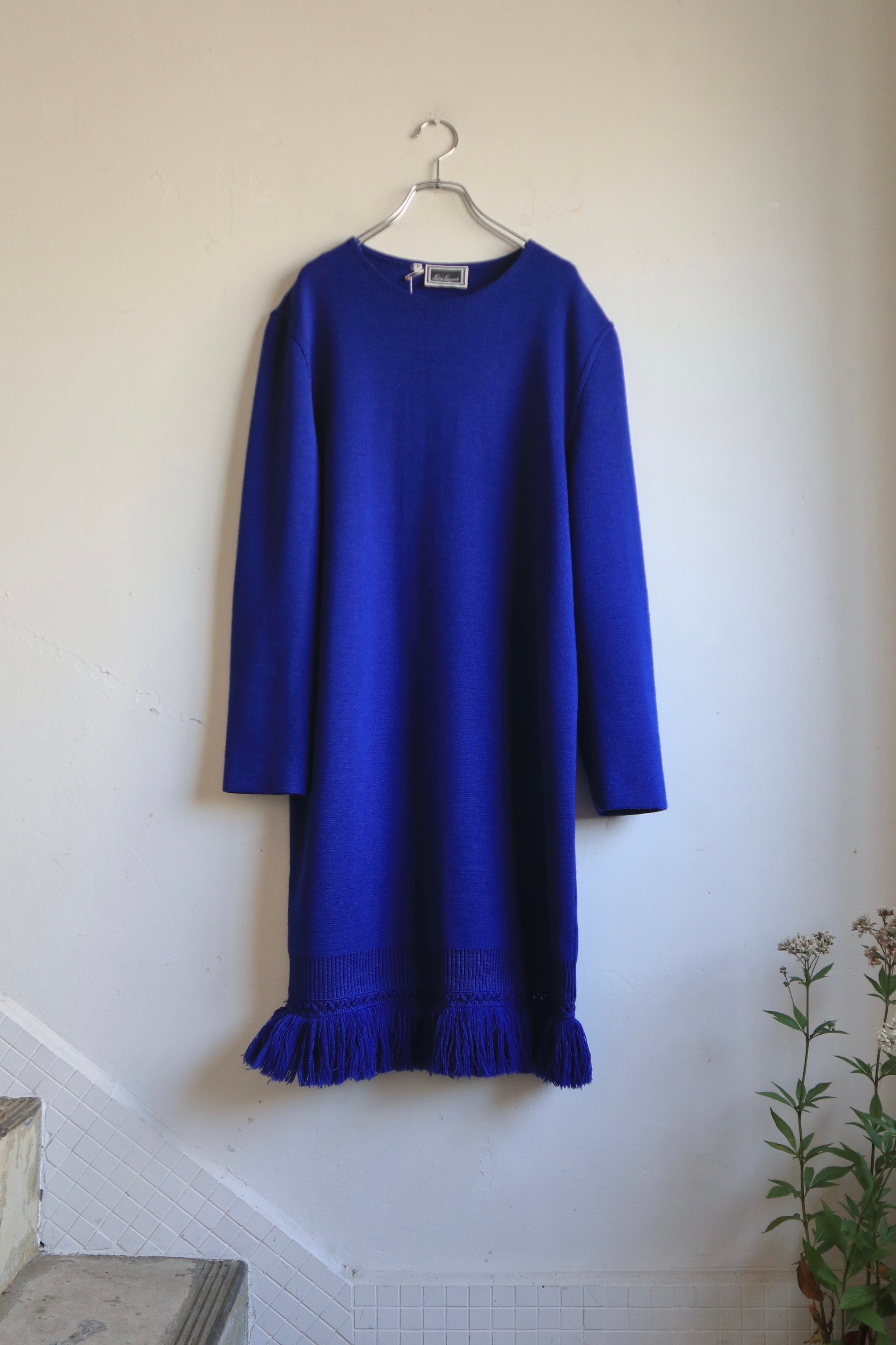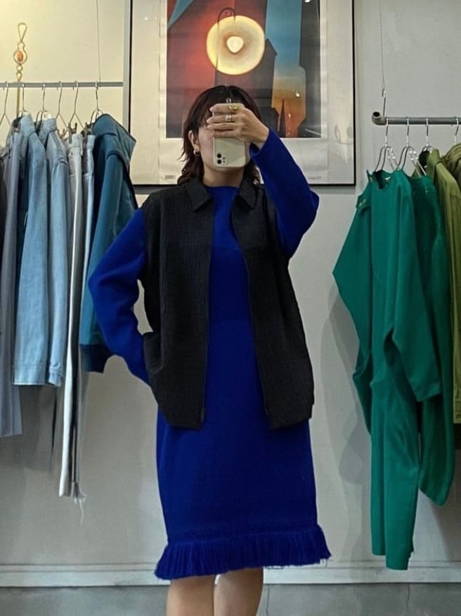鮮やかなブルーのニットワンピース