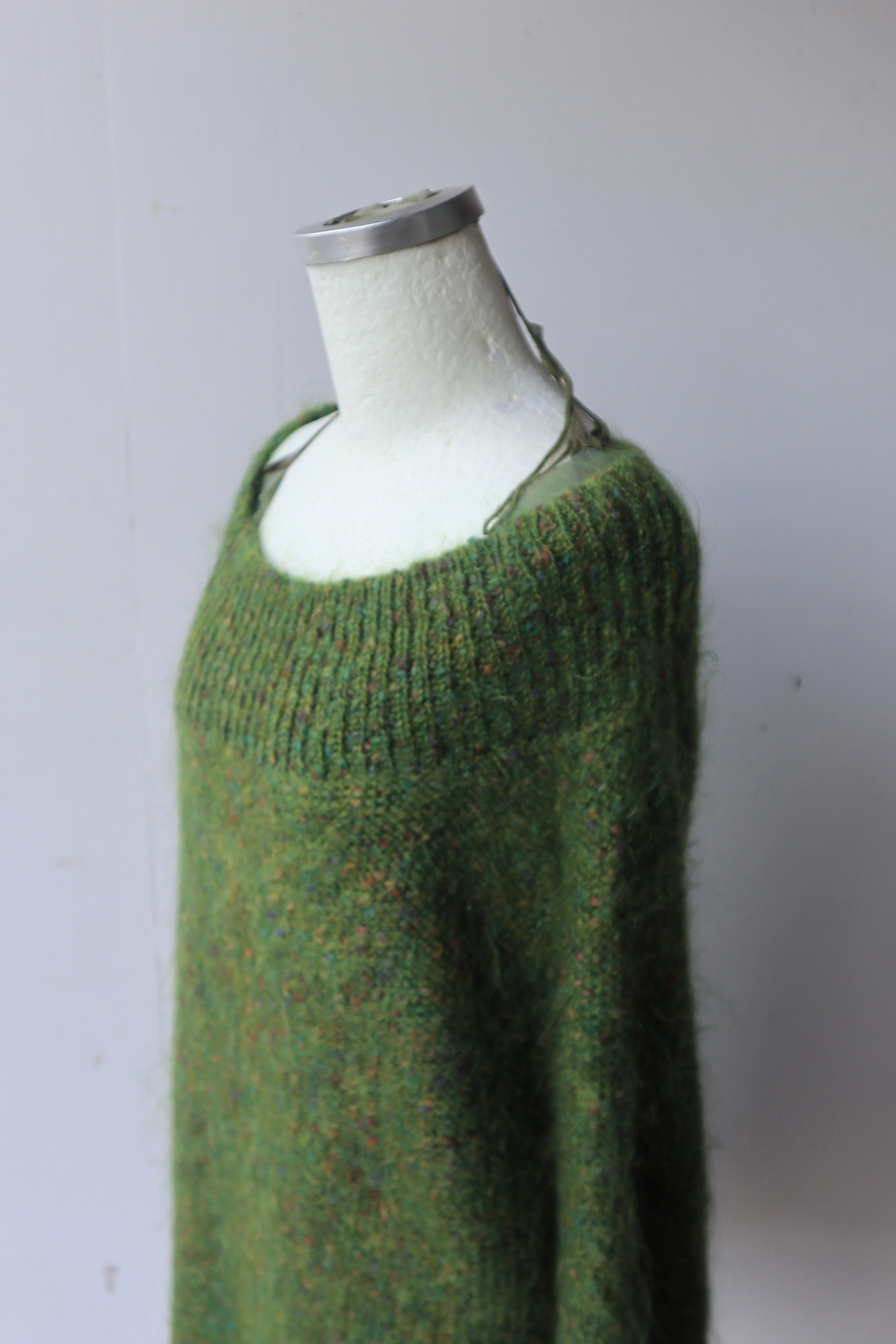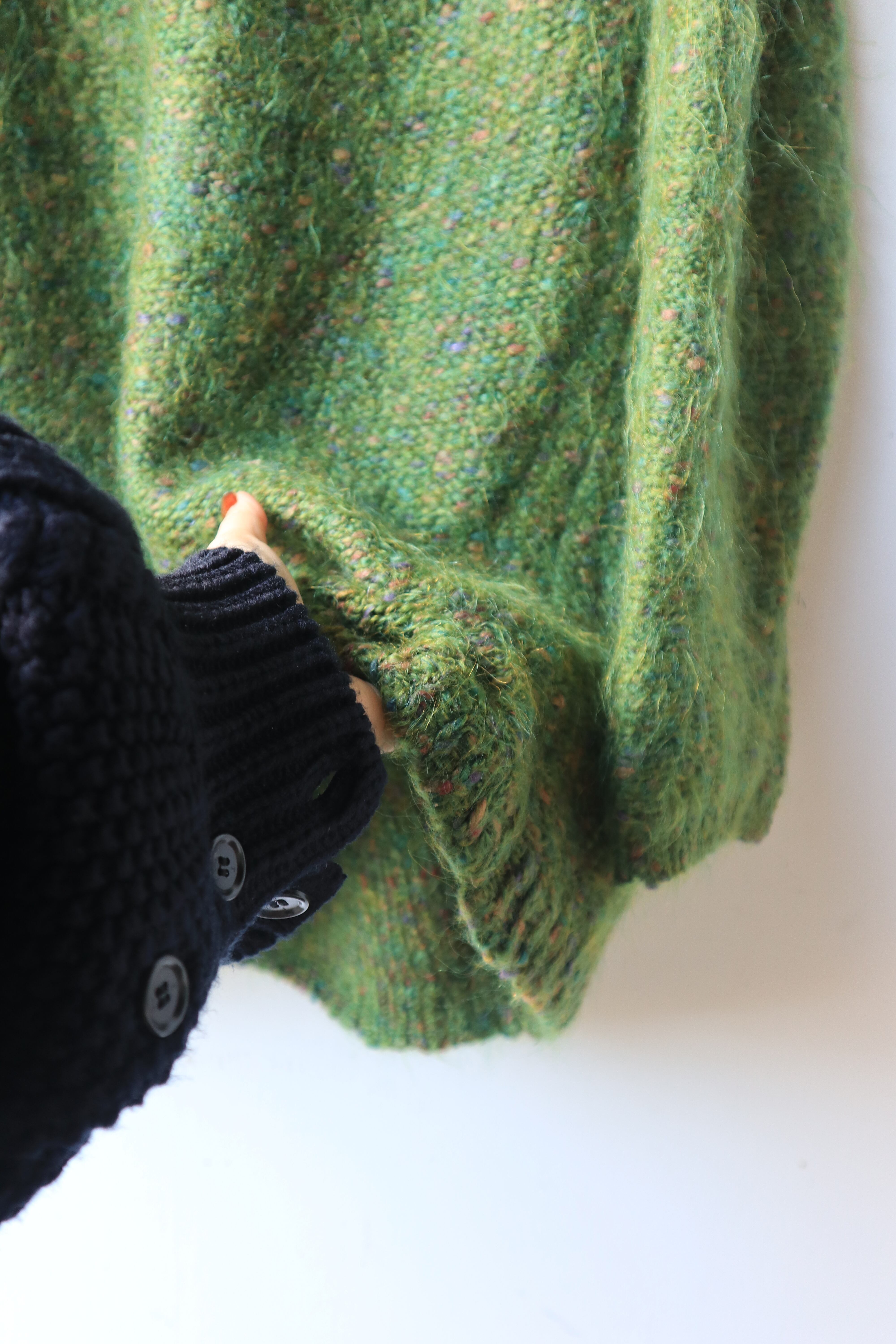 グリーンとイエローの糸をメインに、ところどころカラフルな糸が編み込まれている可愛らしいアイテム