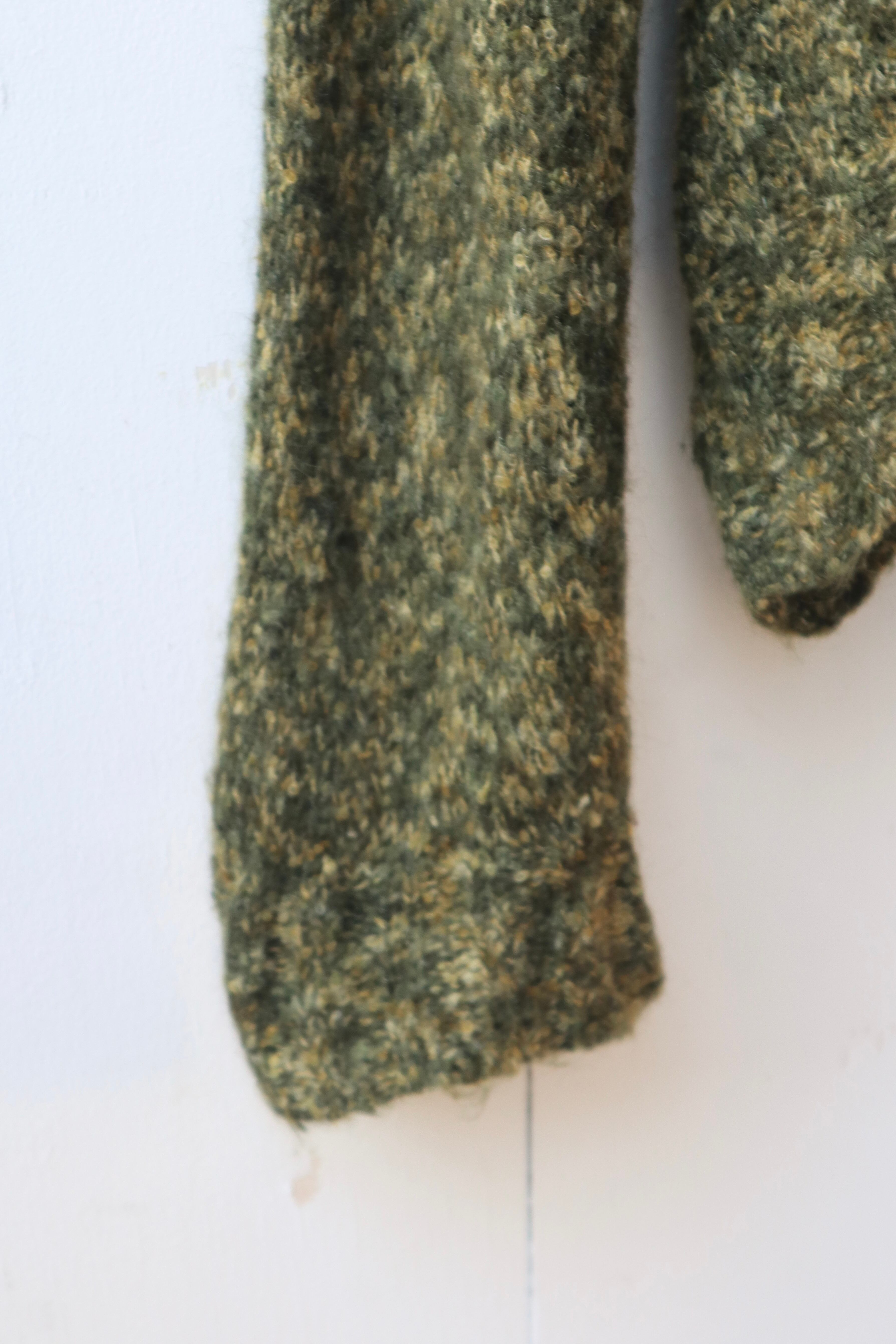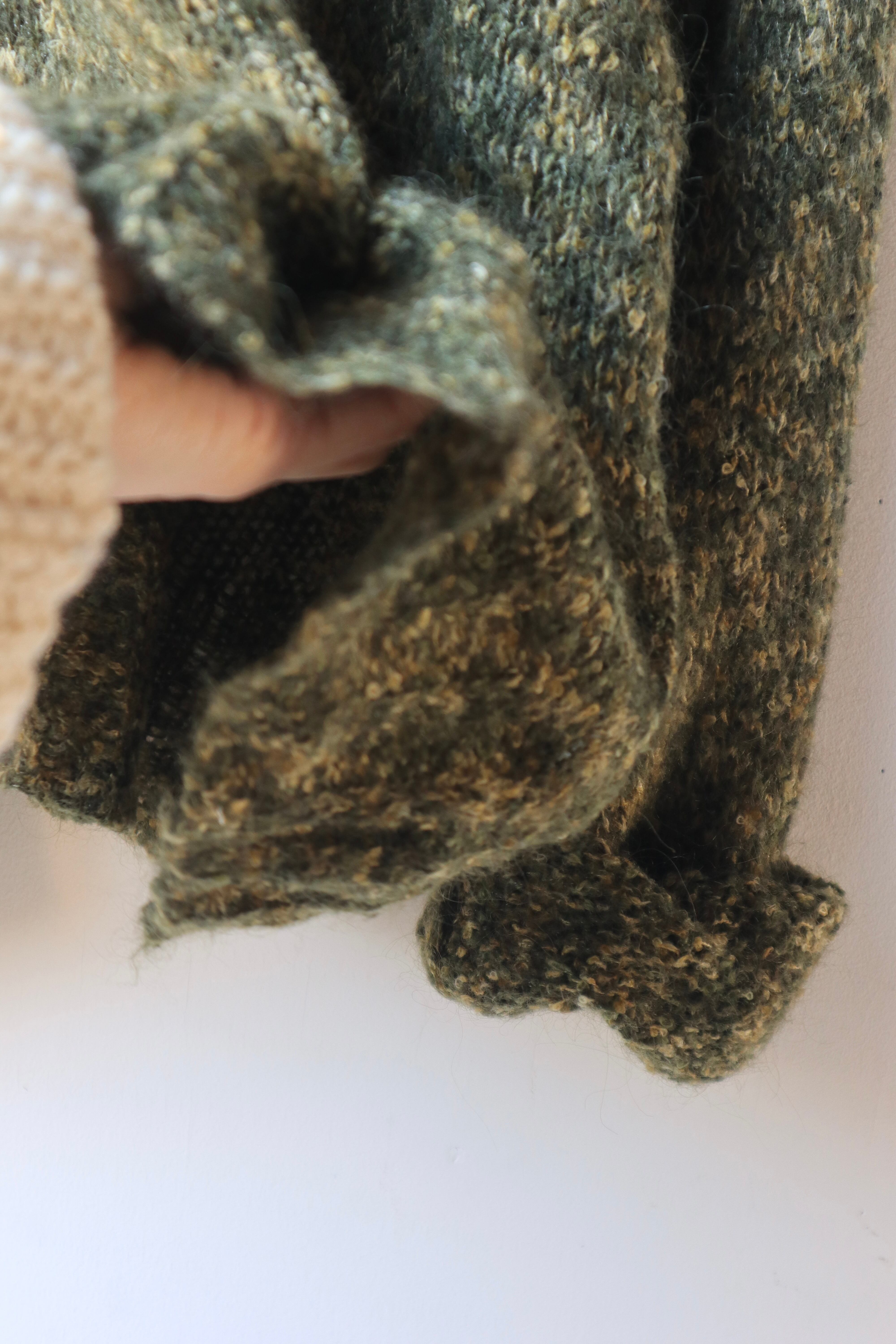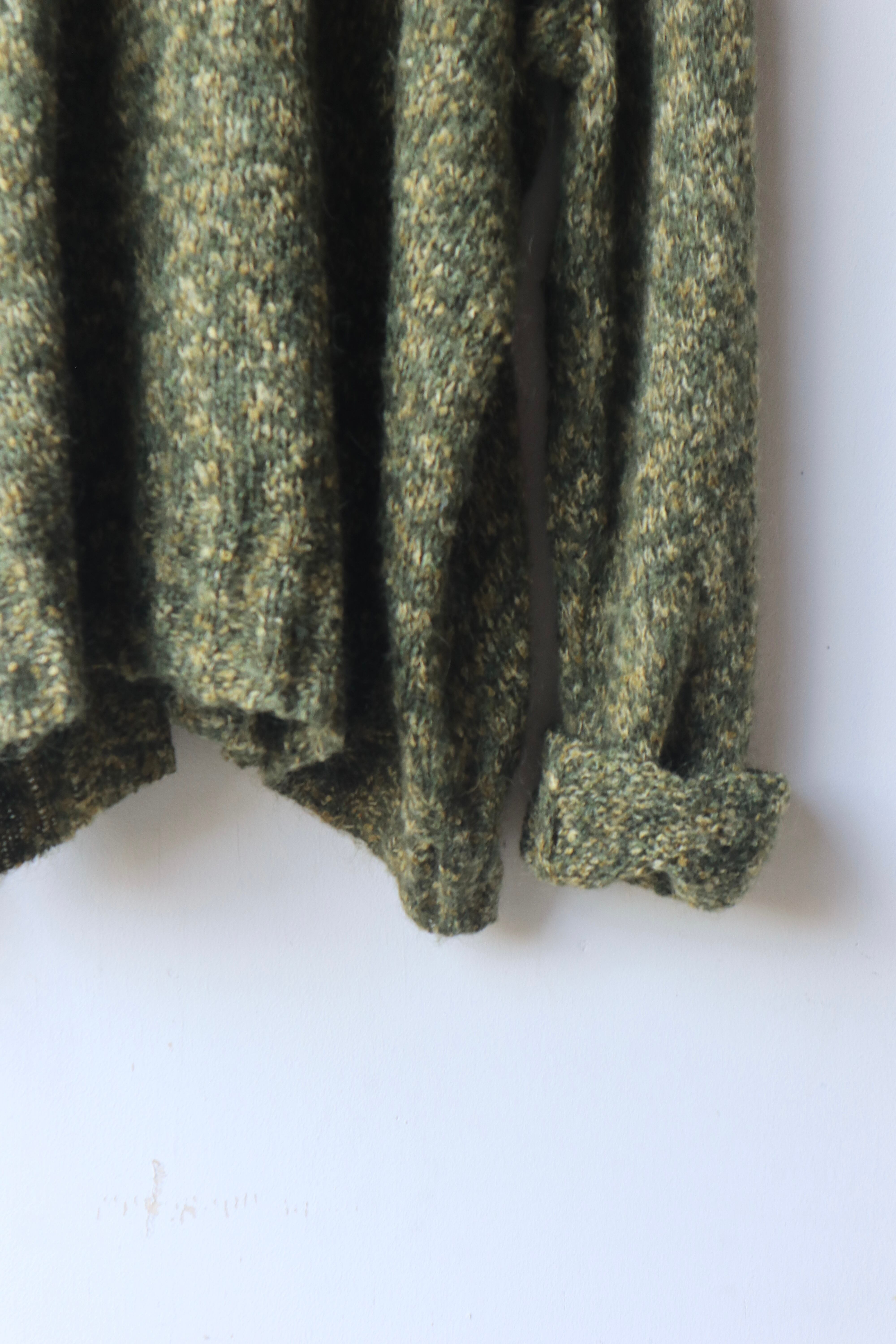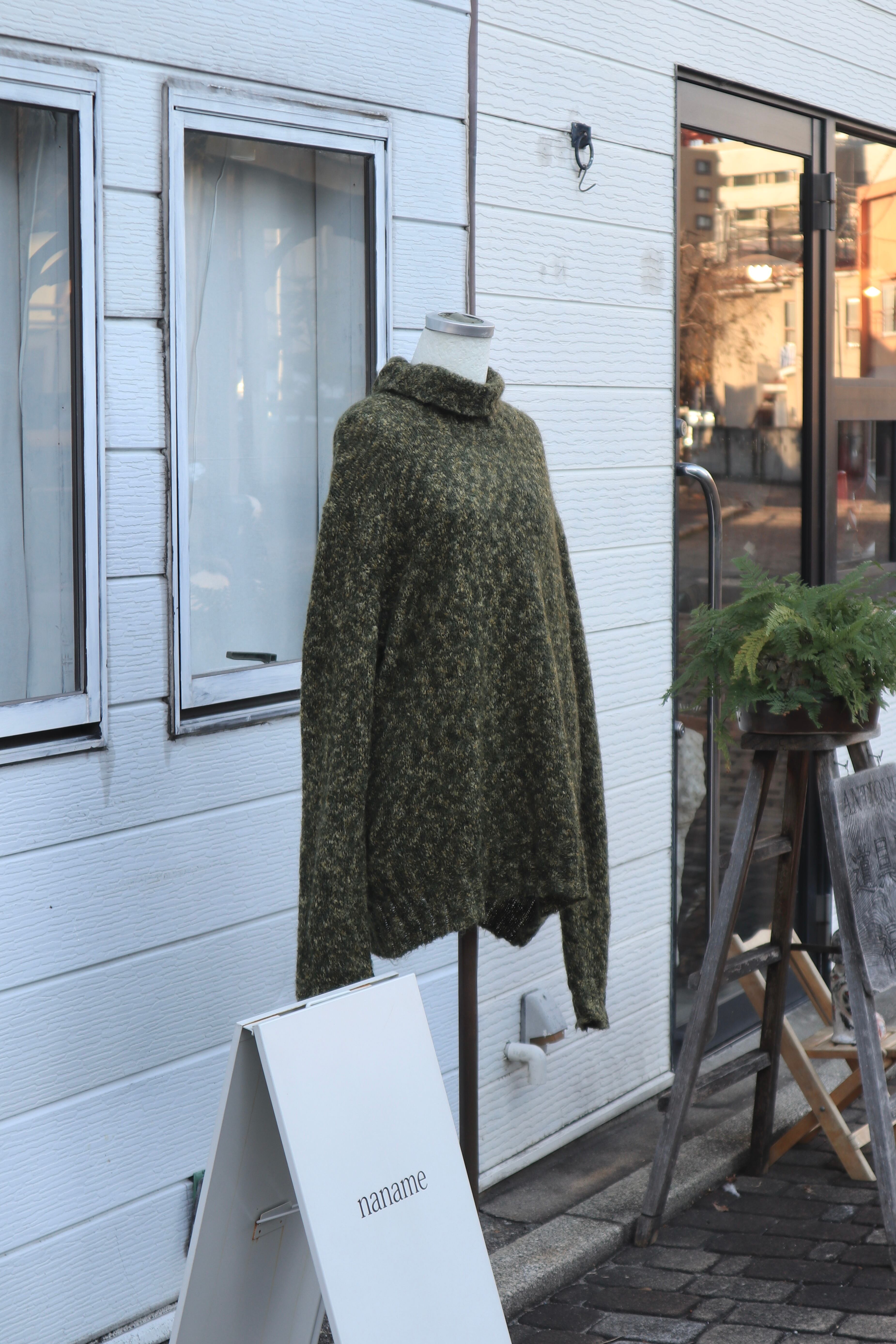 ゆったりとした編み地で伸縮性があり、リラックスした雰囲気のシルエット