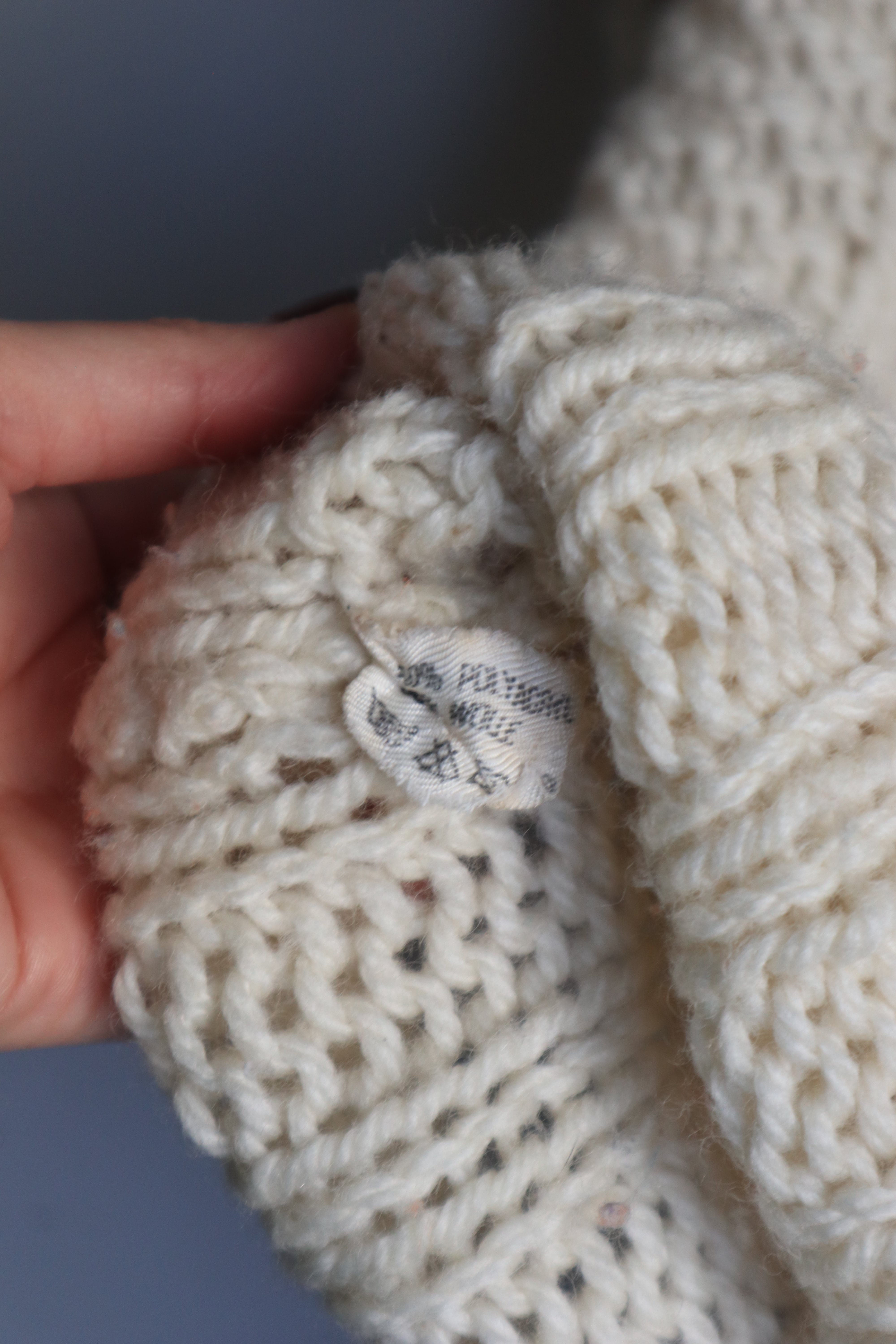 ポリエステルとウールを半々に使用した糸は、ふっくらとした質感と軽やかさを併せ持ち、見た目以上に着心地も柔らか