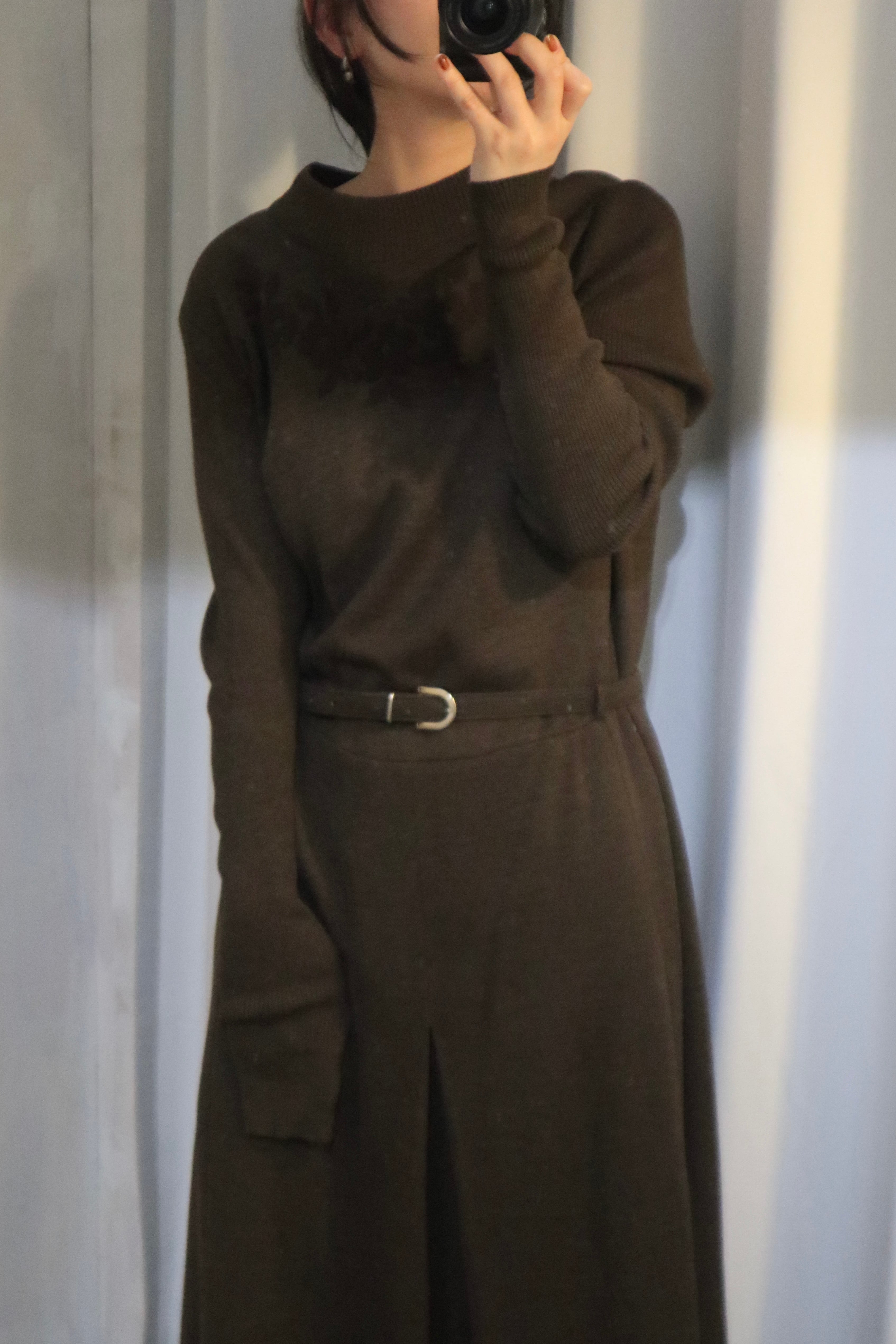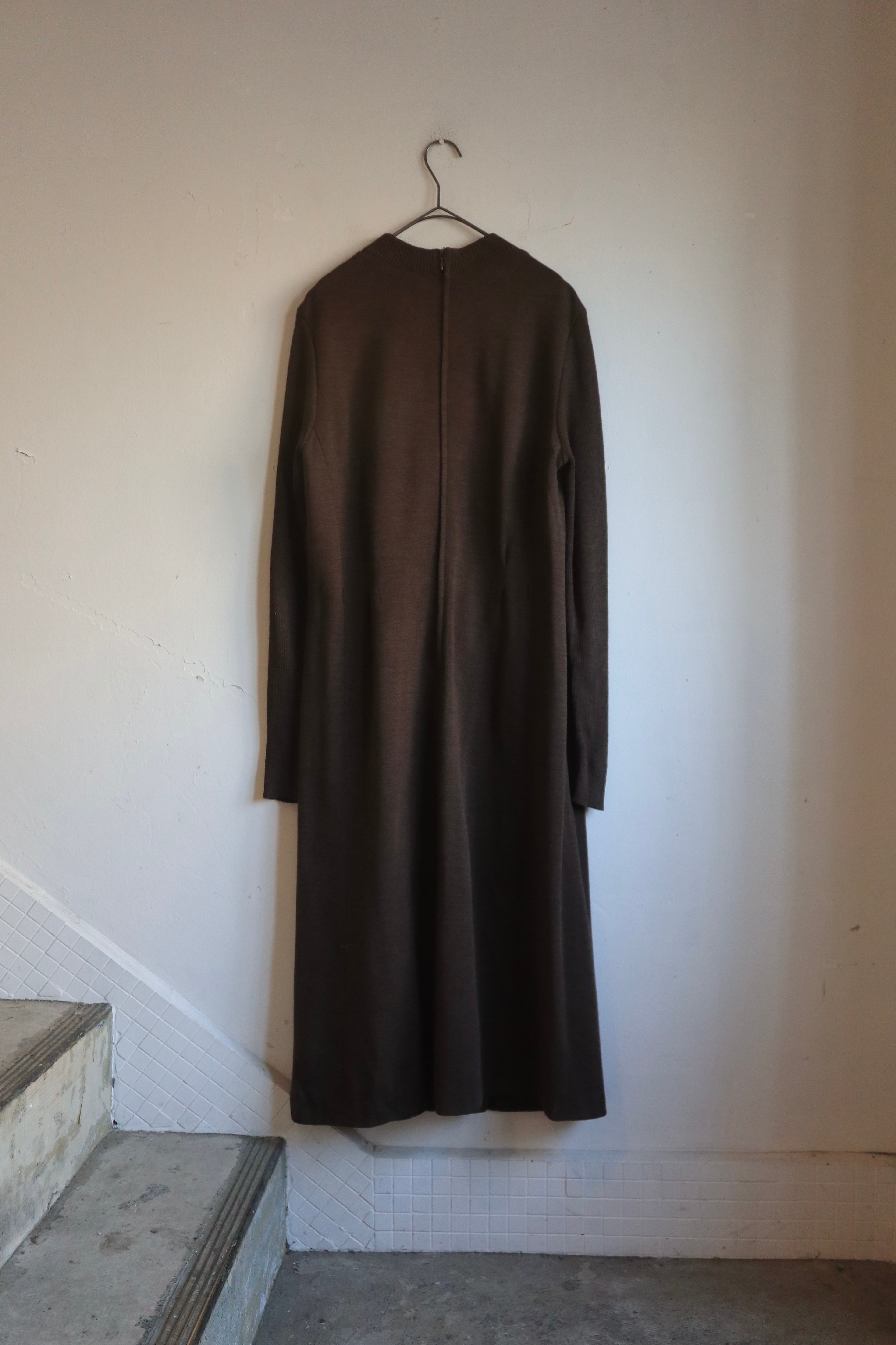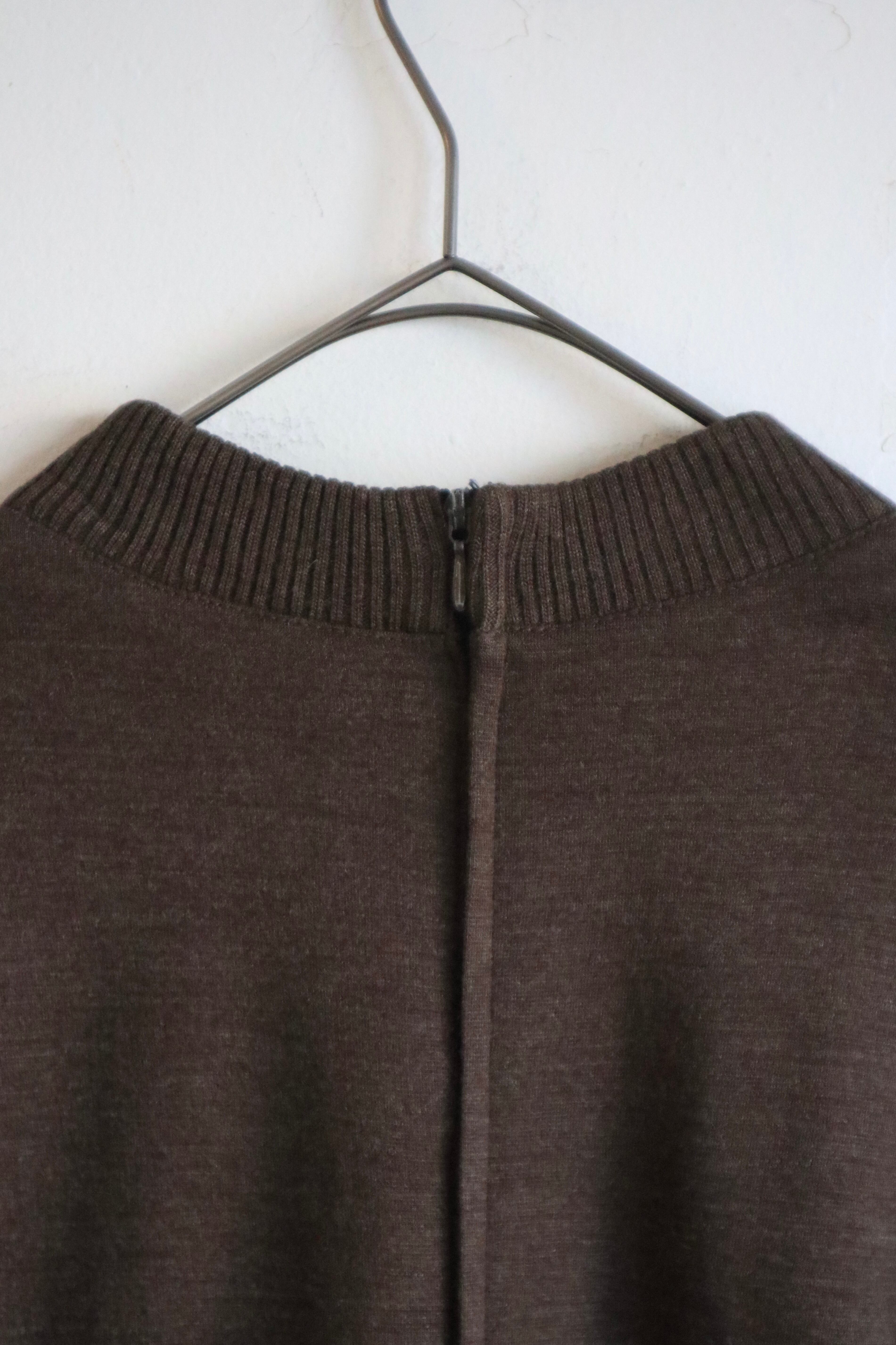 袖部分と襟元がリブ編みに切り替わったニット素材のワンピース