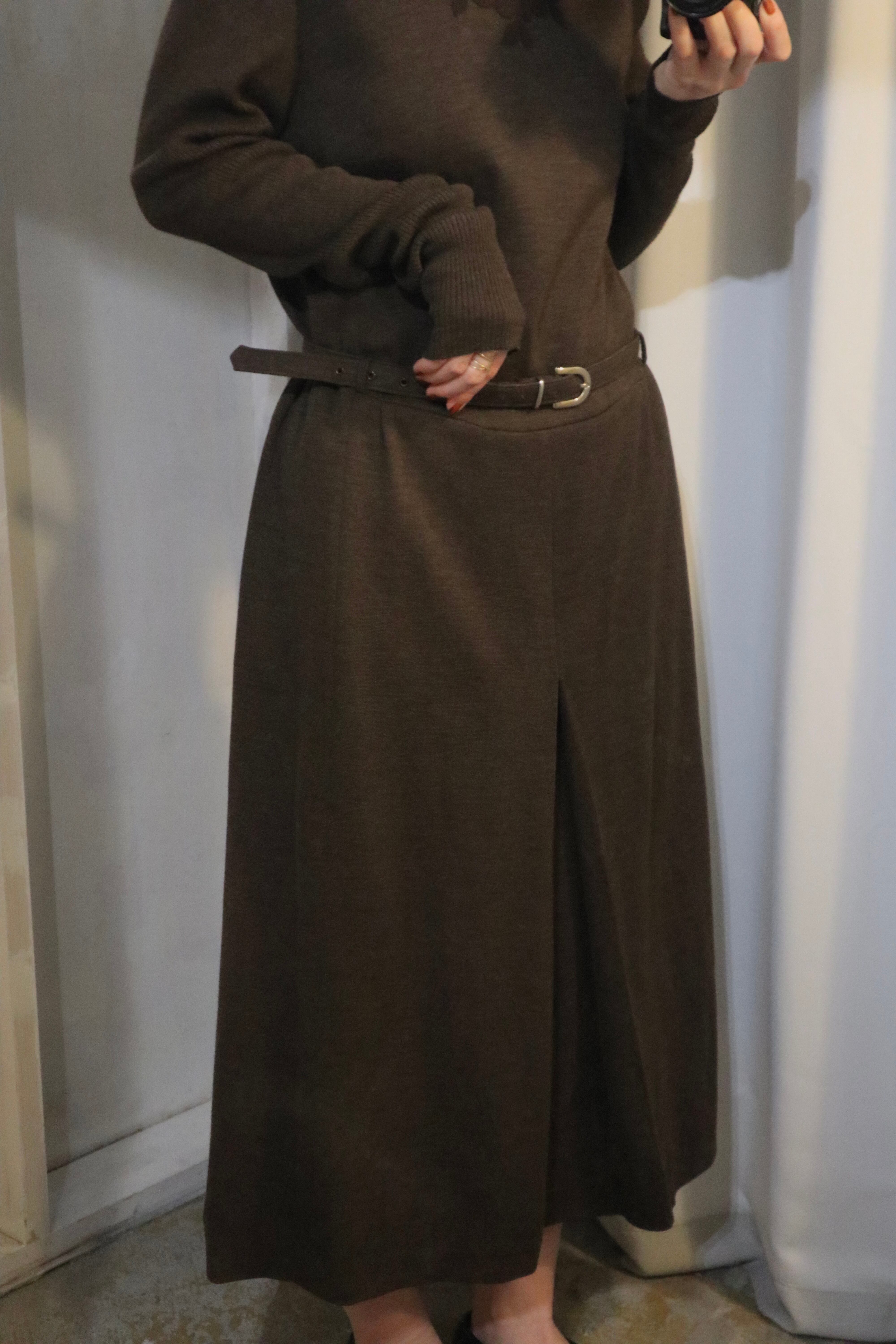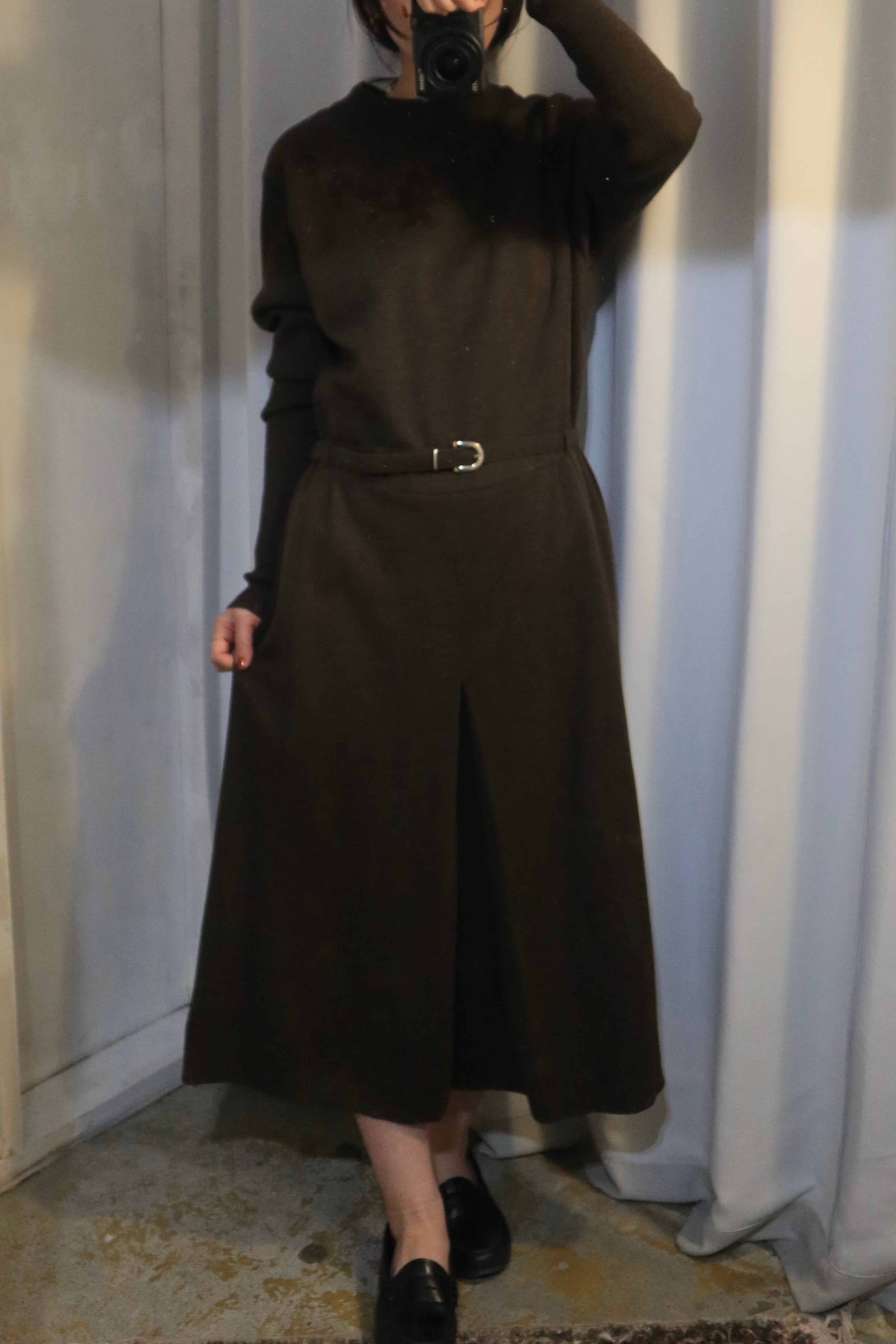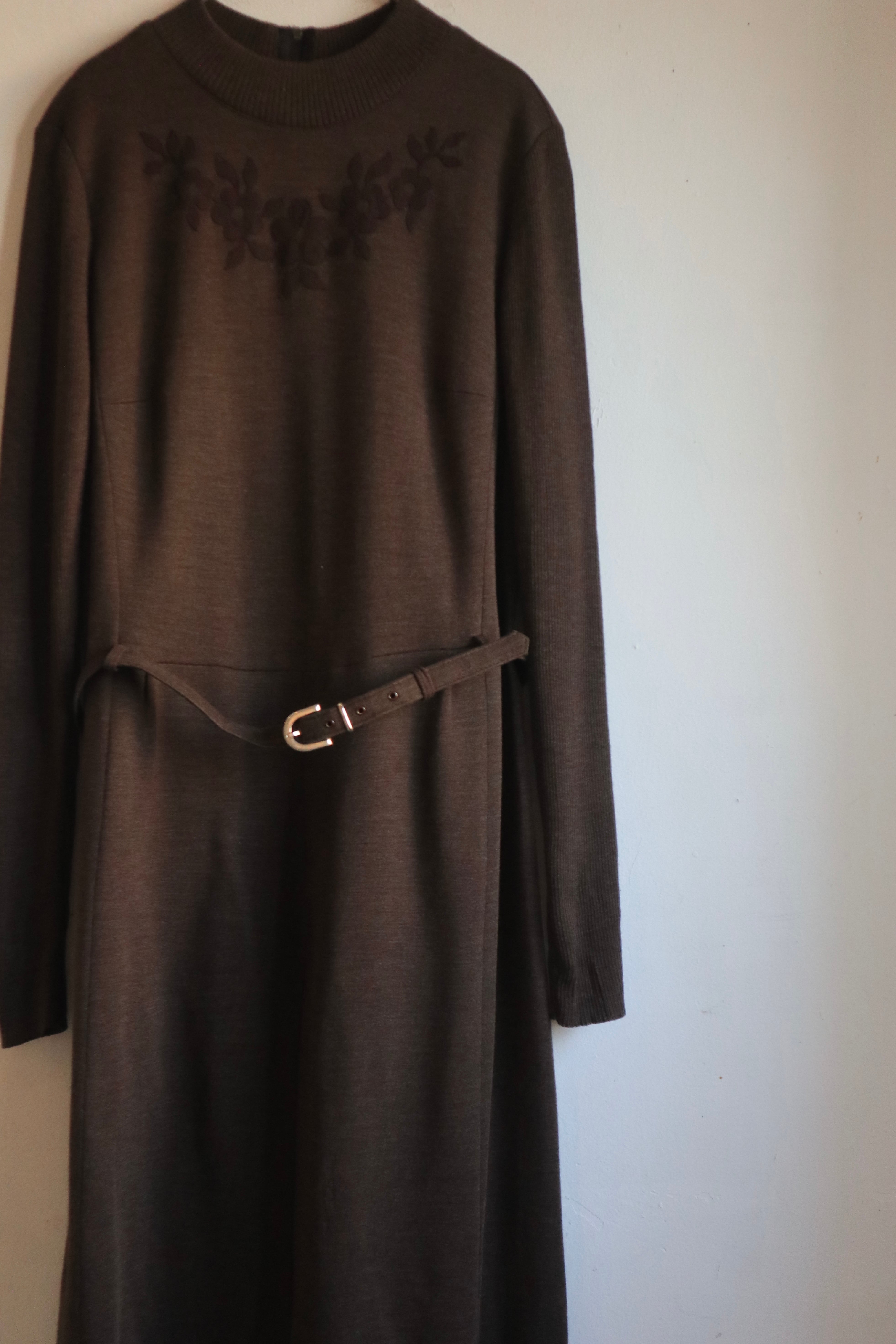 袖部分と襟元がリブ編みに切り替わったニット素材のワンピース