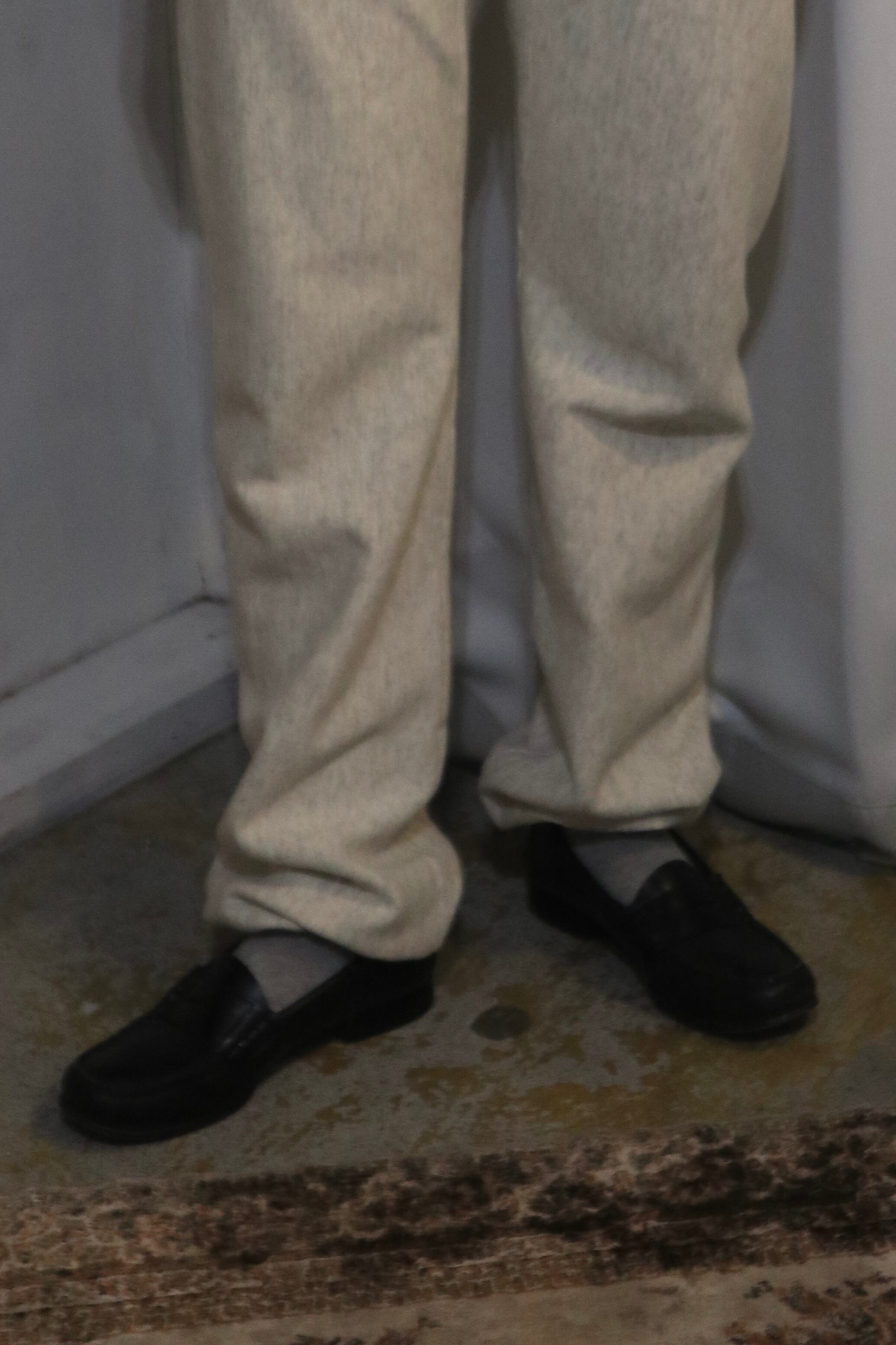 柔らかな杢グレーの色合いはどんなトップスにも馴染みやすく、カジュアルスタイルはもちろん、きれいめコーデの“抜け感”としてもおすすめ